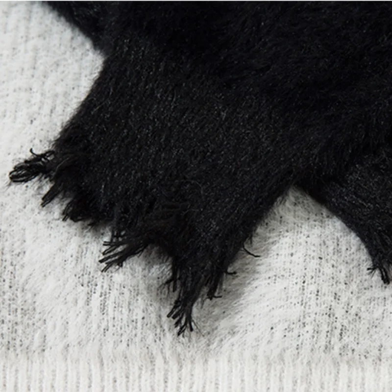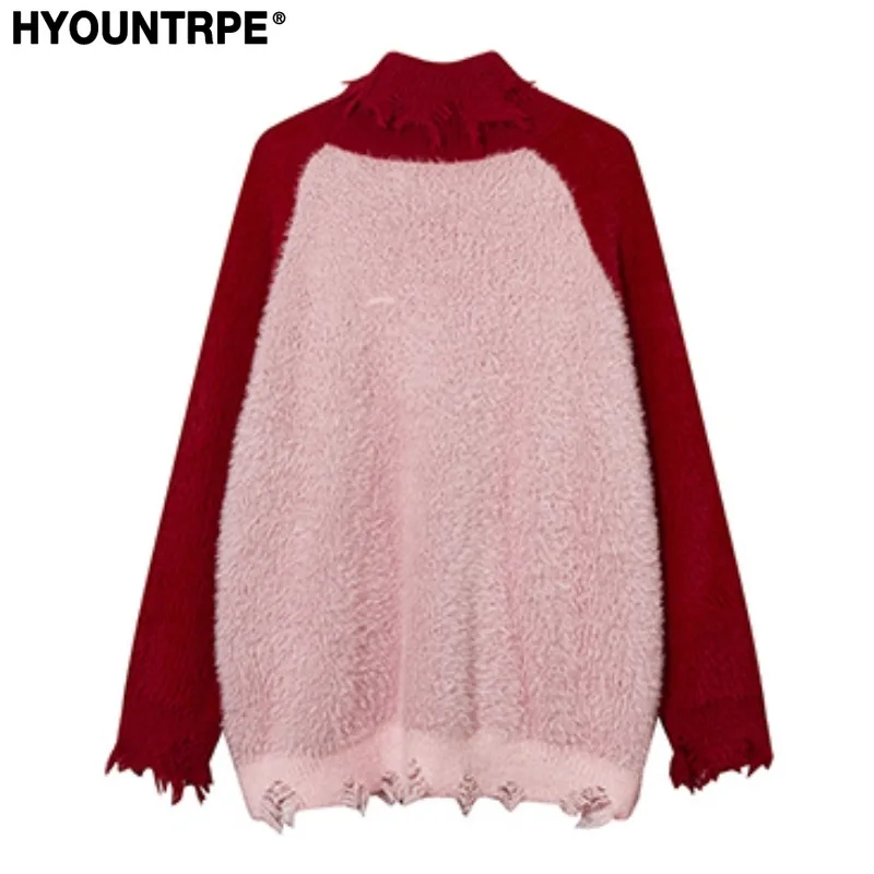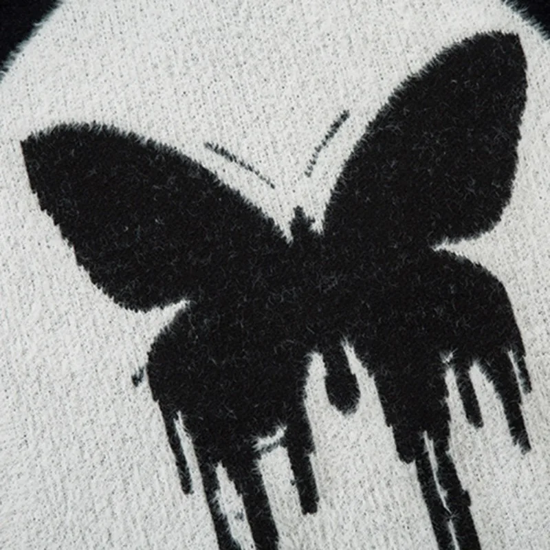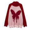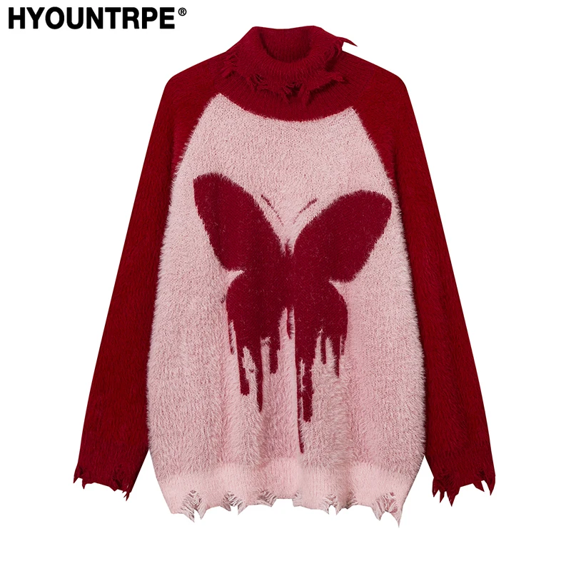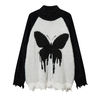 Destroy Ripped Neck Knitted Sweater Unisex Butterfly Pattern Pullover Long Sleeve Autumn Winter Warm Sweaters Streetwear Jumpers