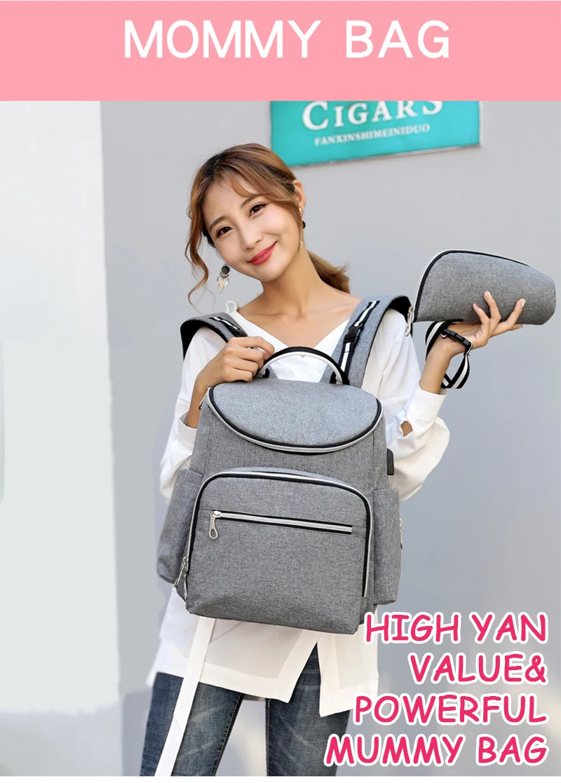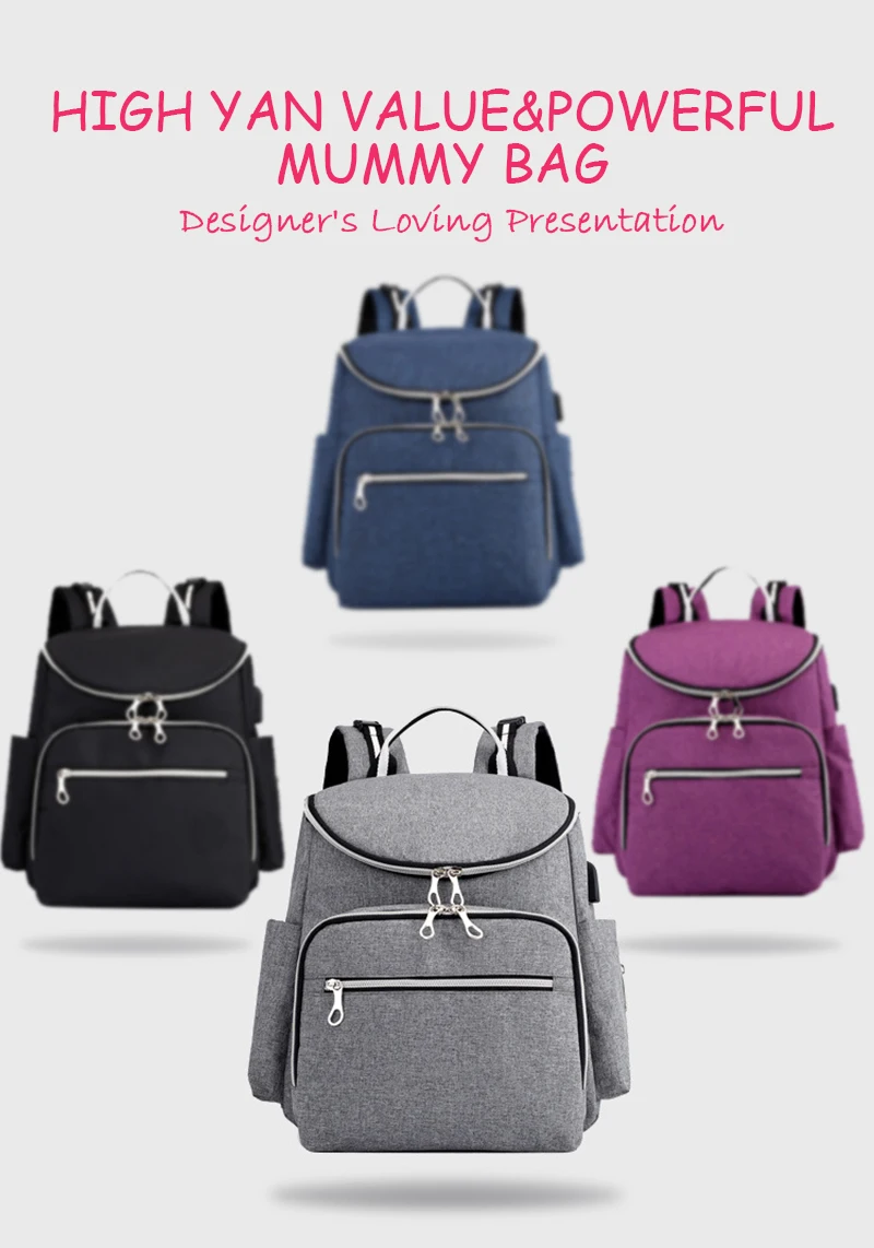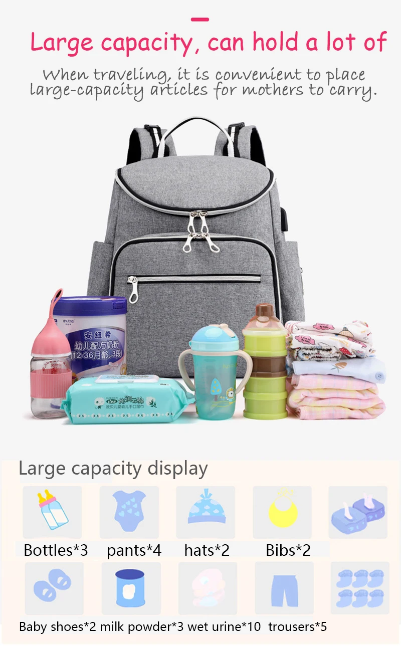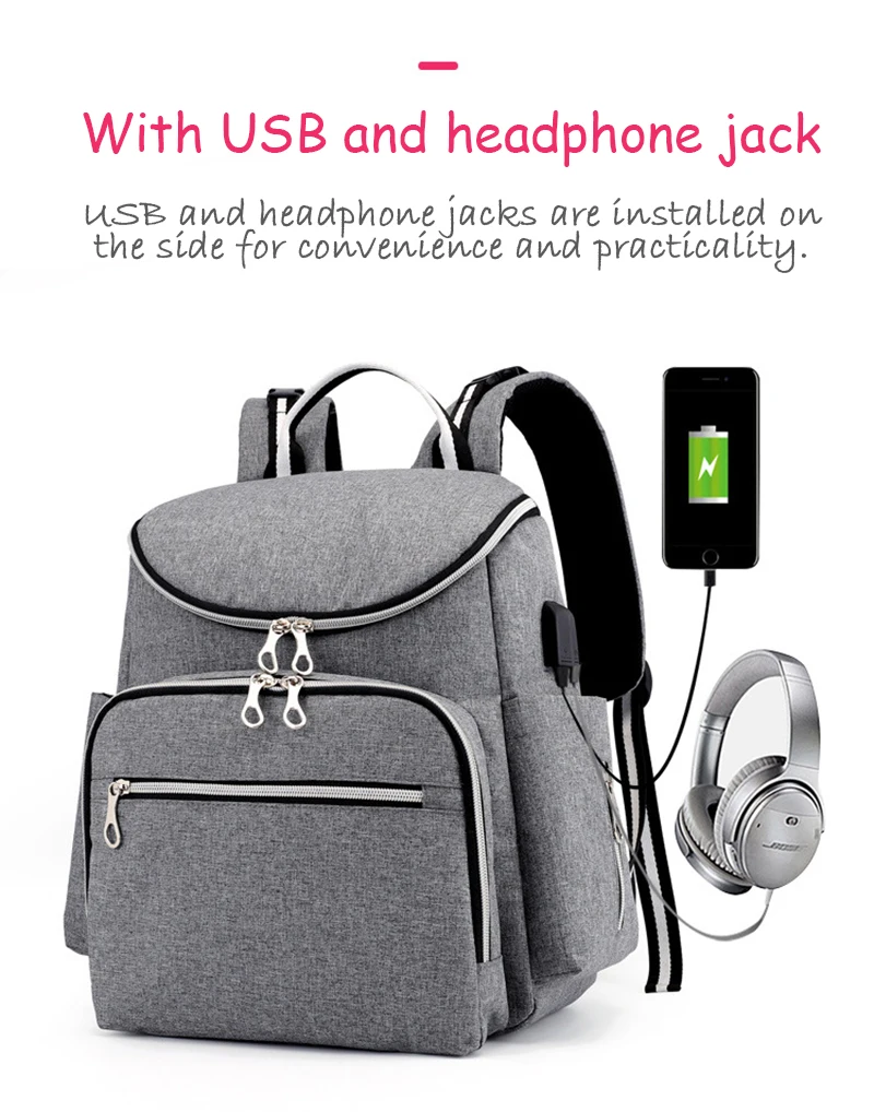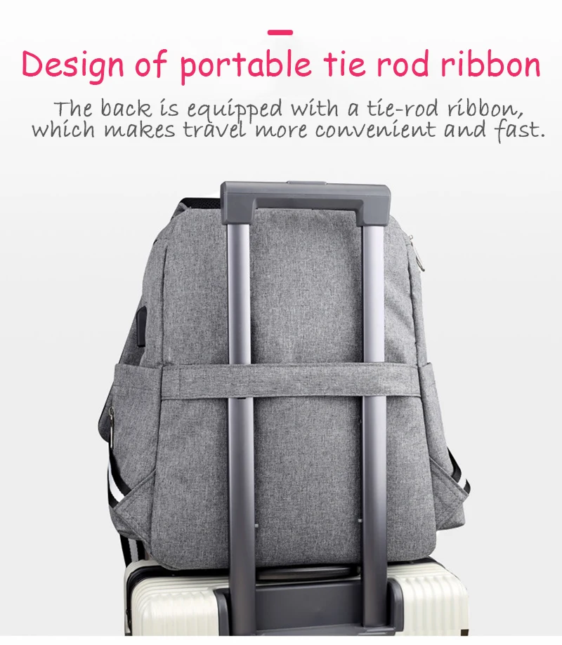 Diaper Bag USB Baby Nappy Bag Mummy Backpack Large Capacity Waterproof Casual Laptop Bag Rechargeable Holder Travel Maternity