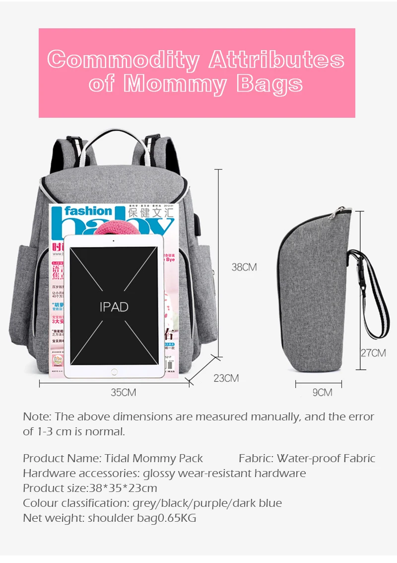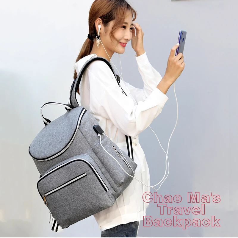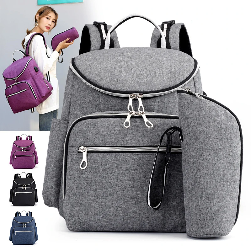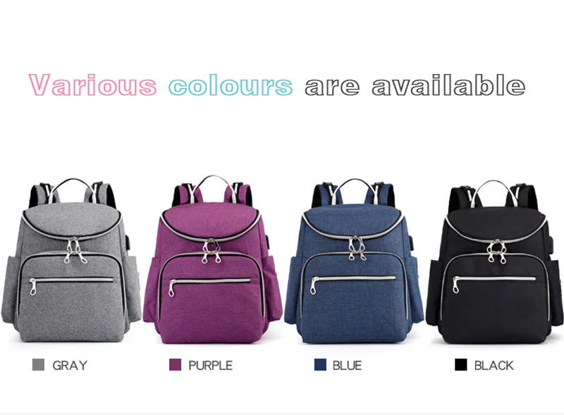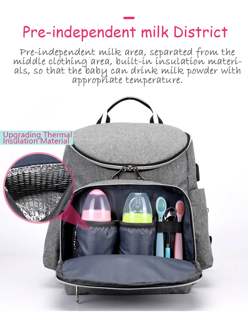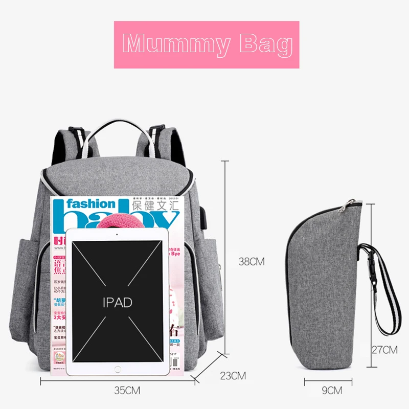 Diaper Bag USB Baby Nappy Bag Mummy Backpack Large Capacity Waterproof Casual Laptop Bag Rechargeable Holder Travel Maternity