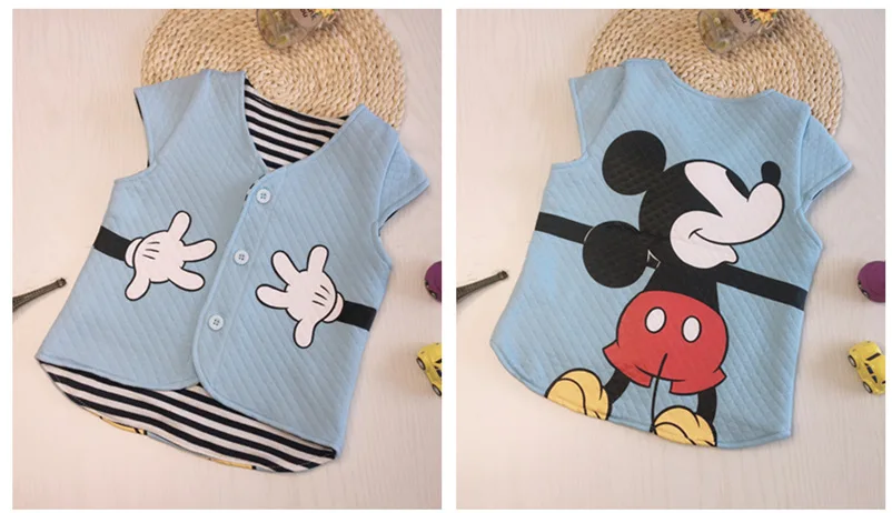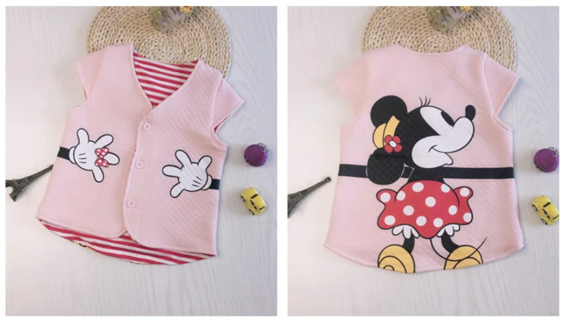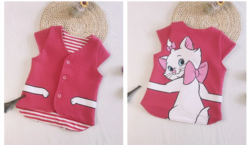 Disney Mickey Winnie Marie Cat Anime Casual Vests Waistcoats Cartoon Children Clothing Outerwear Coats Winter Warm