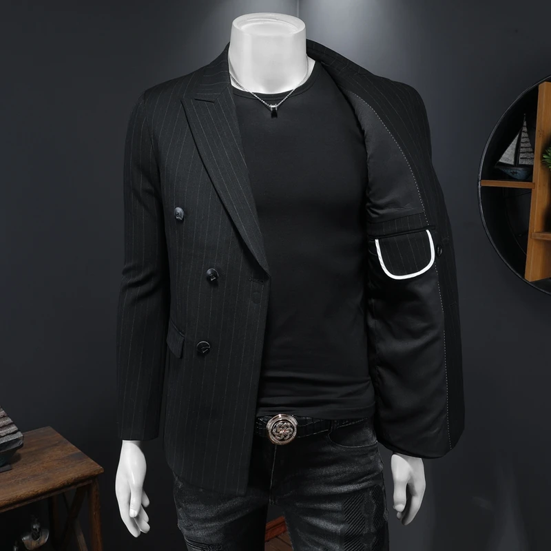 Double Breasted Business Casual Blazers For Men Premium Slim Fit Four Seasons Top Quality Easy Care Suits Jacket Terno Masculino