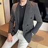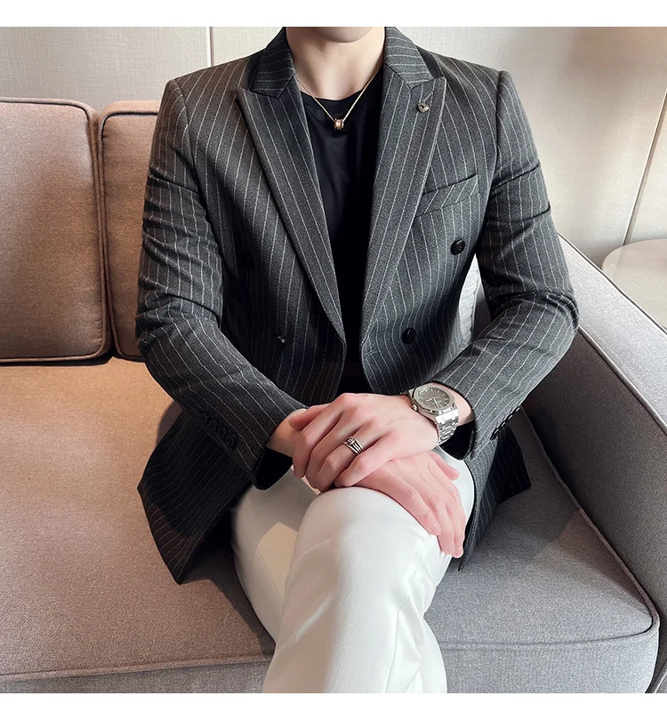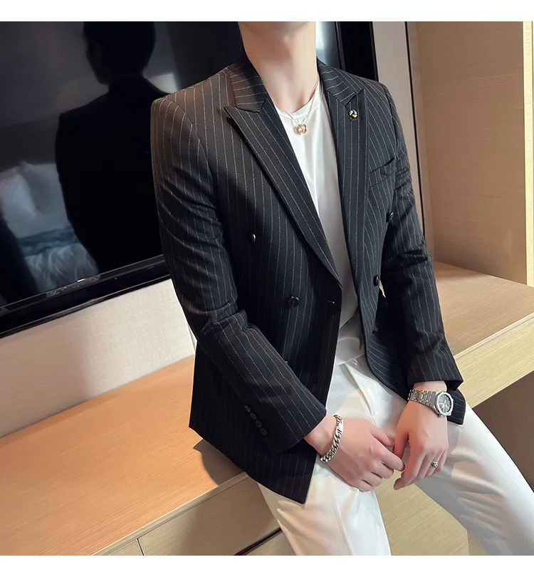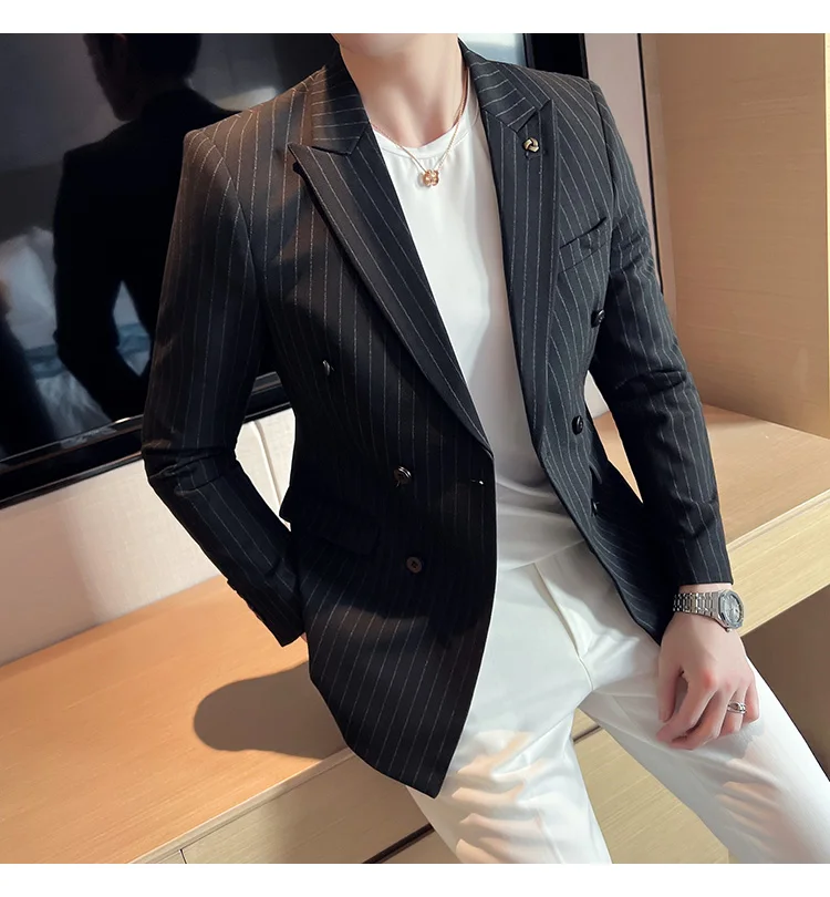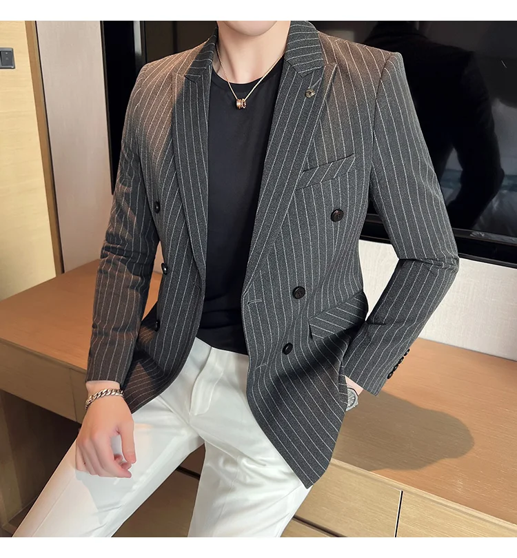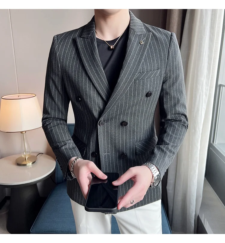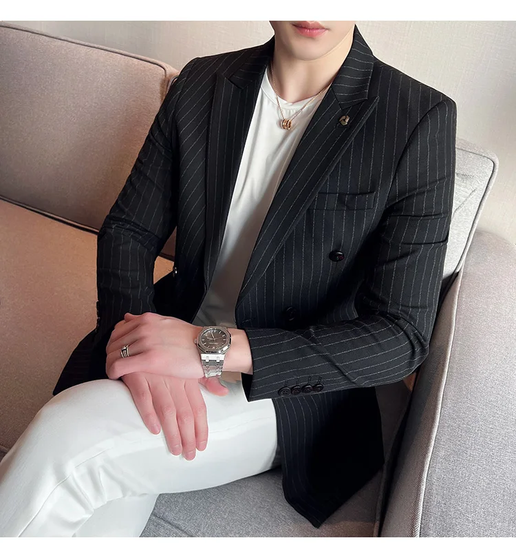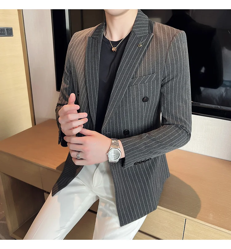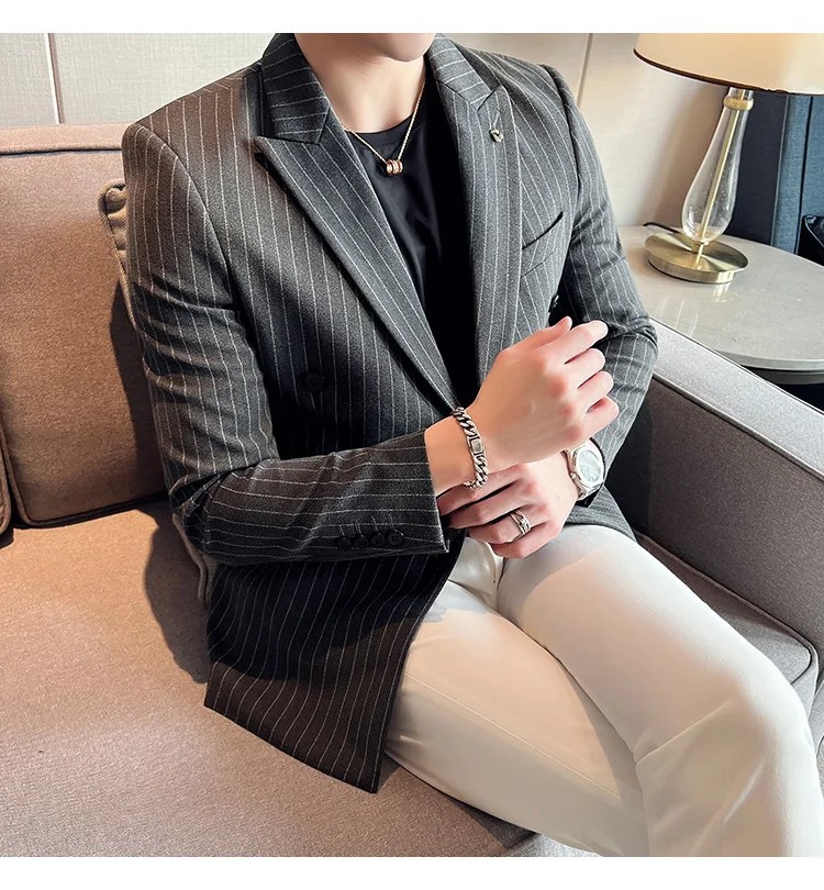 Double Breasted Pinstripes Elegant Mens Jackets Slim Fit Social Wedding Party Smoking Blazers For Mens New Fashion Office Dress