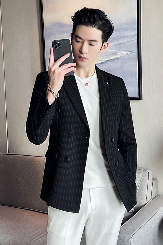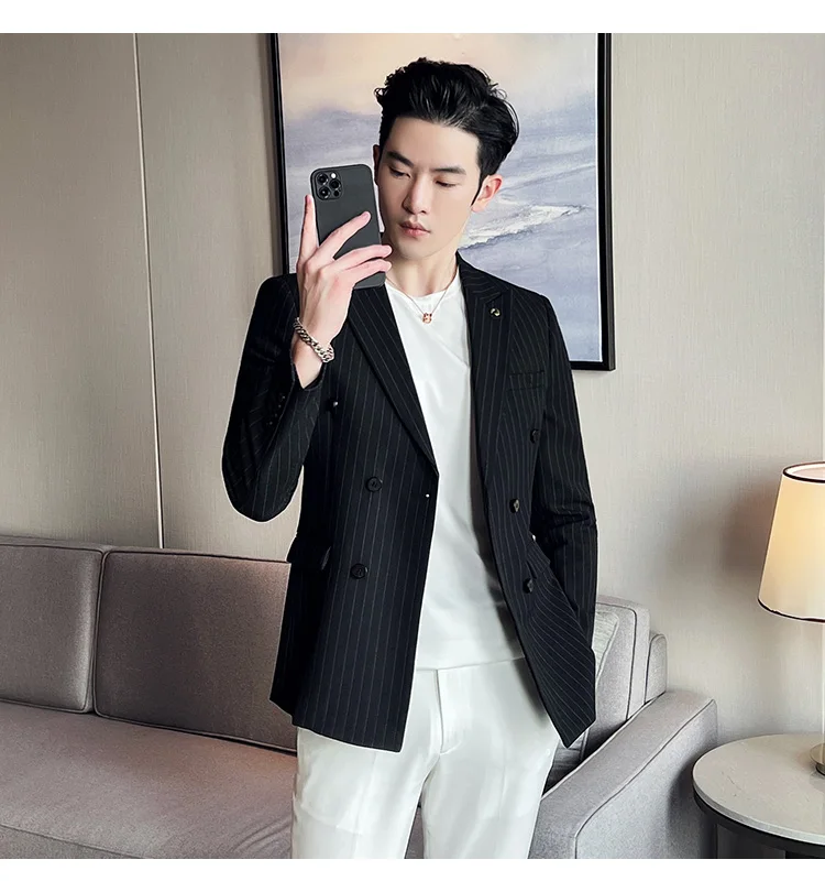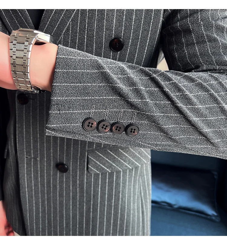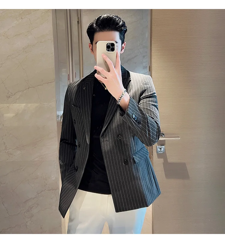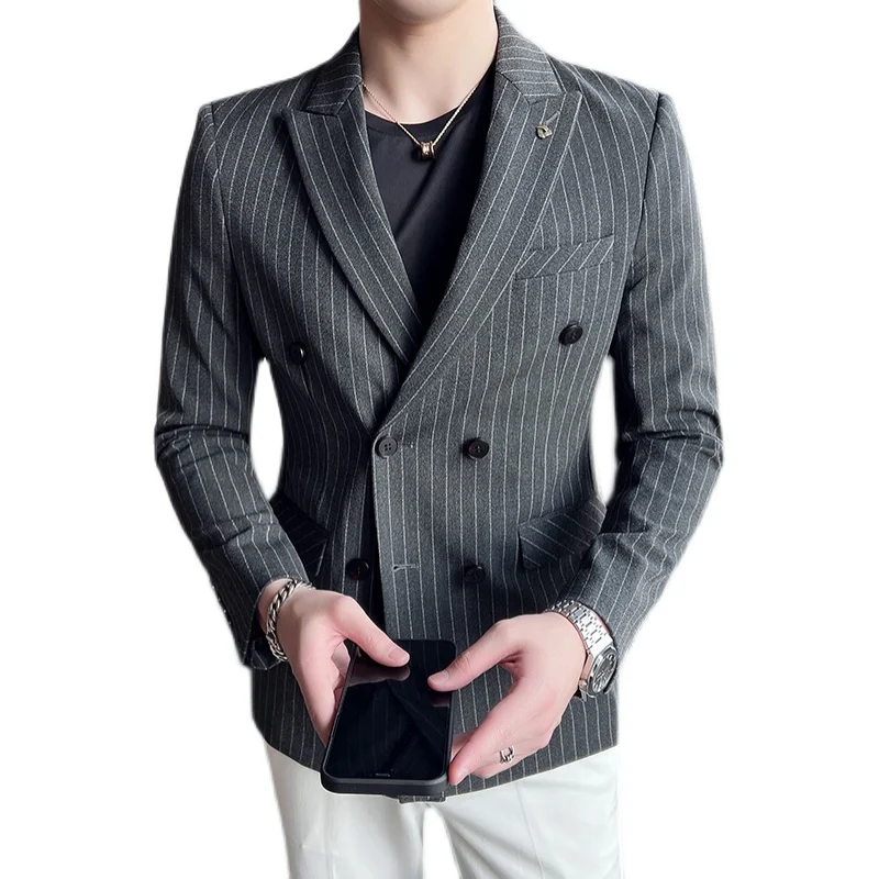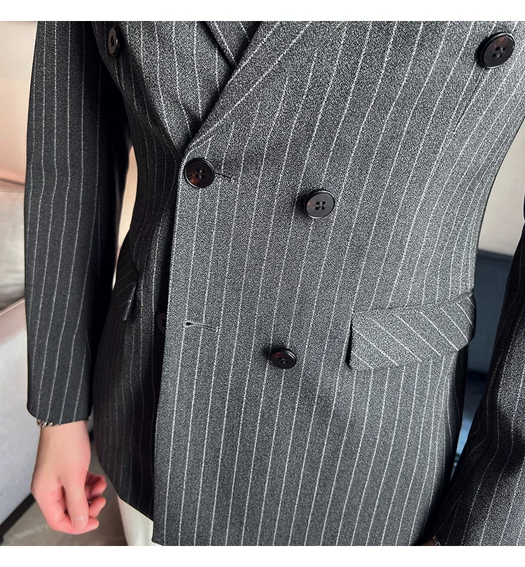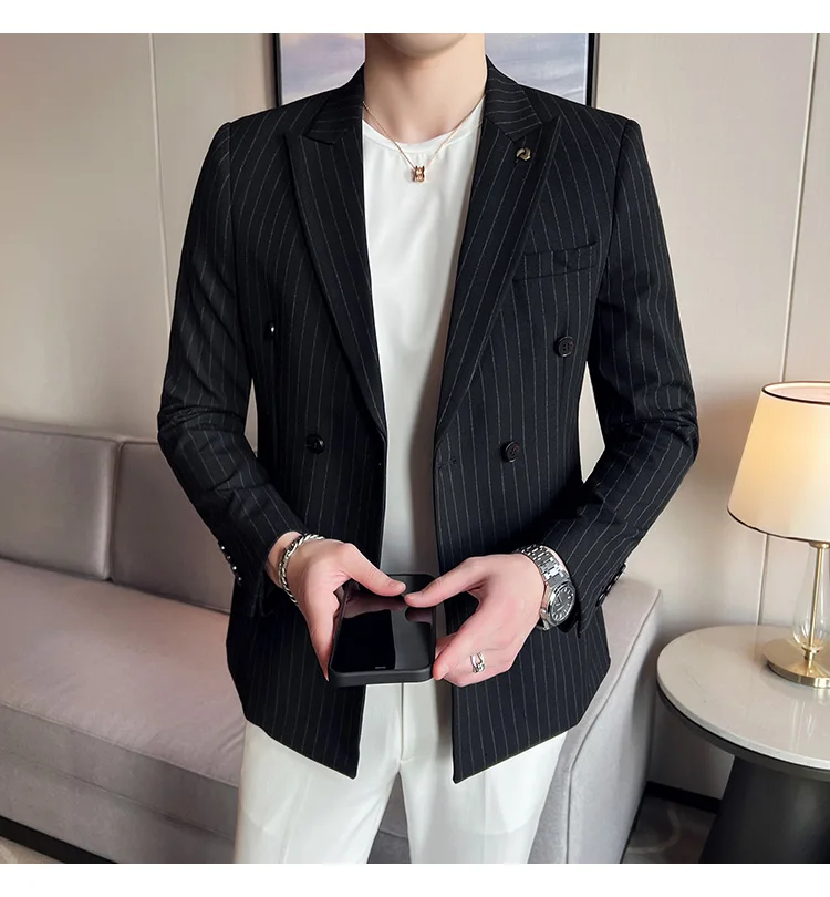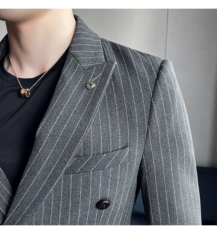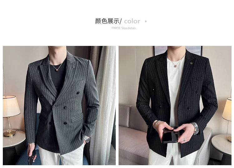 Double Breasted Pinstripes Elegant Mens Jackets Slim Fit Social Wedding Party Smoking Blazers For Mens New Fashion Office Dress