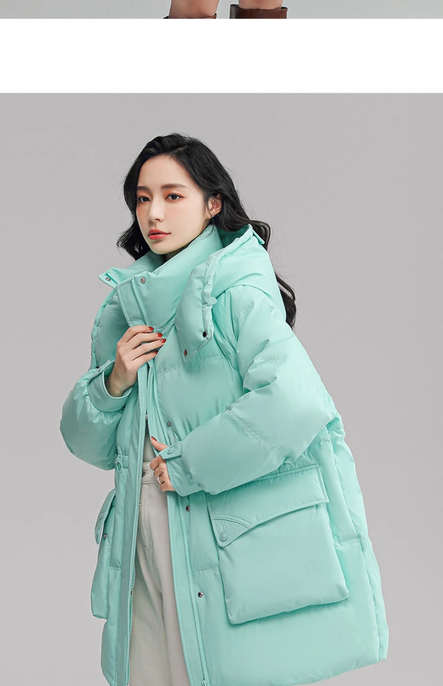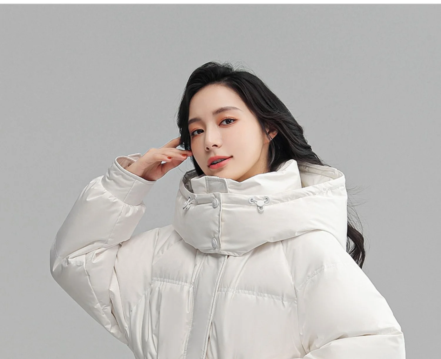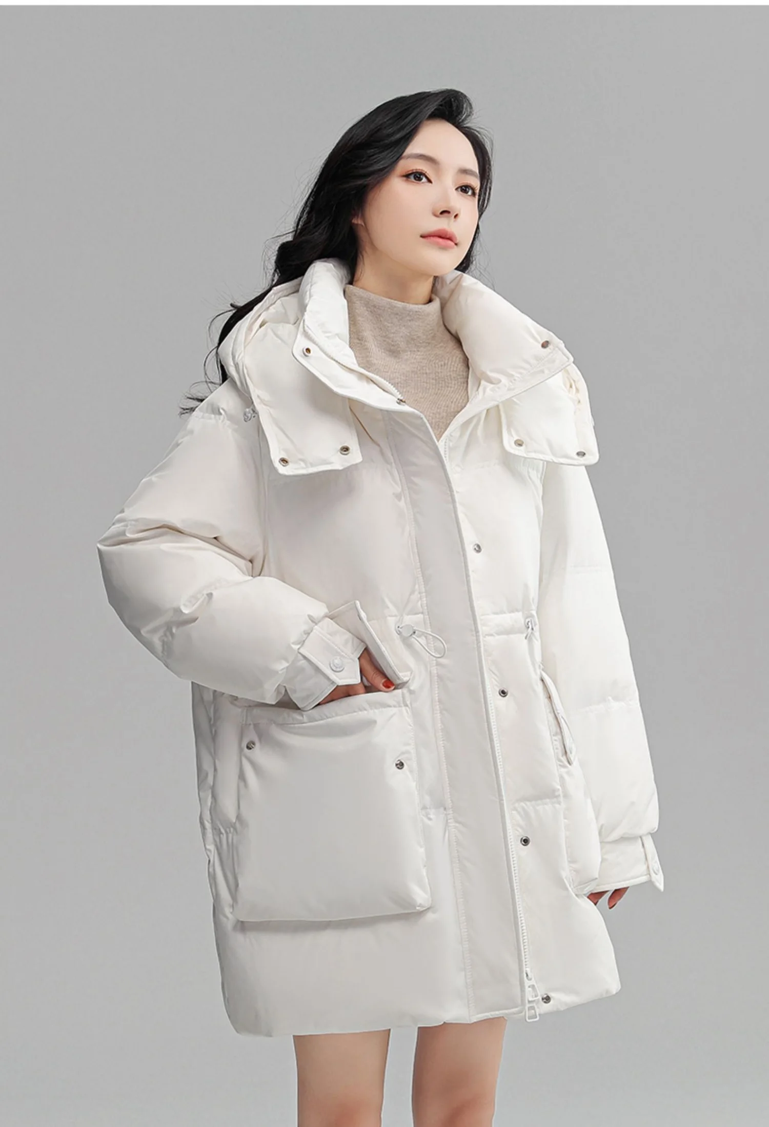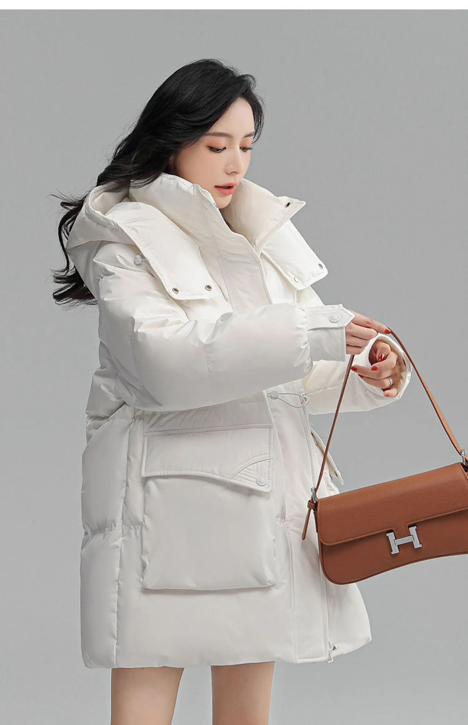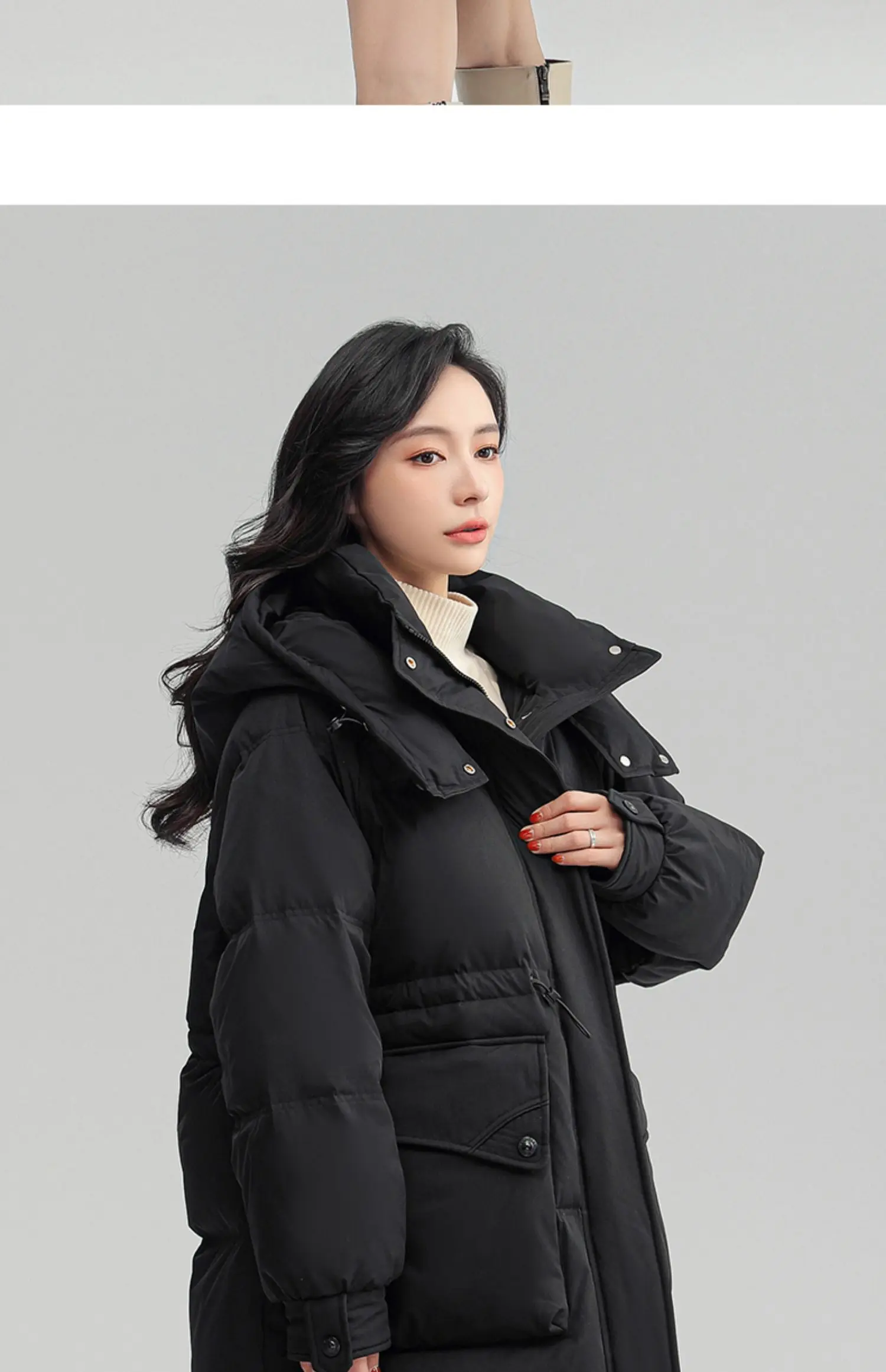 Duck Down Hooded Jacket for Women, Long Loose Overcoat, Warm Parka, Female Outwear, White, New, Winter, 2023