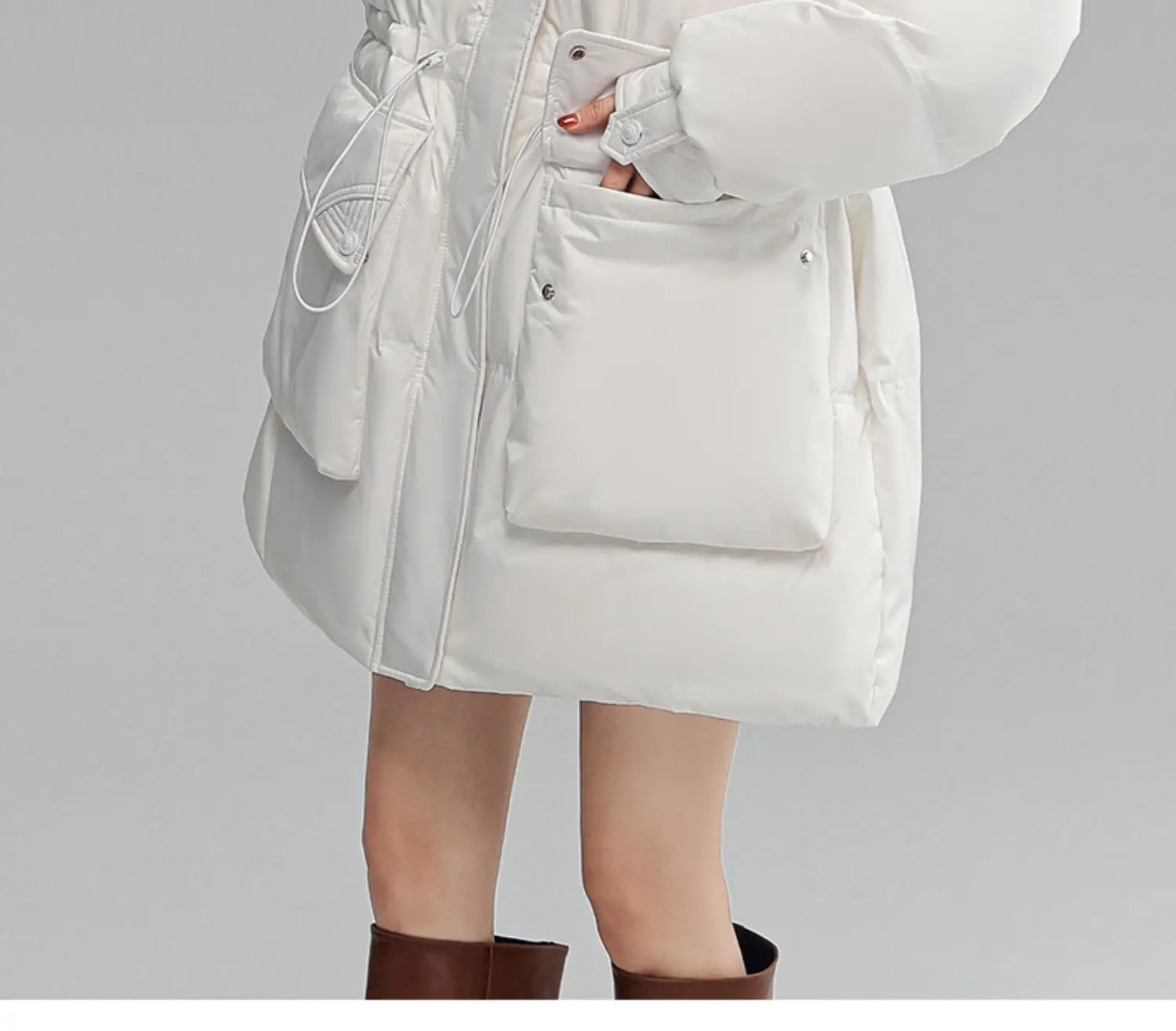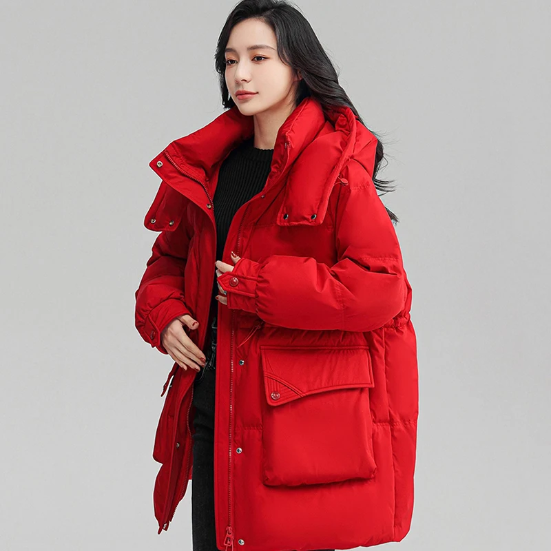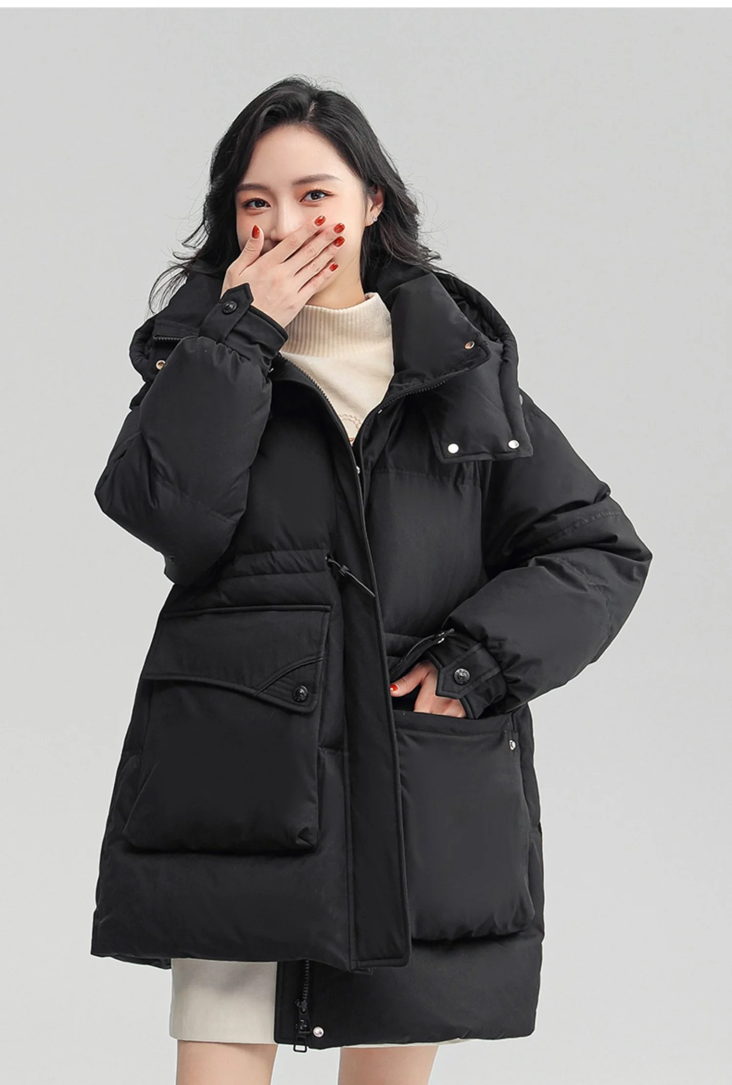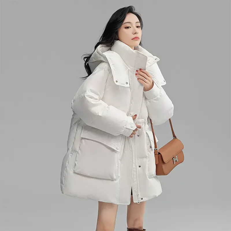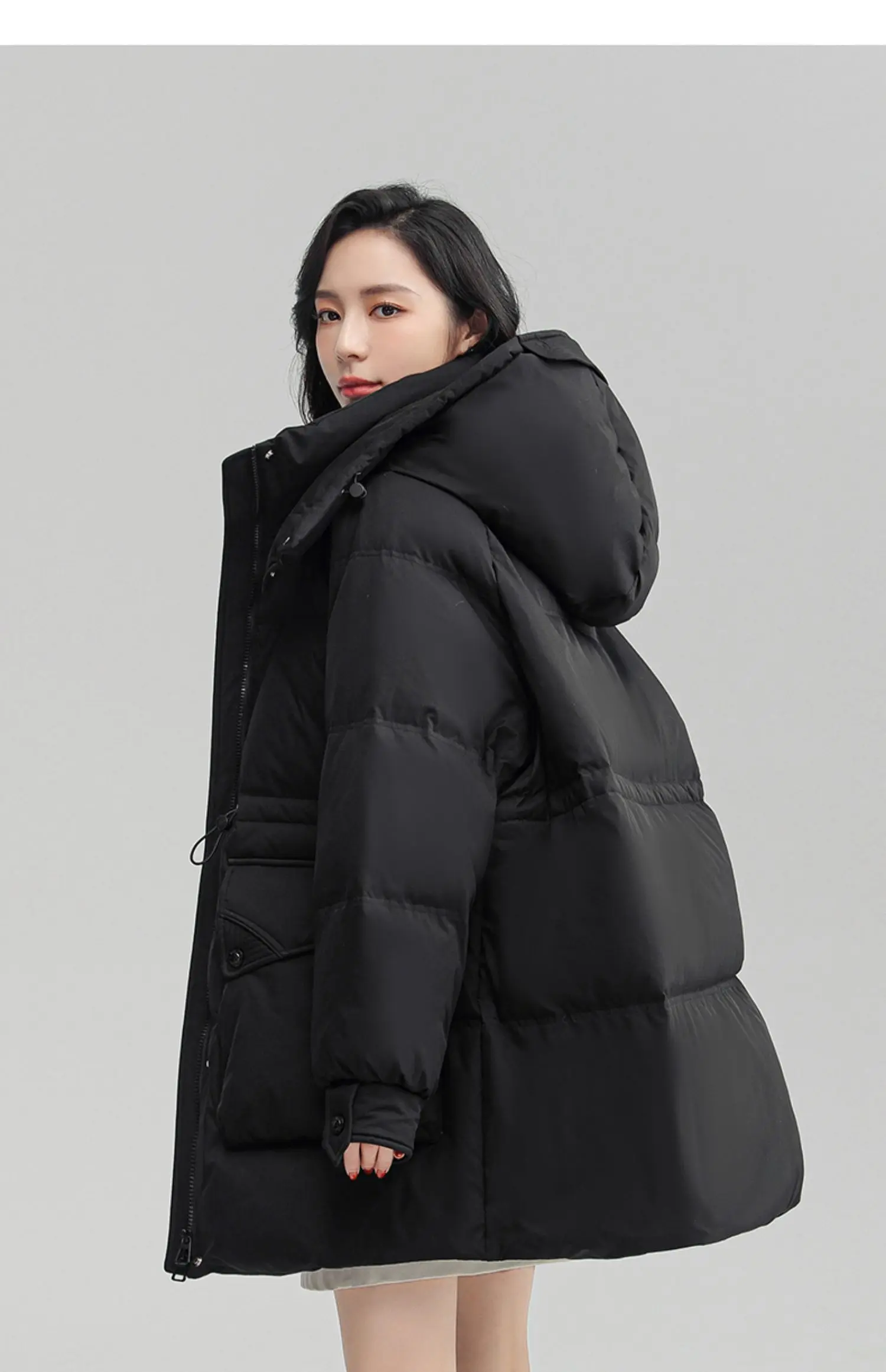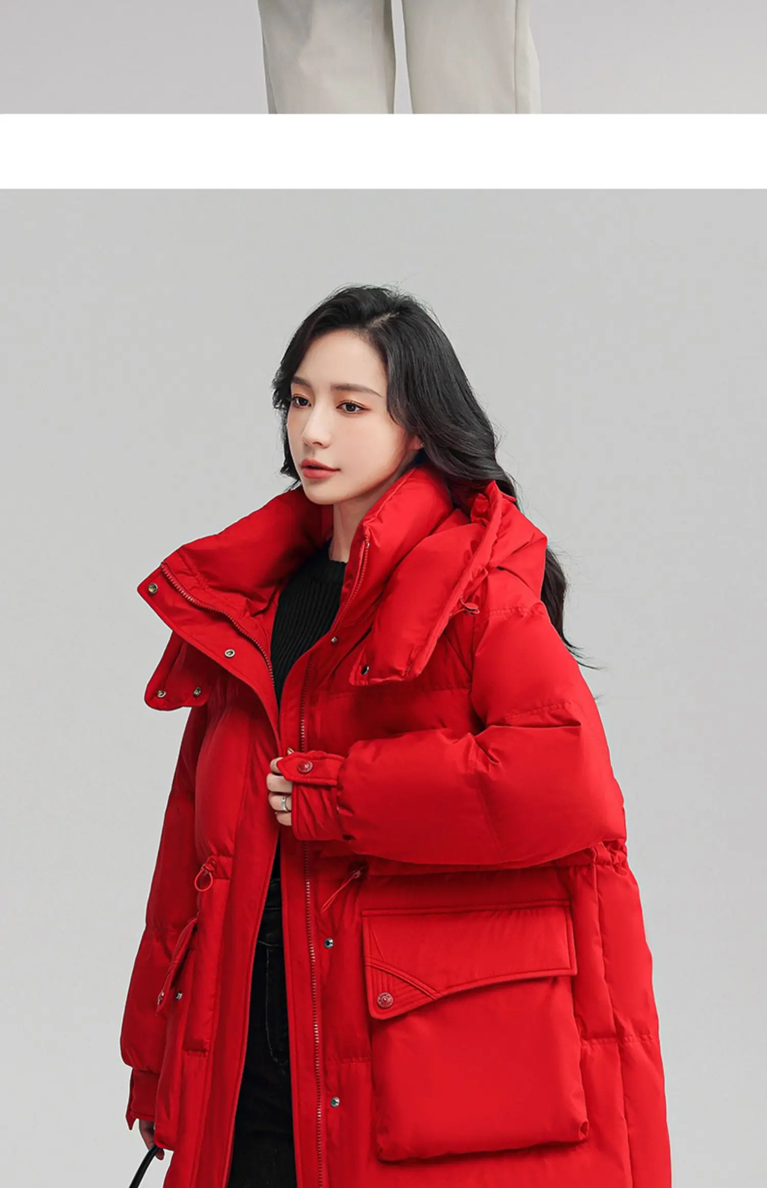 Duck Down Hooded Jacket for Women, Long Loose Overcoat, Warm Parka, Female Outwear, White, New, Winter, 2023