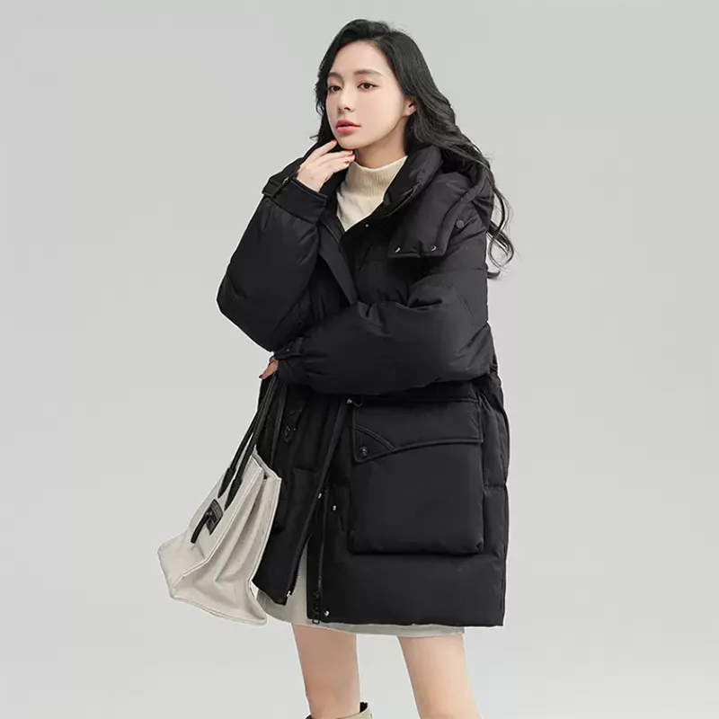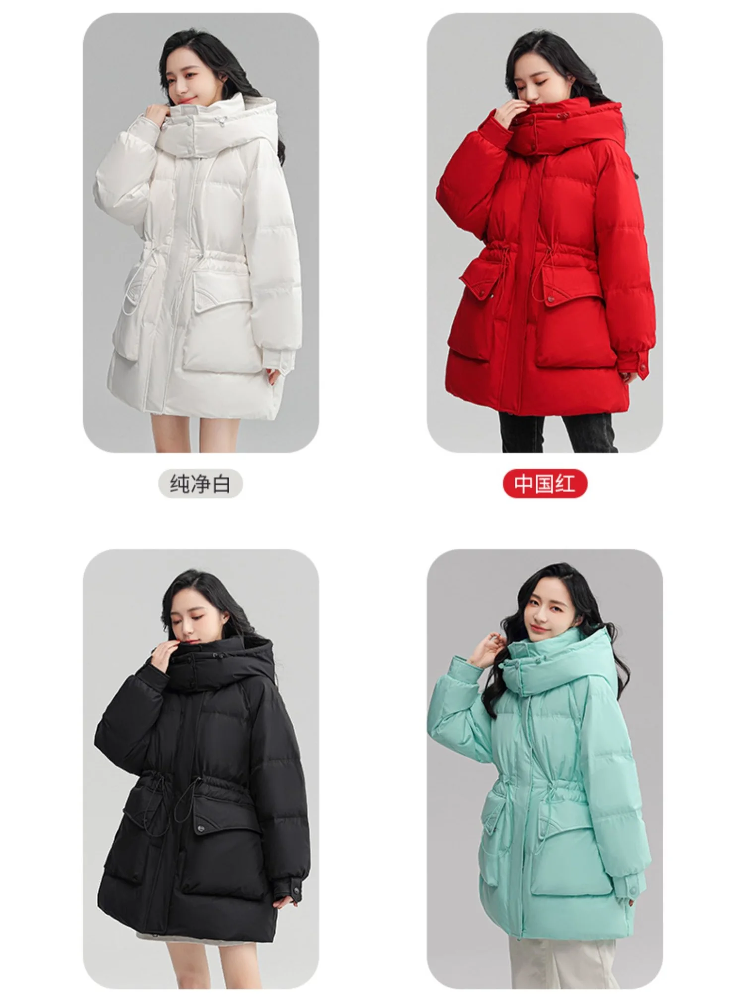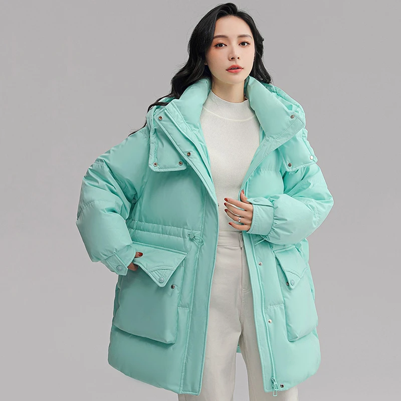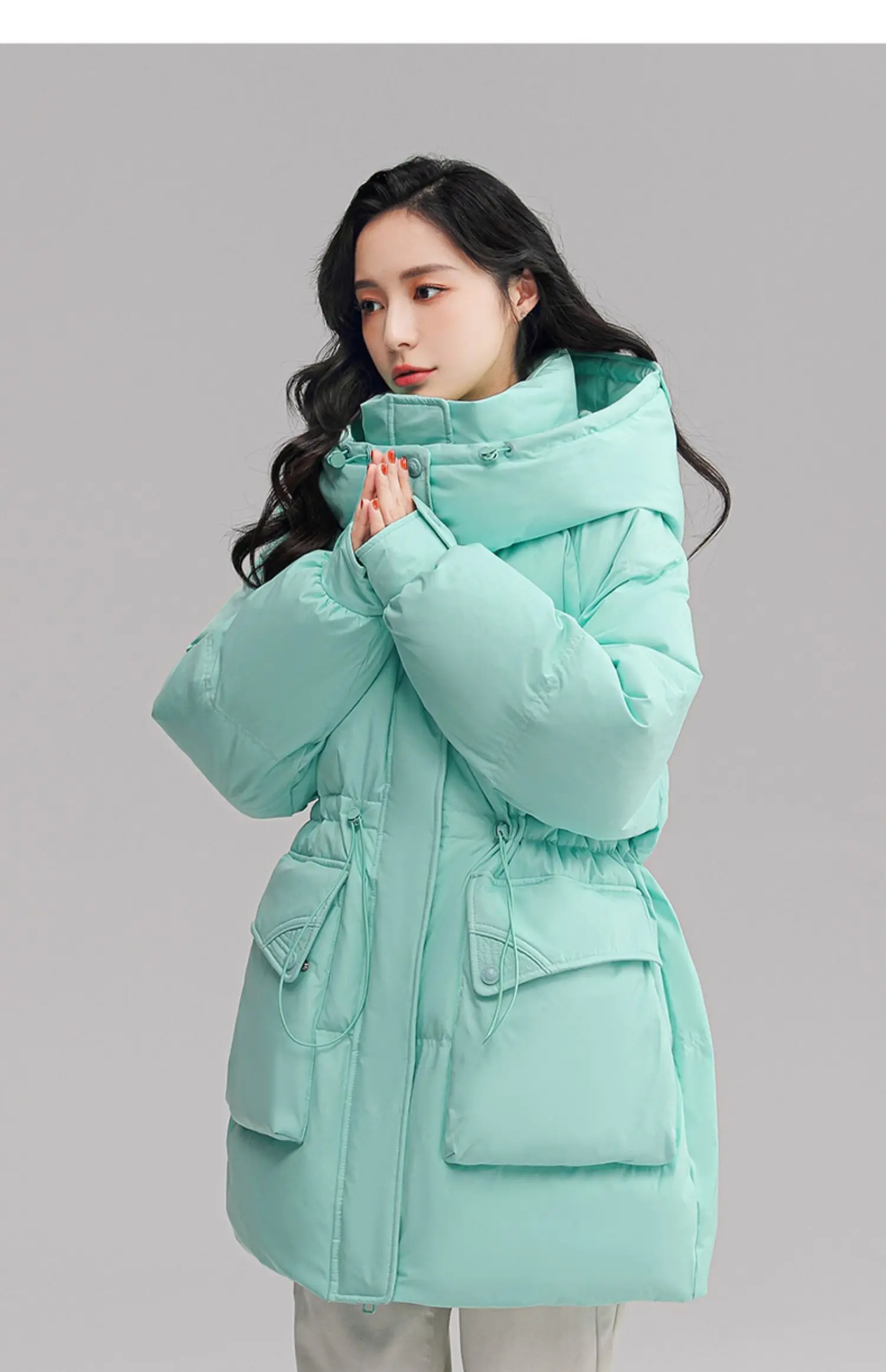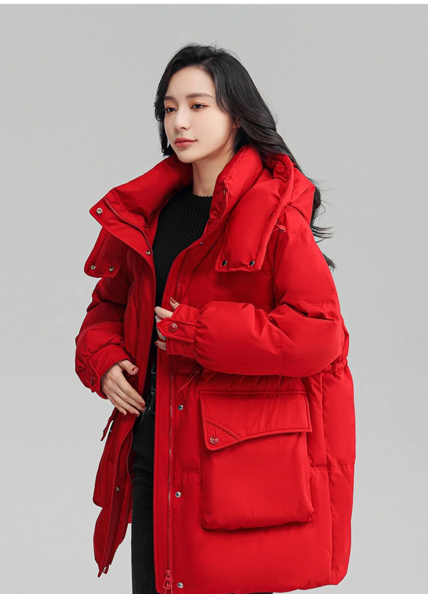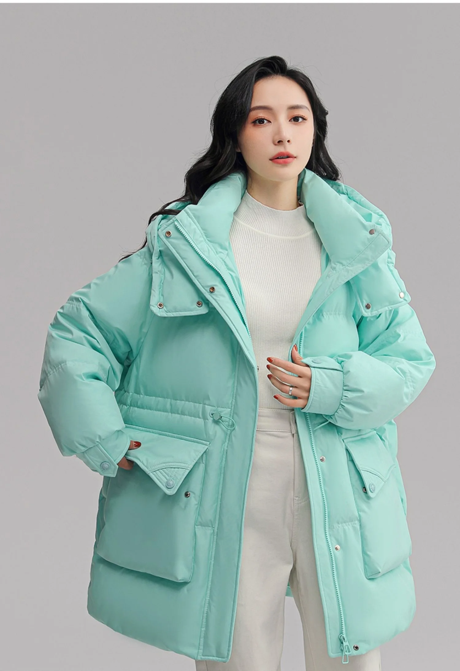 Duck Down Hooded Jacket for Women, Long Loose Overcoat, Warm Parka, Female Outwear, White, New, Winter, 2023