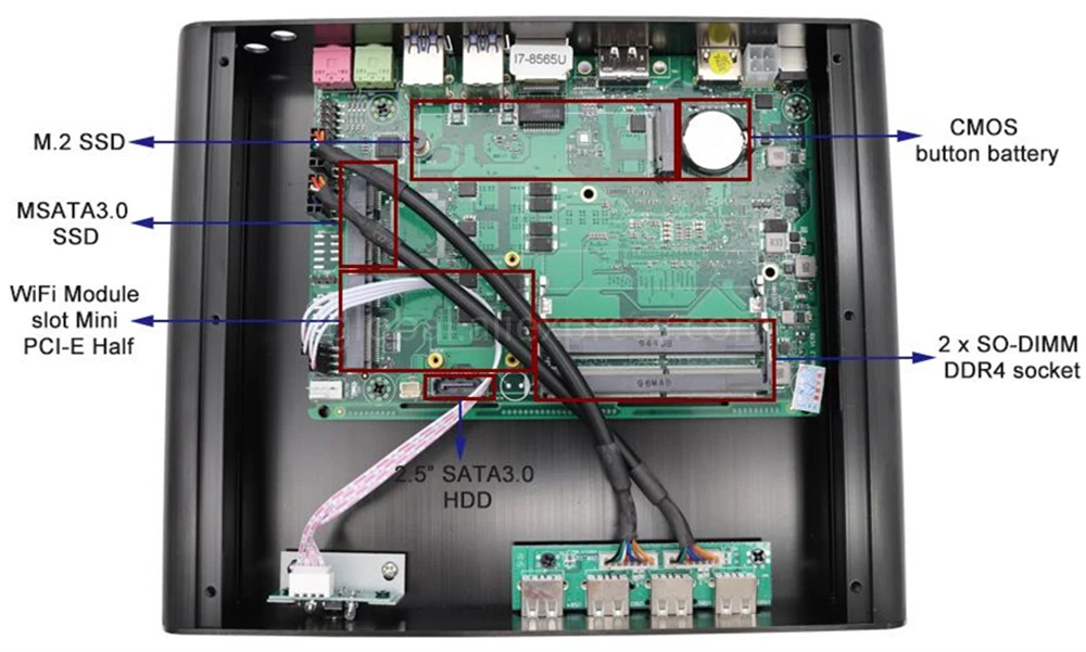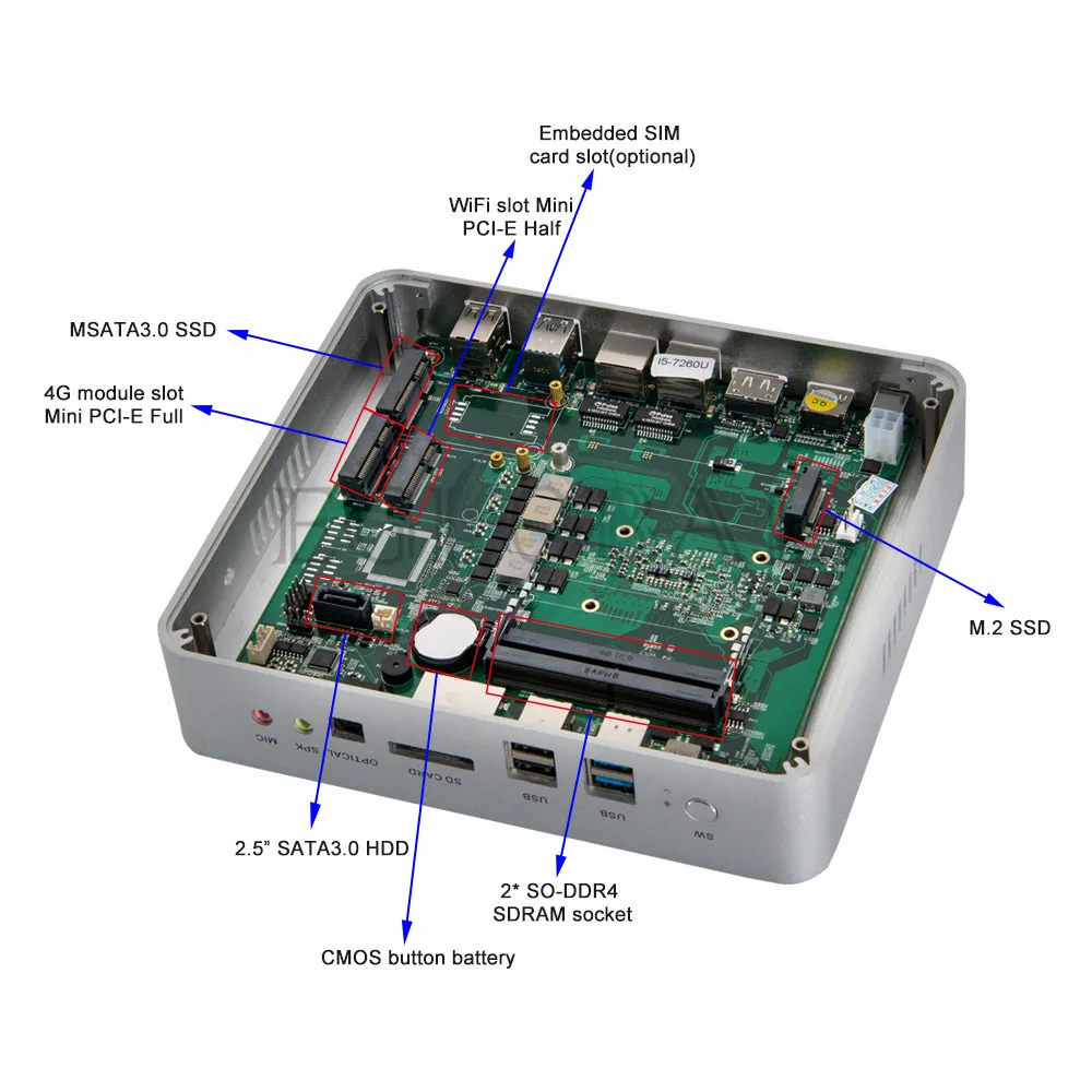 4)- Triple-Storage: support 1*Msata SSD+1*M.2(22×80) SSD+1*2.5” SATA HD;
