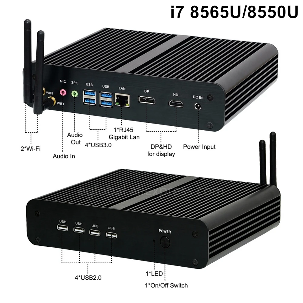 i5 8250U model: 4*USB3.0, 4*USB2.0, 1*HDMI, 1*VGA, 1*Lan