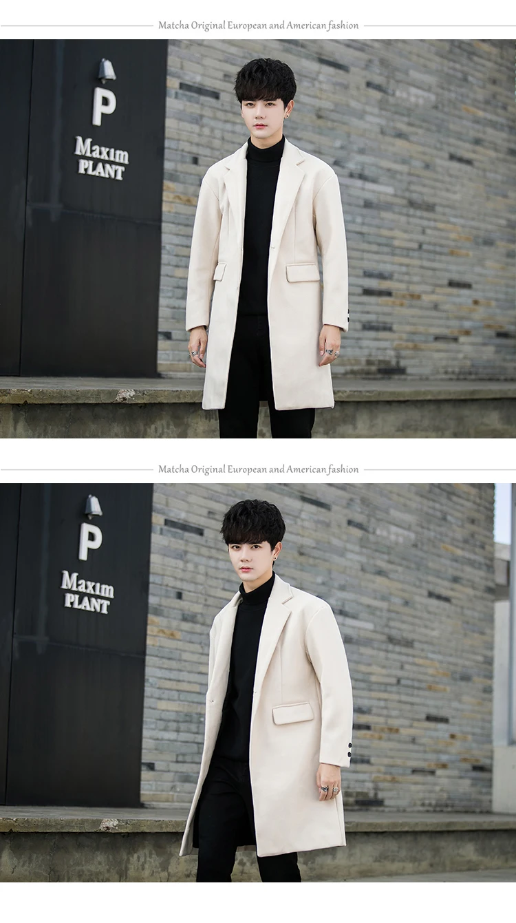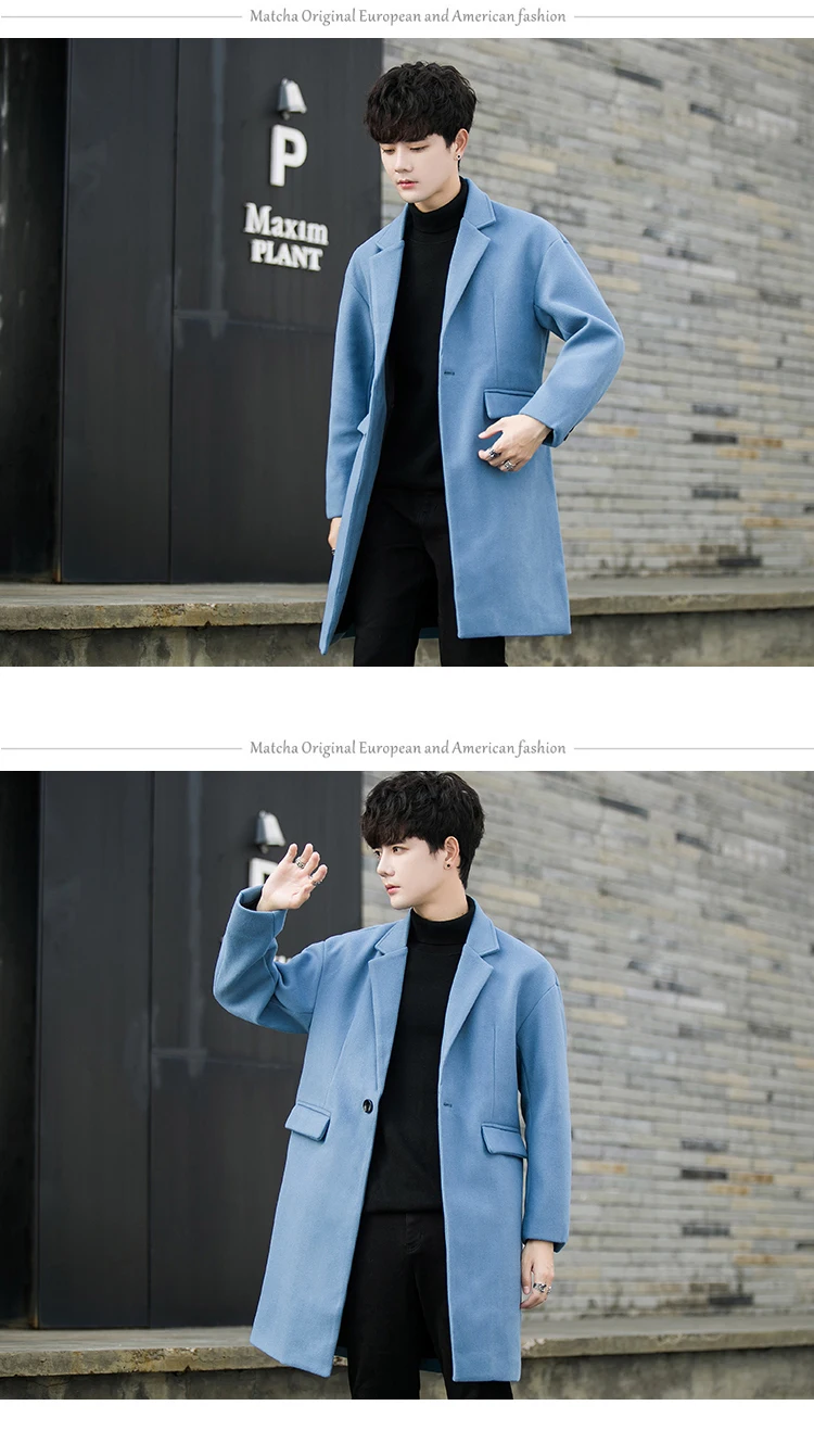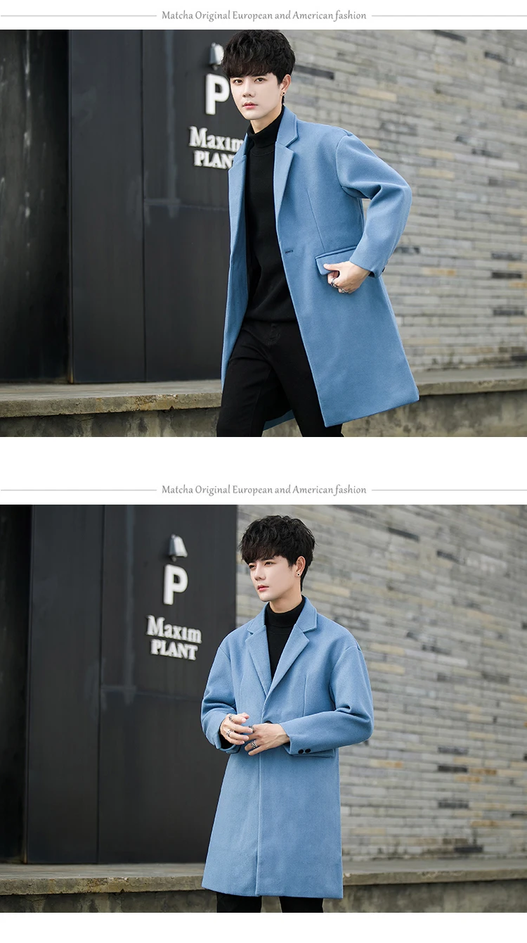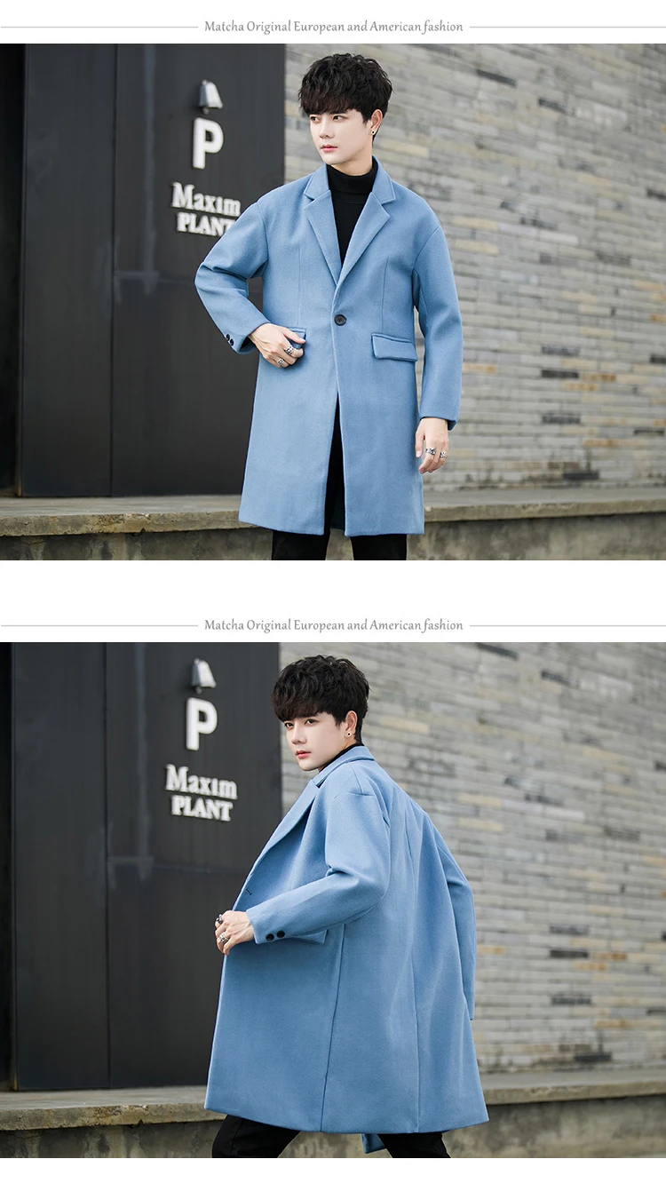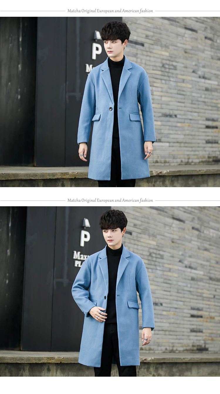 Elegant Blue Long Overcoats For Mens Woolen Long Jackets Korean Fashion 2022 Autumn Beige Off White Gentleman Winter Trench Coat