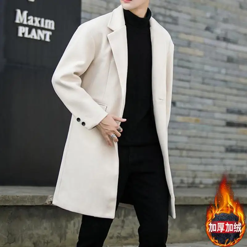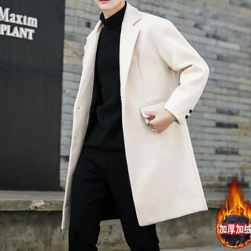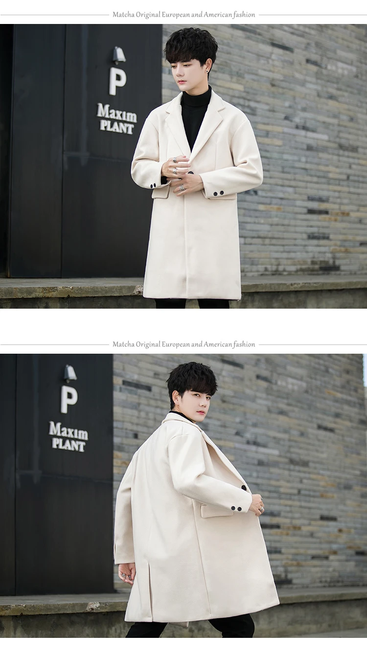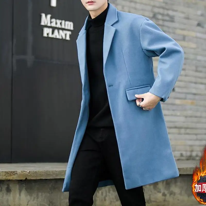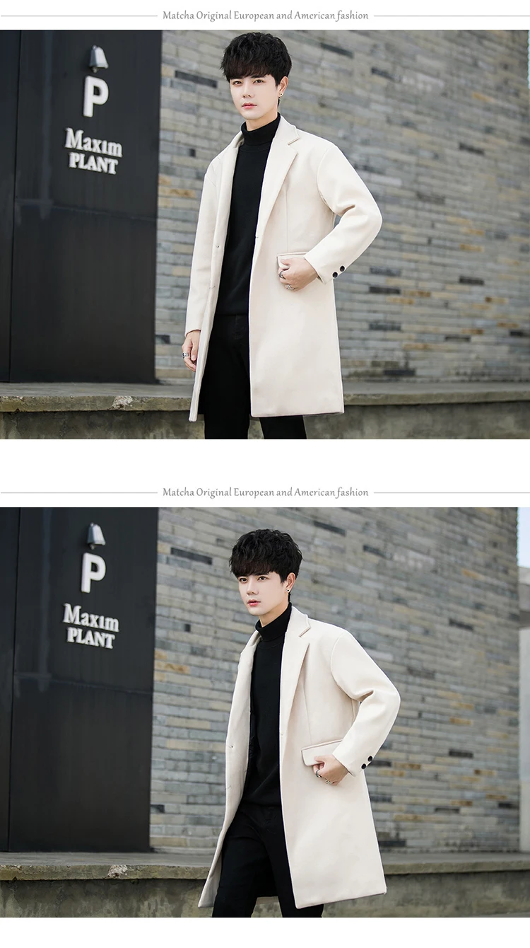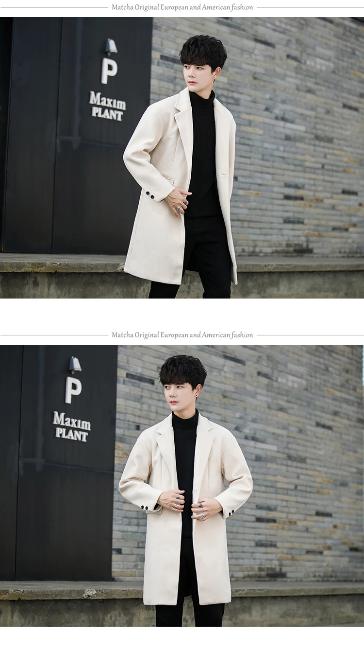 Elegant Blue Long Overcoats For Mens Woolen Long Jackets Korean Fashion 2022 Autumn Beige Off White Gentleman Winter Trench Coat