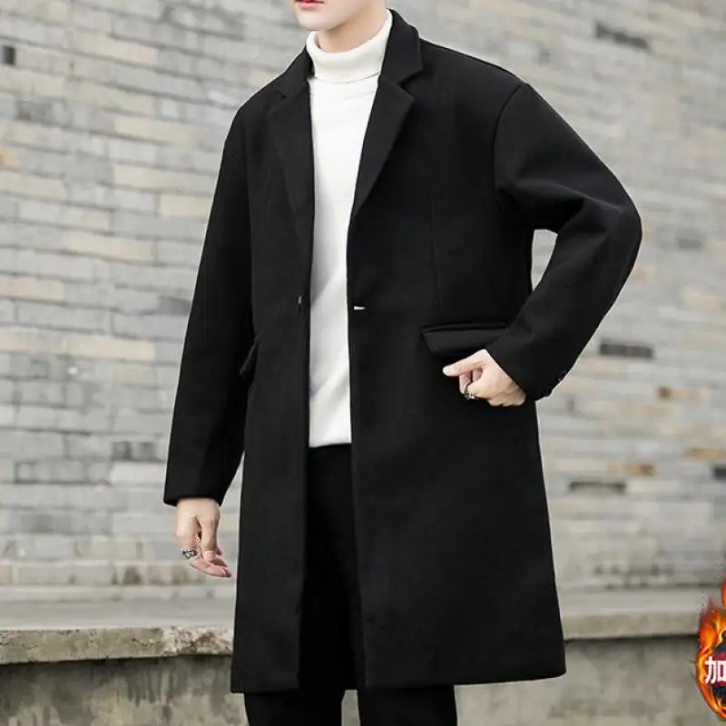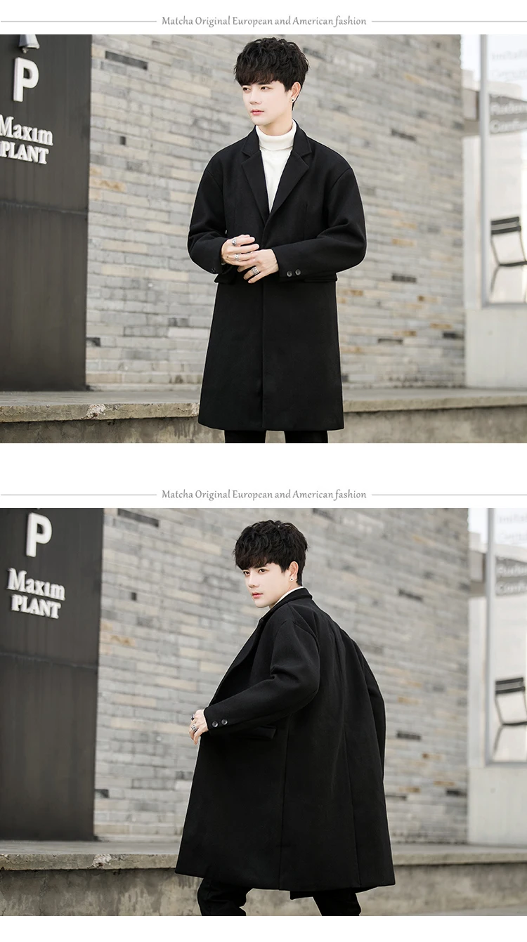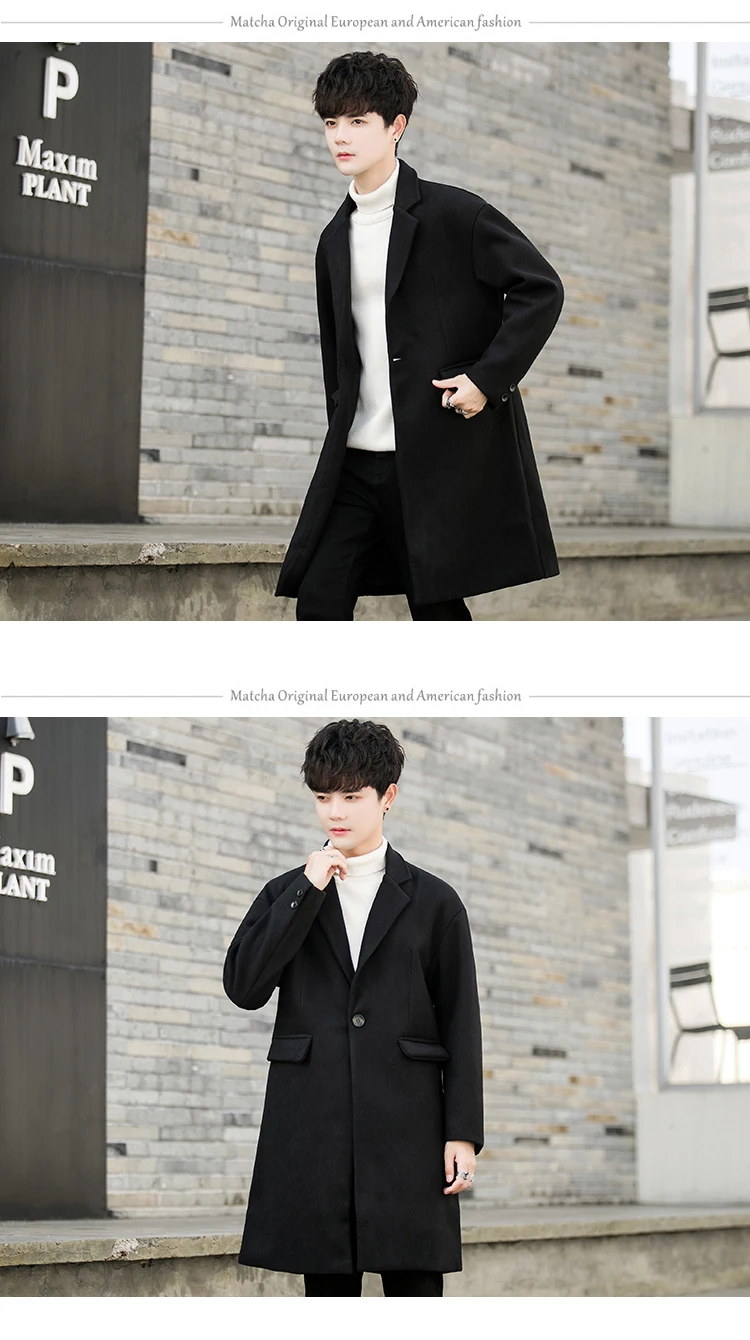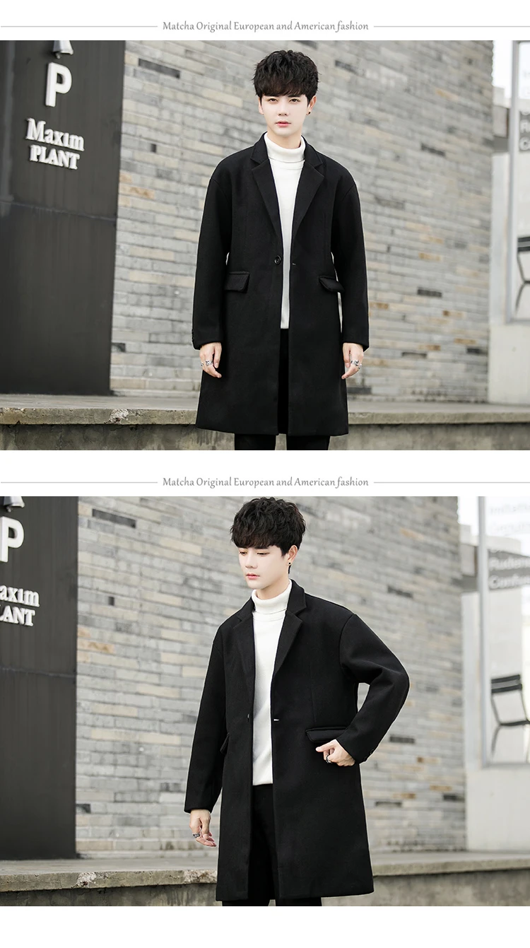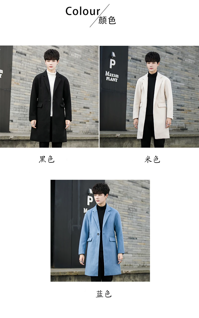 Elegant Blue Long Overcoats For Mens Woolen Long Jackets Korean Fashion 2022 Autumn Beige Off White Gentleman Winter Trench Coat
