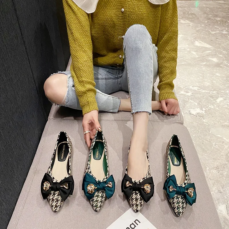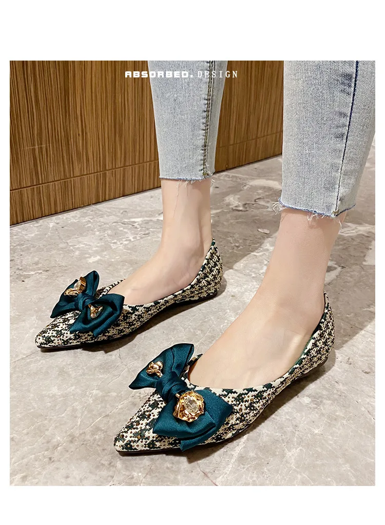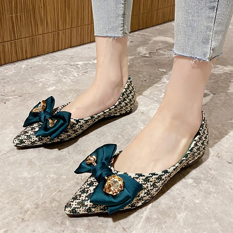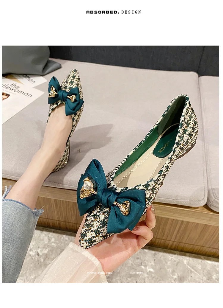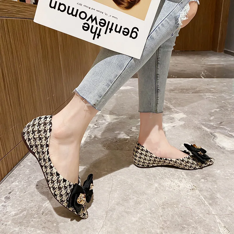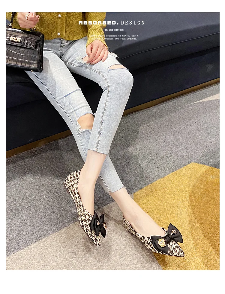 Soft Bottomed Flats Shoes Women Pearl Beaded Shoes Casual Slip On Ballerinas