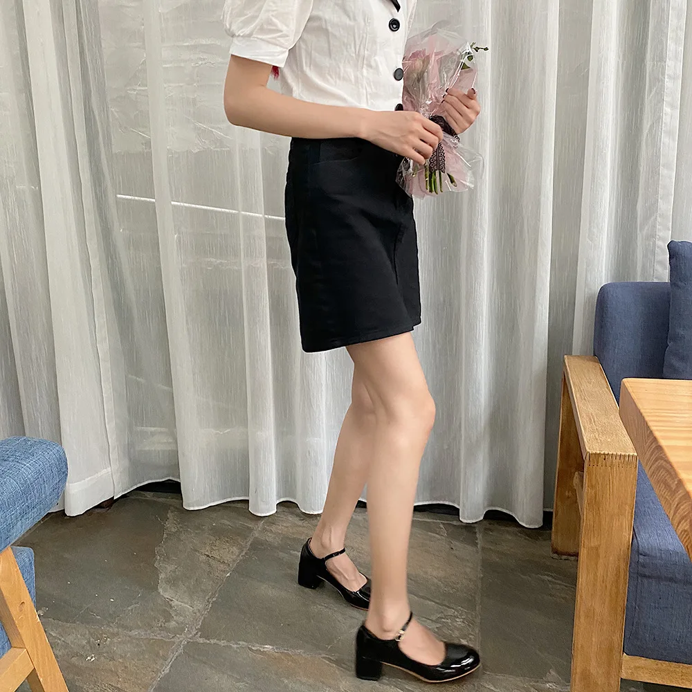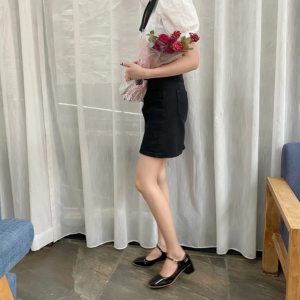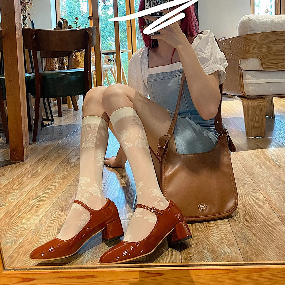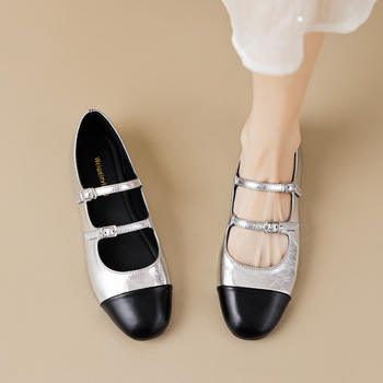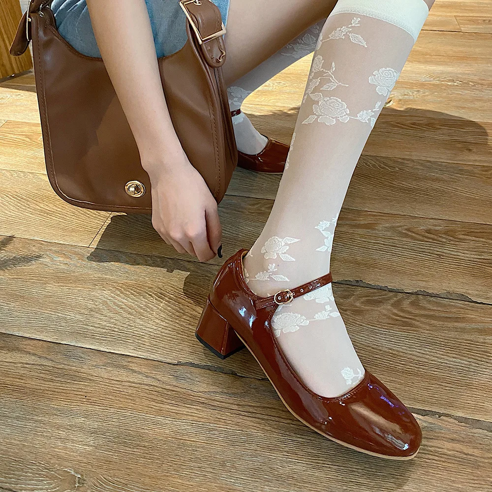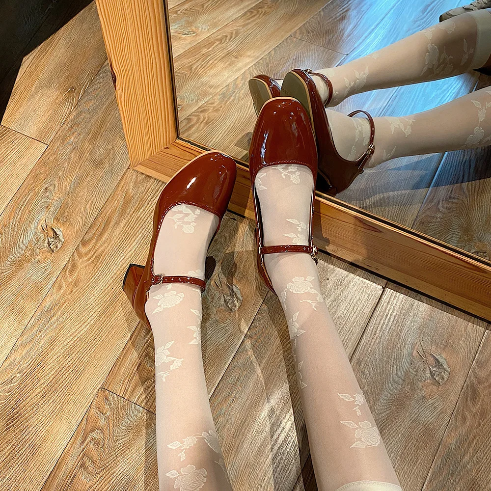Elegant Japanned leather buckle band mary janes women loafers shoes women ballerina solid square toe chunky heels ballet flats