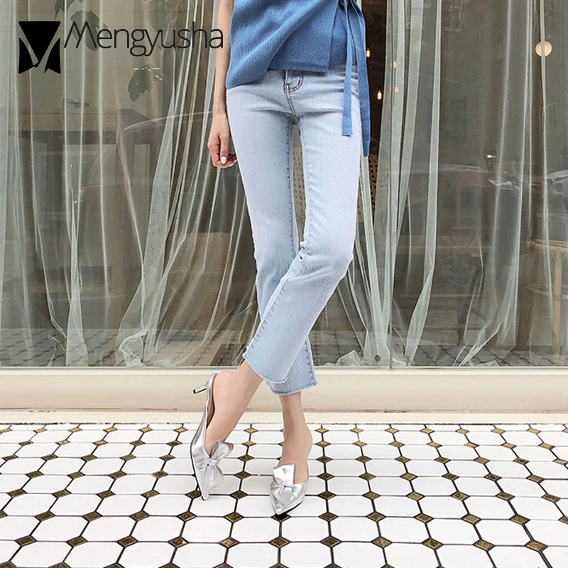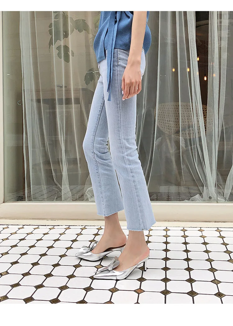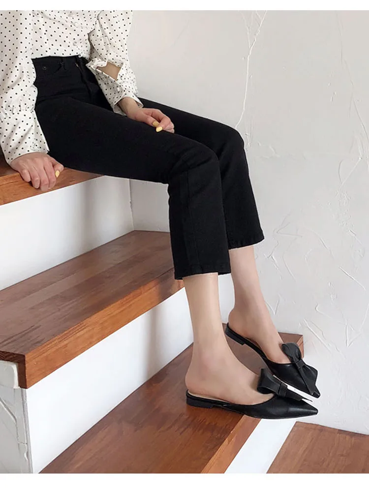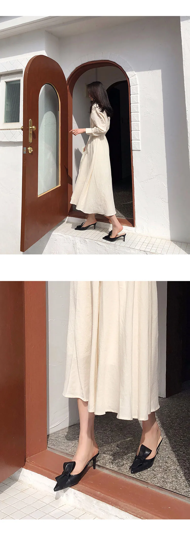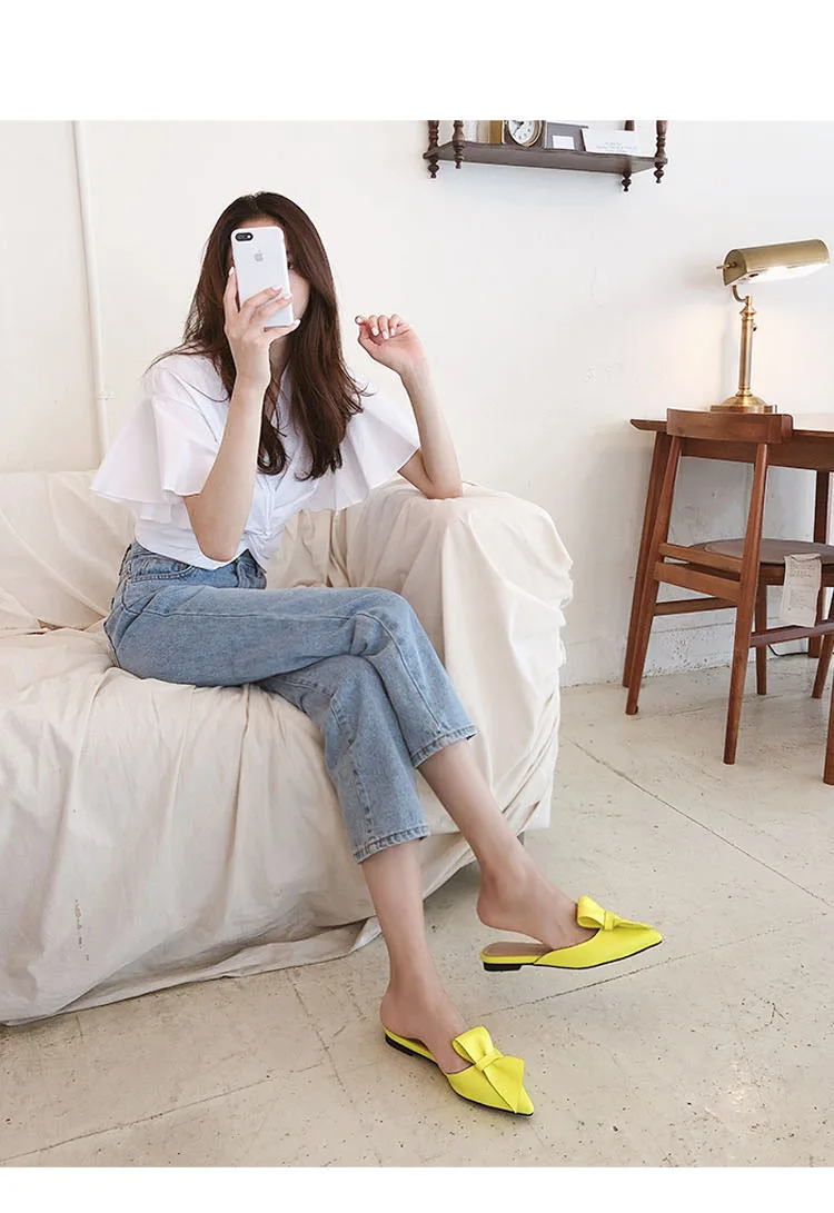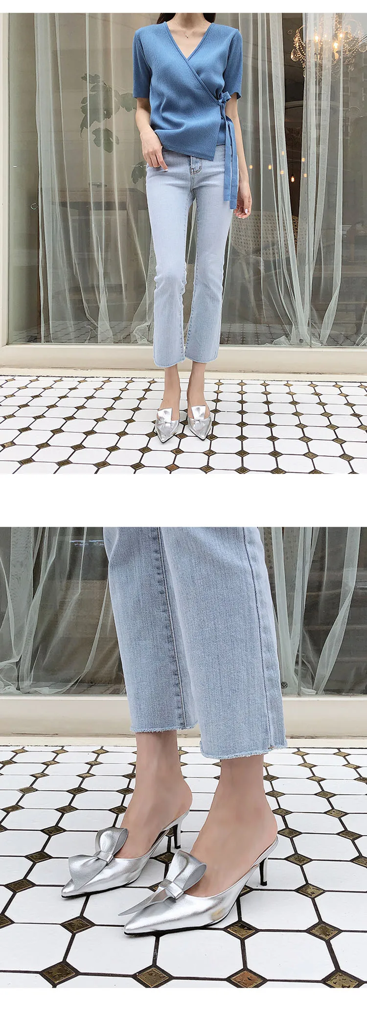 Elegant Ladies Stiletto Heels Woman Bow Slippers Candy Color Thin High Heels Mules Indoor Slides Shoes Pantufa Femme Flip Flops