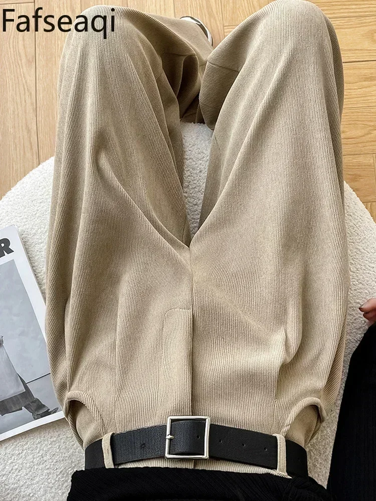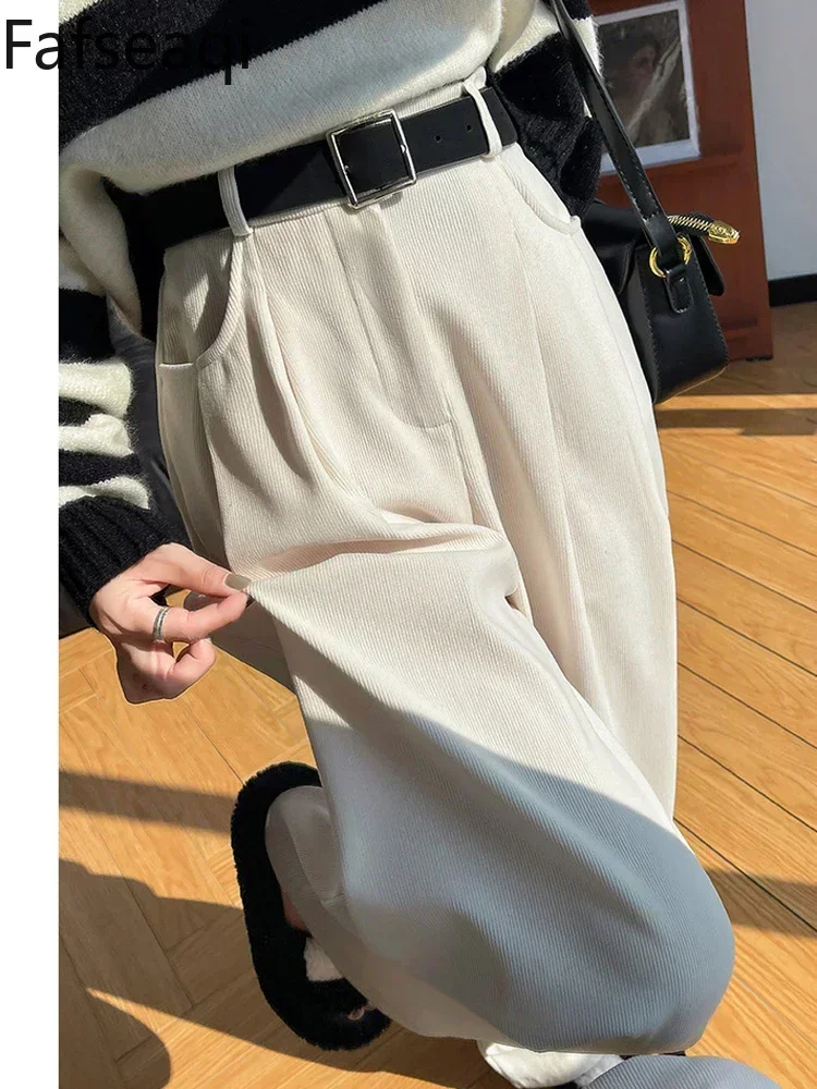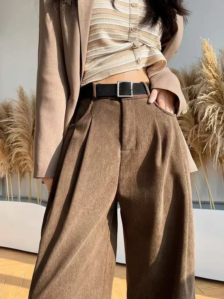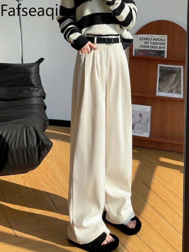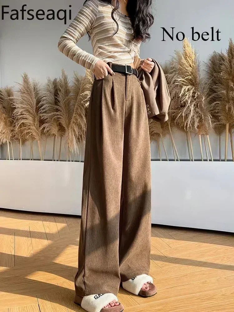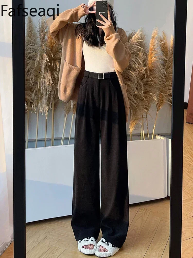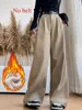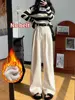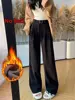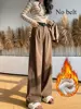 Elegant Wide Leg Pants for Women 2024 Autumn New Maillard Full Length Trousers Winter Women’s Baggy Pants with Velvet Sweatpants