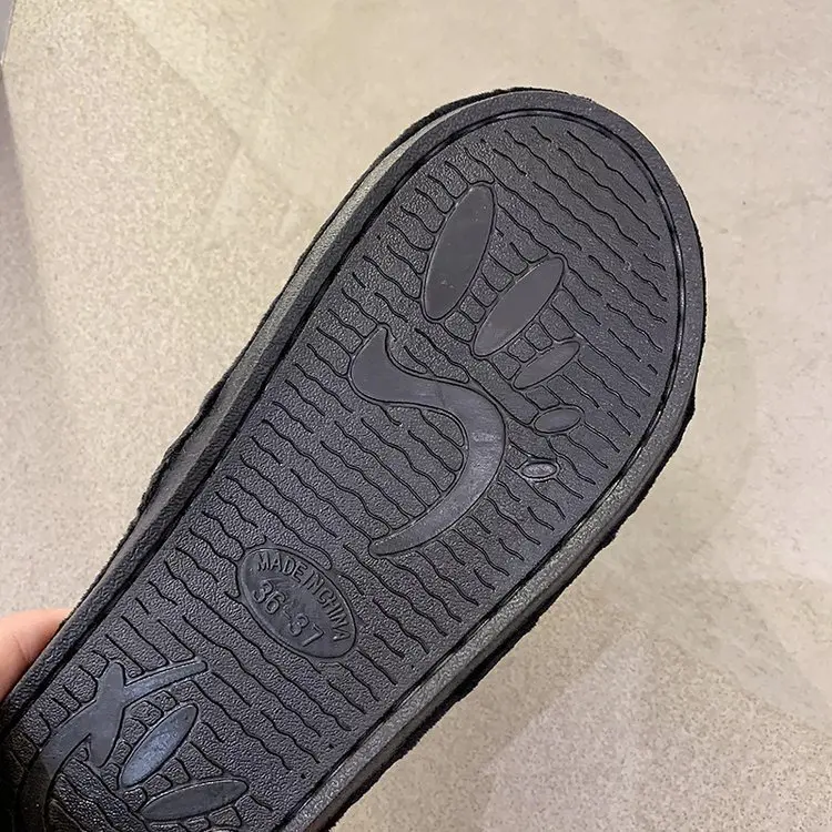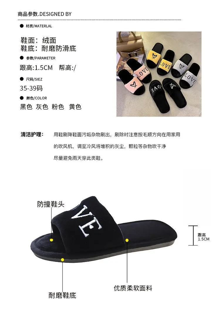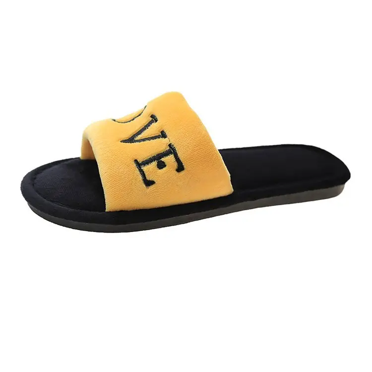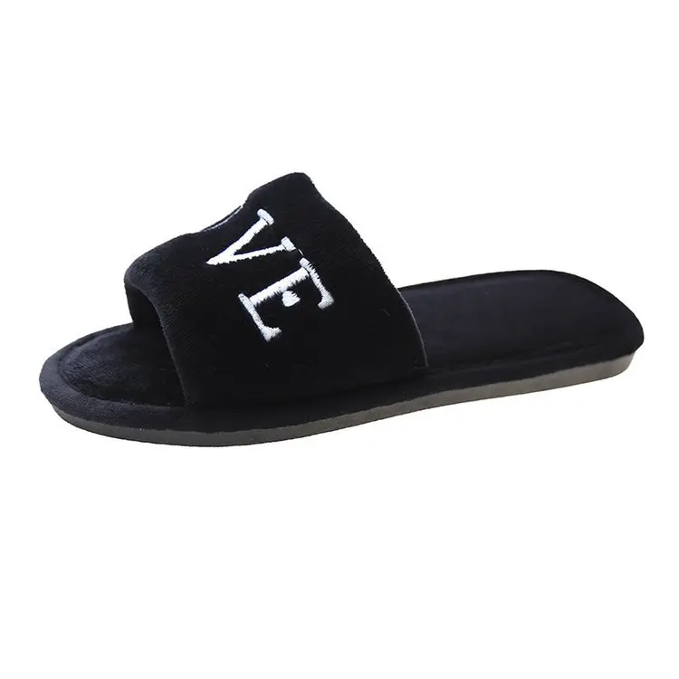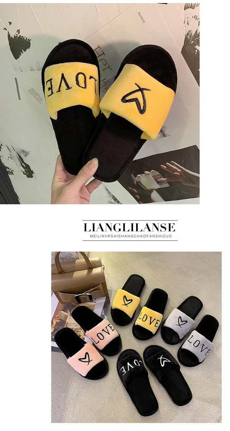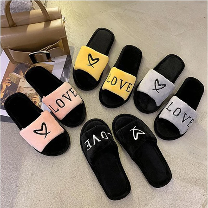 2020 New Arrived Flock Embroider Letters Hairy Slippers Indoor Ladies Shoes