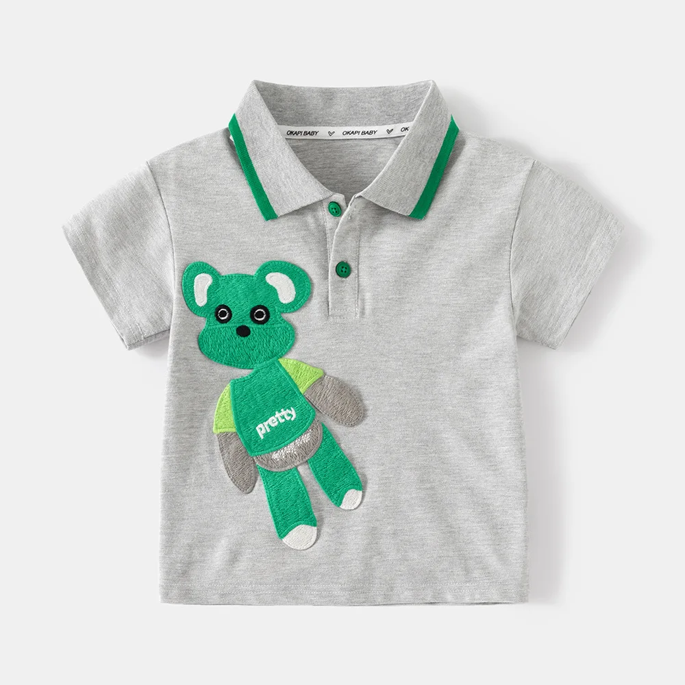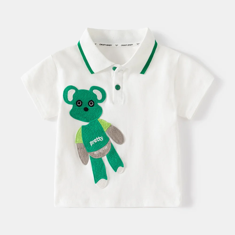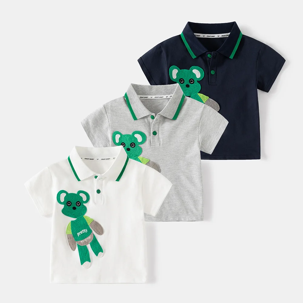 Embroidery Bear Boys Polo T-shirts Cotton Summer Toddler Tees Playtime Cute Kids Clothes