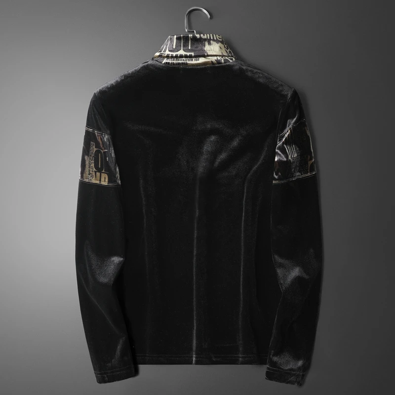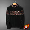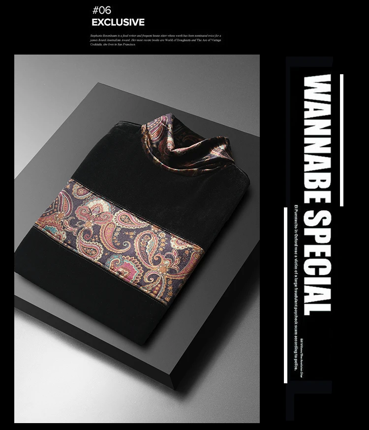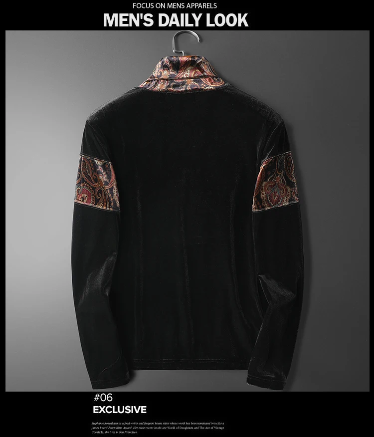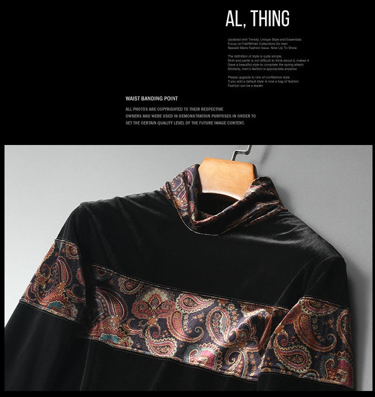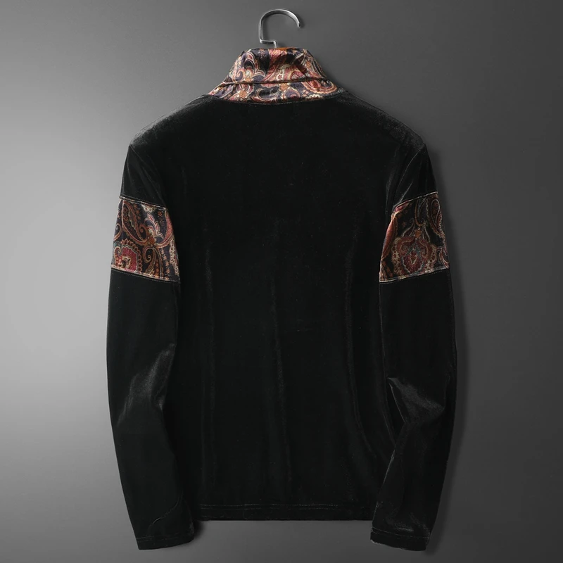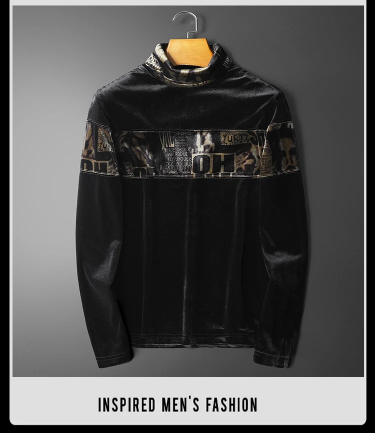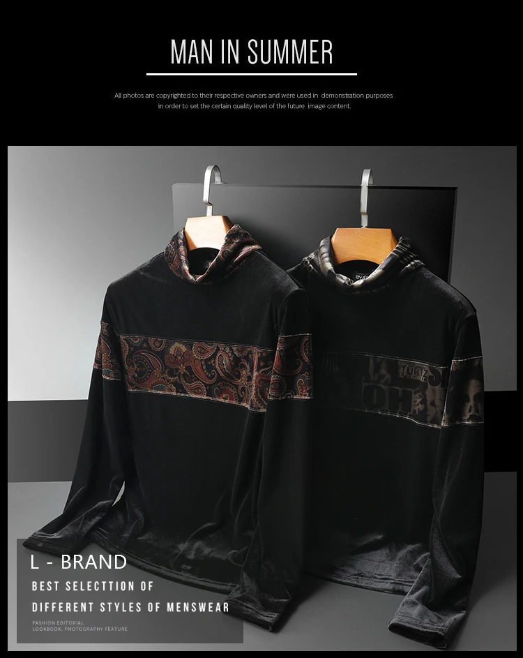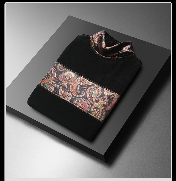 European Style Vintage Print Slim Turtleneck Long Sleeve T-Shirt Winter New Thick Mens Designer Clothes Velvet Quality Camisetas