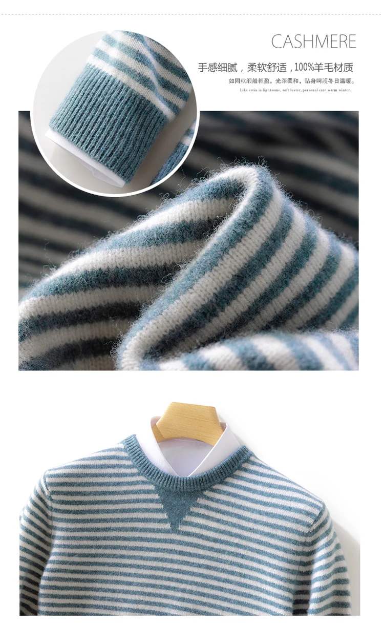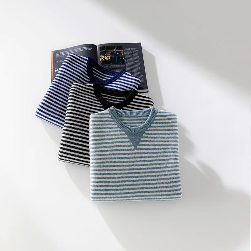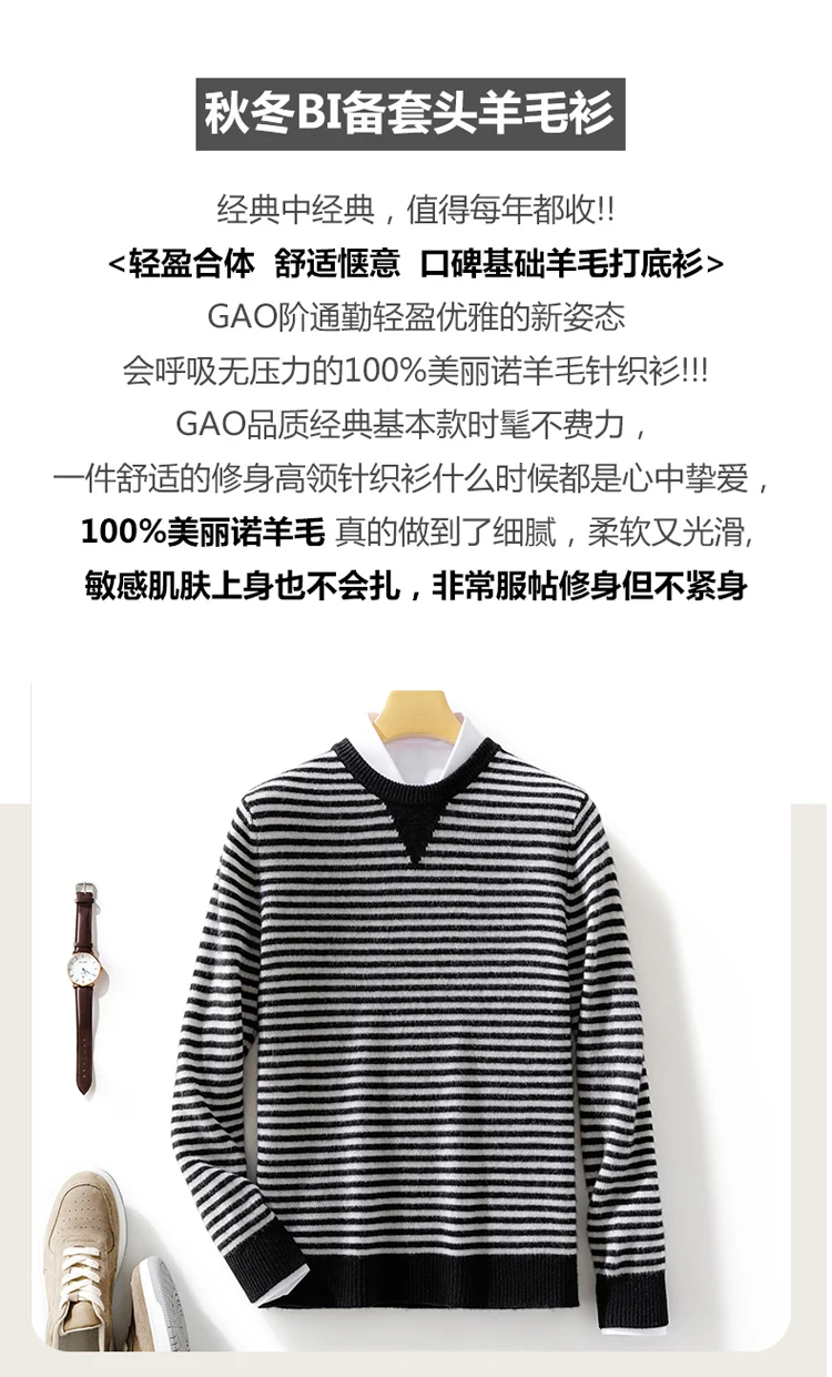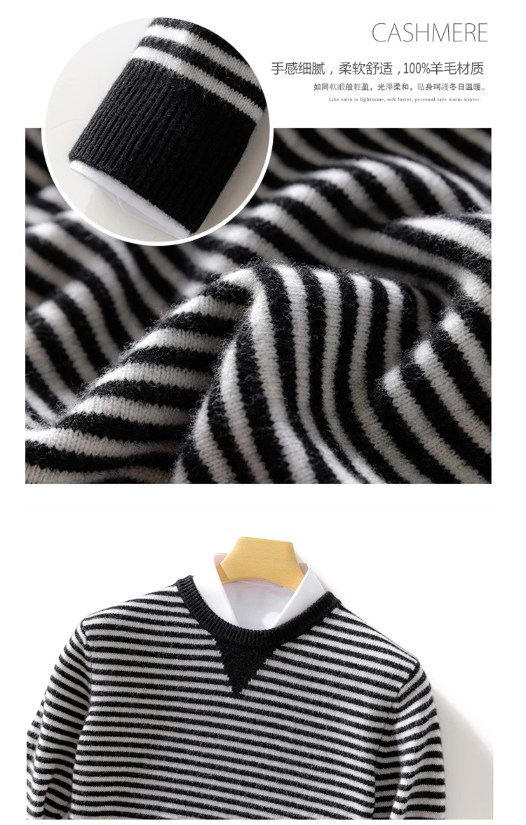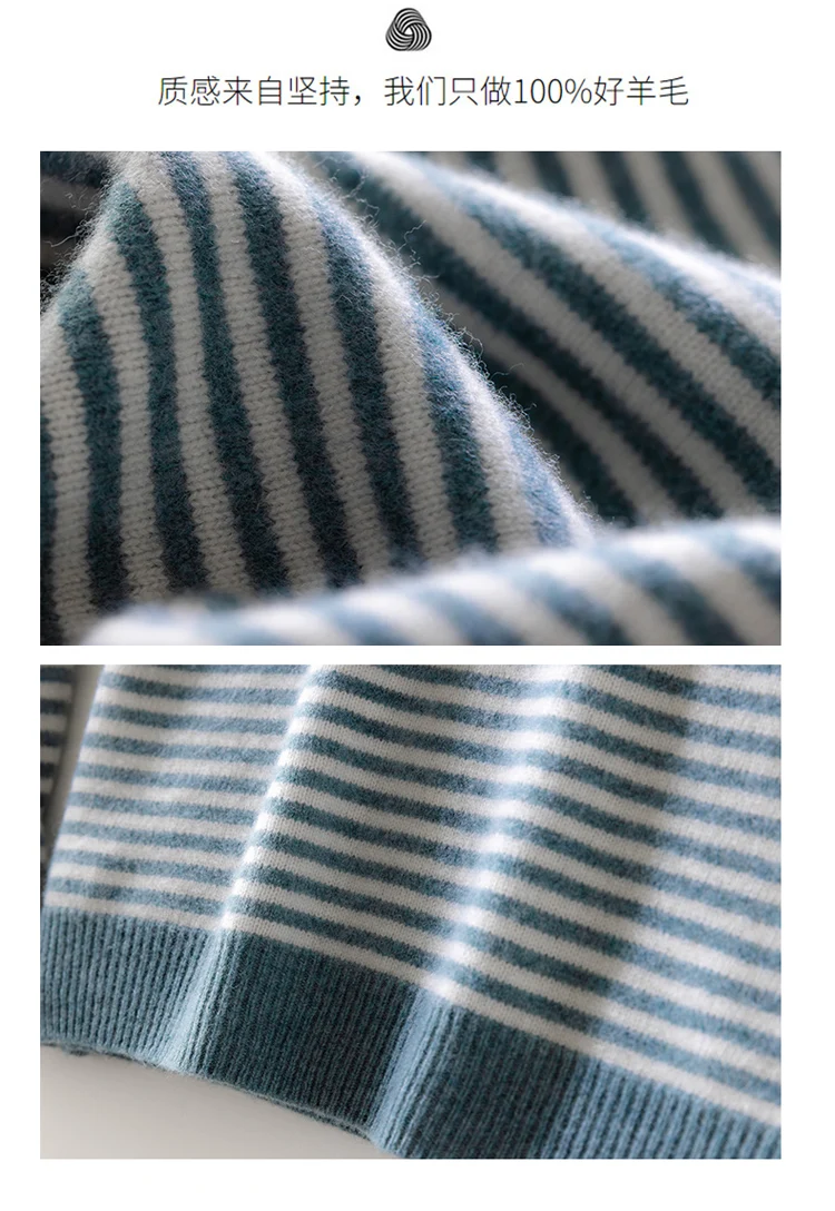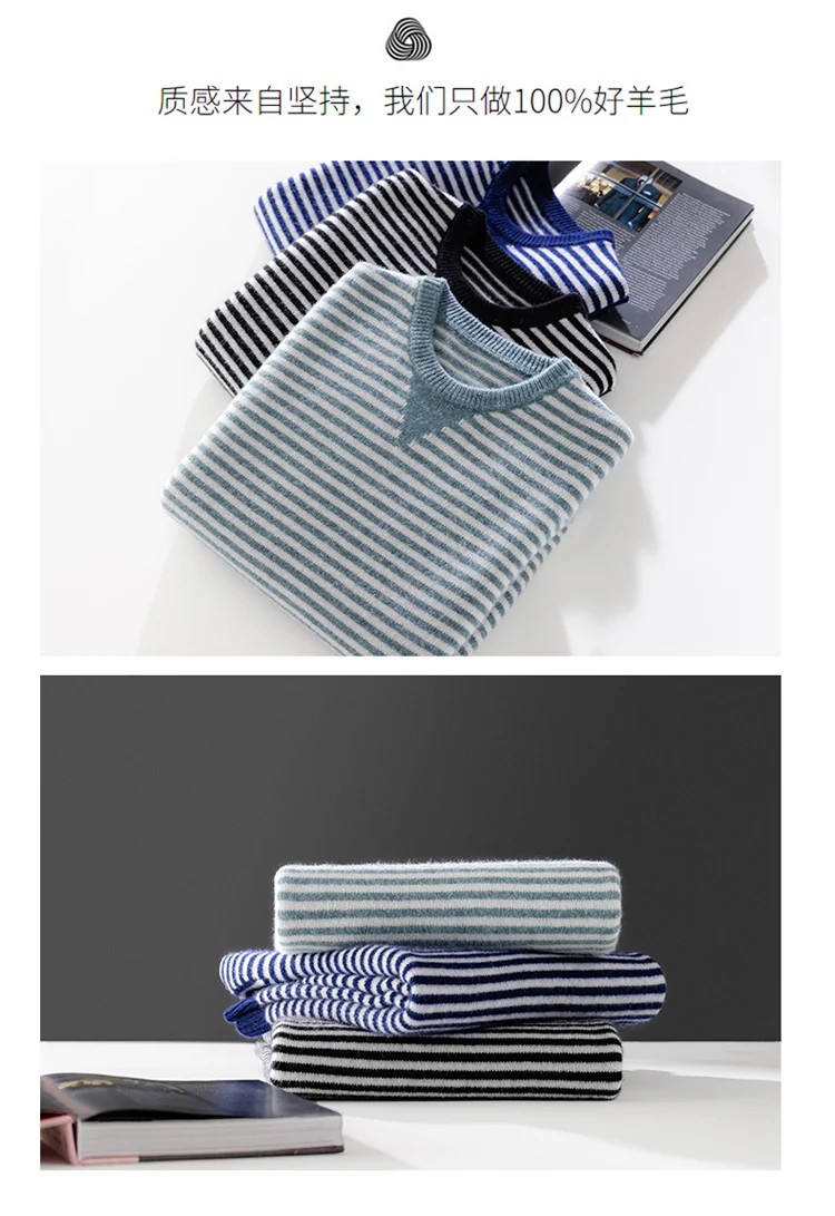 Fall/Winter 2023 New Wool Knitted Bottom Shirt Man Striped Long Sleeve Pullover Loose Sweater