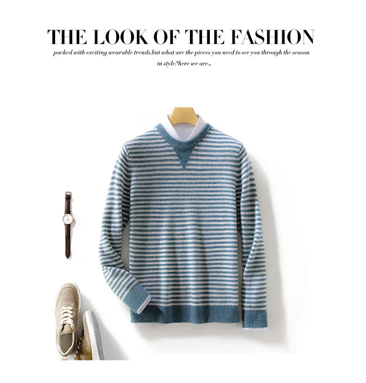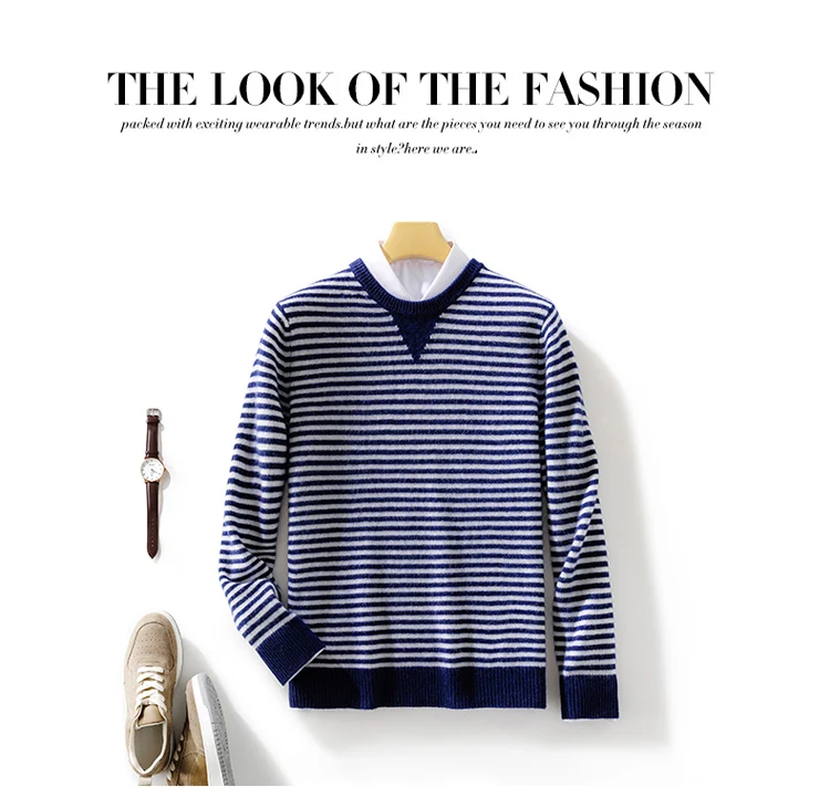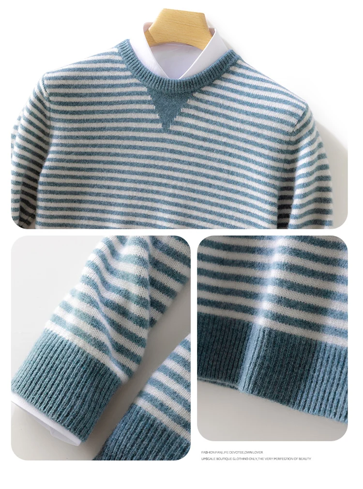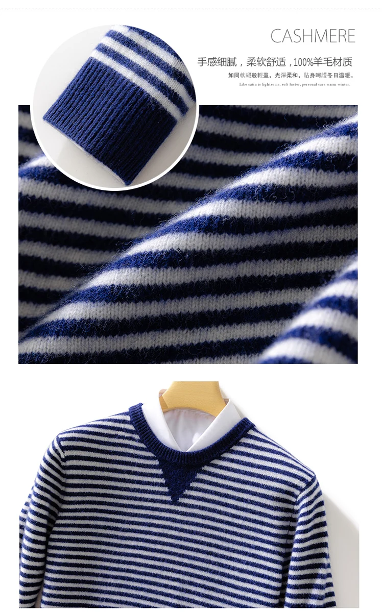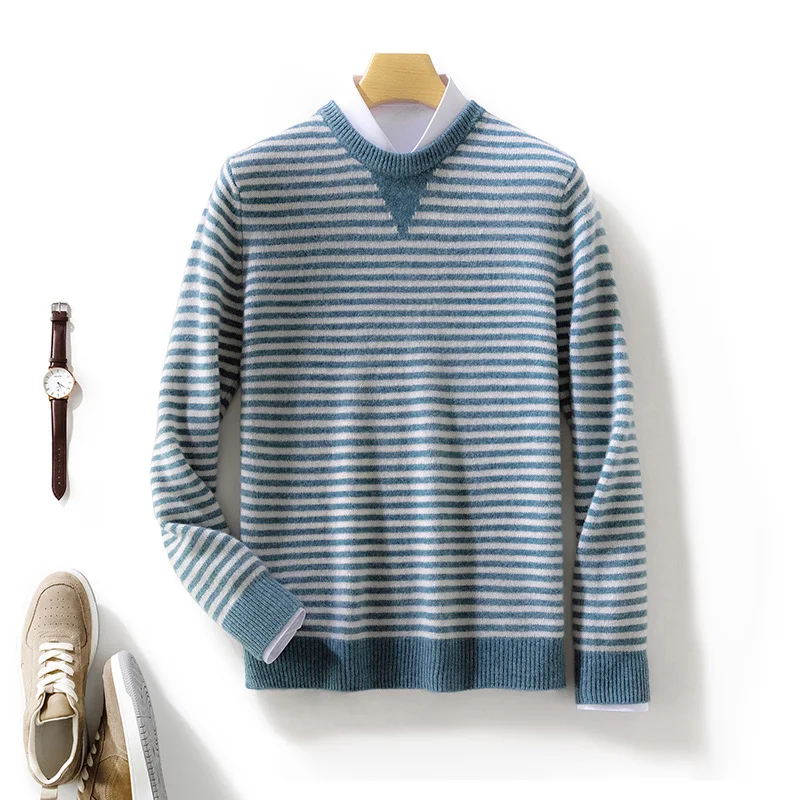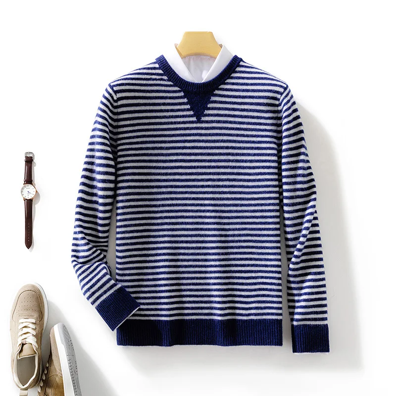 Fall/Winter 2023 New Wool Knitted Bottom Shirt Man Striped Long Sleeve Pullover Loose Sweater