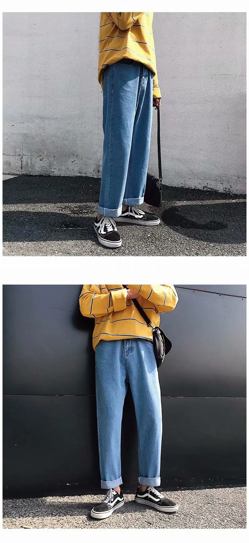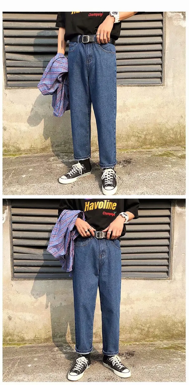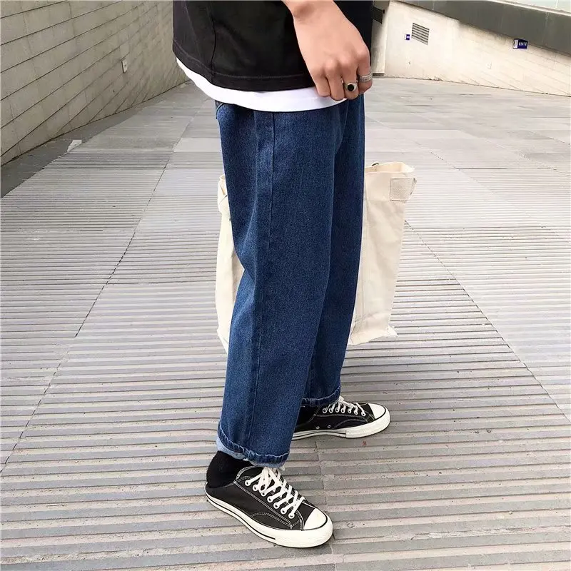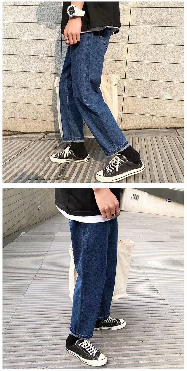 Fashion 2022 Cargo Loose Street Teenagers Students Cropped Jeans Men’s Loose Straight Casual Pants Korean Trendy Wide Leg Pants