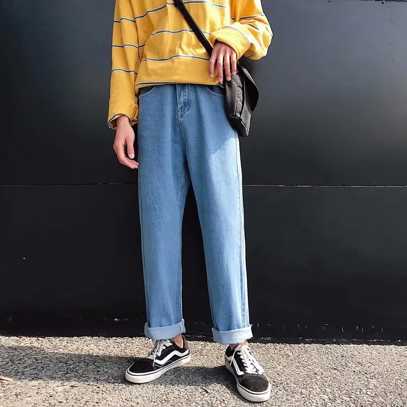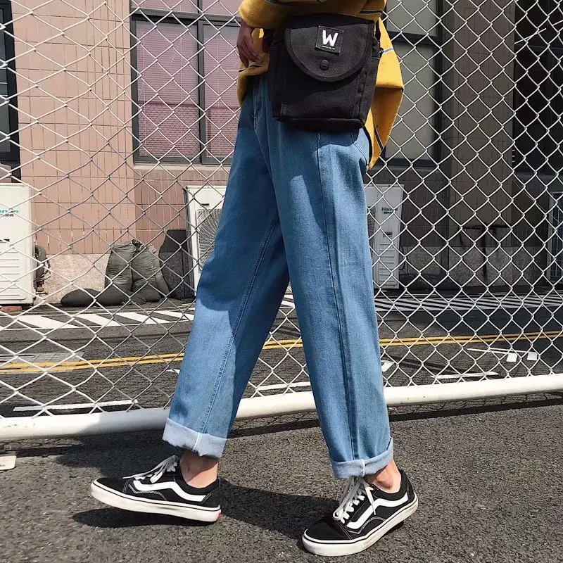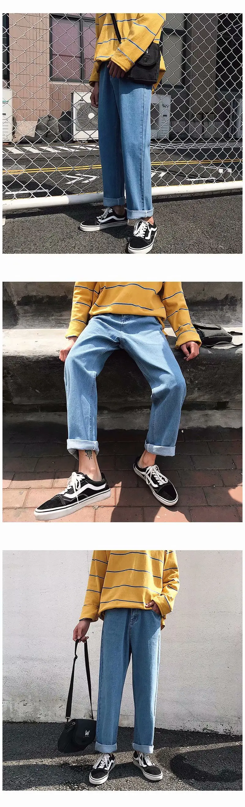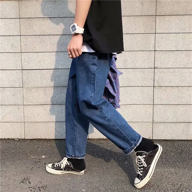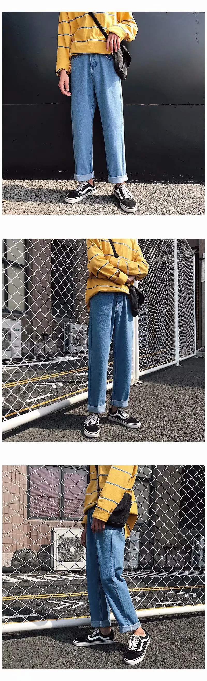Fashion 2022 Cargo Loose Street Teenagers Students Cropped Jeans Men’s Loose Straight Casual Pants Korean Trendy Wide Leg Pants
