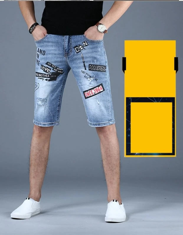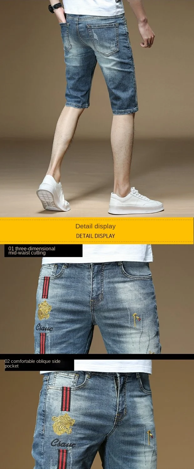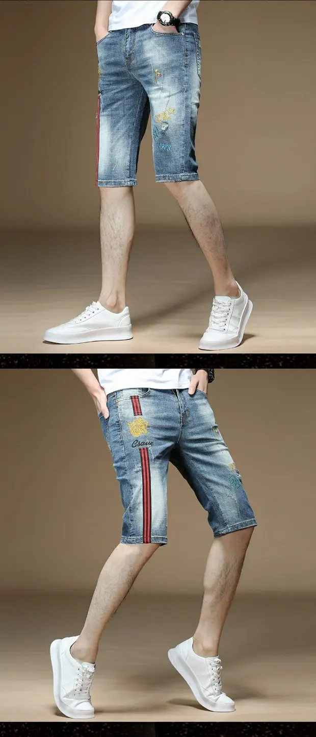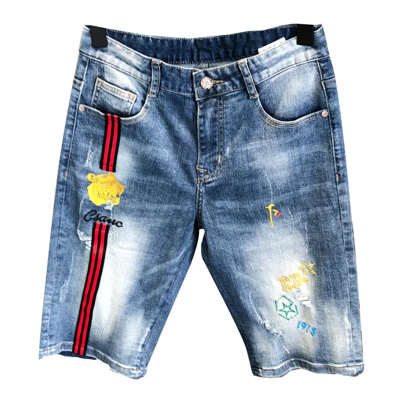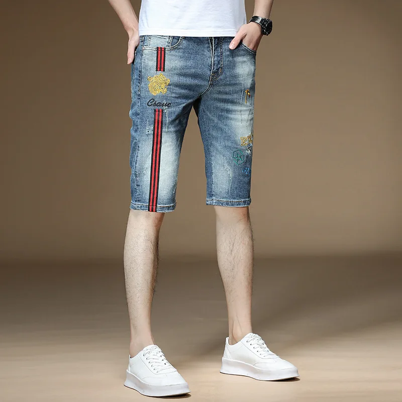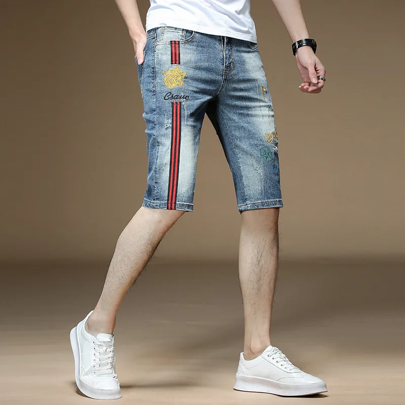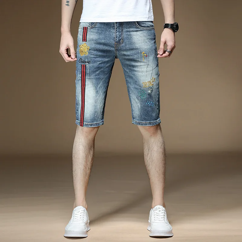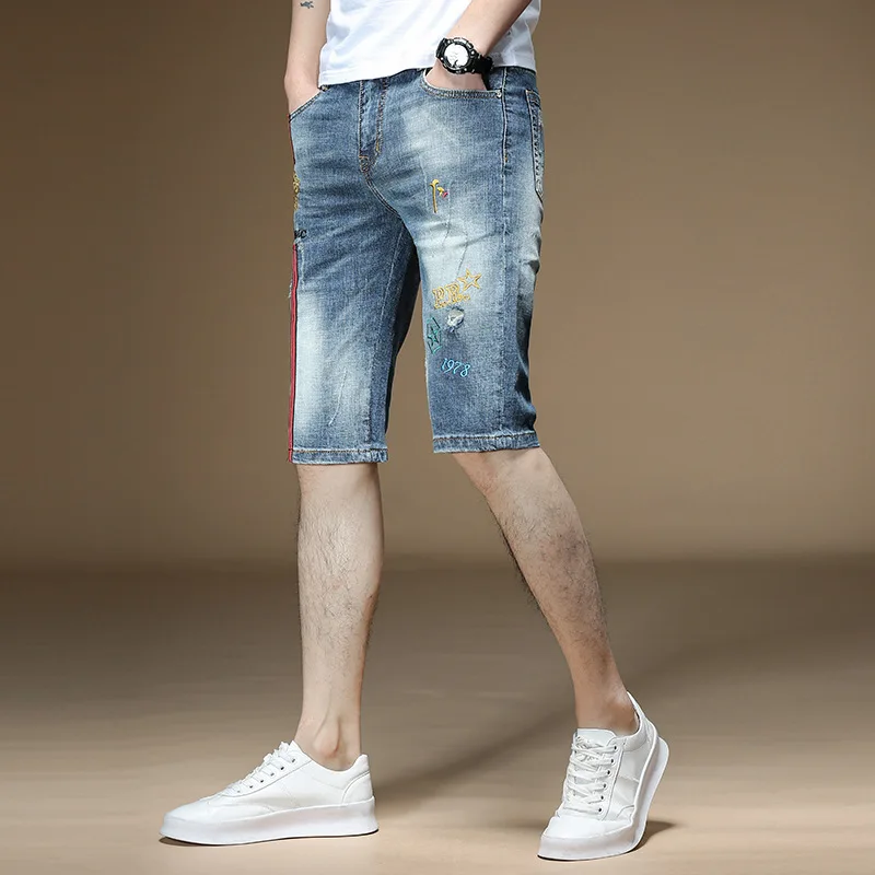 Fashion 2022 Guy Denim Shorts Men’s Summer Thin Brand Embroidery Hole Teenagers Cowboy Short Pants Streetwear Jeans for Men