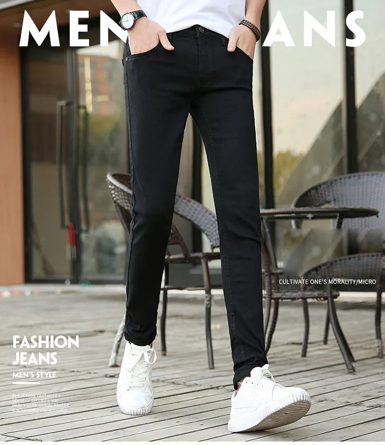 Fashion 2022 Men’s Denim Jeans Slim Feet Pants Men’s Youth Stretch Korean Pencil Pants Men’s Spring And Autumn Black Work Pants