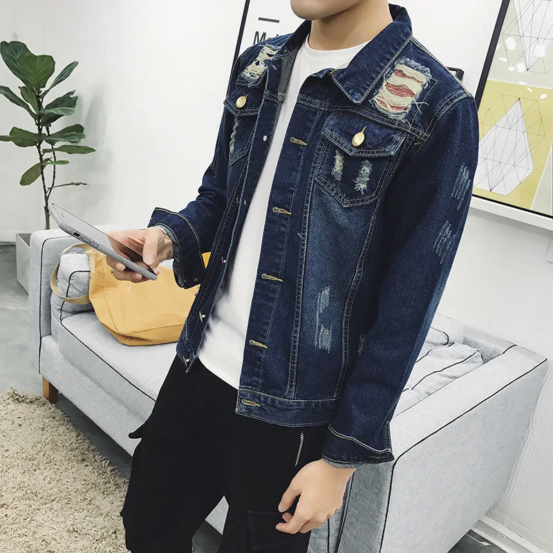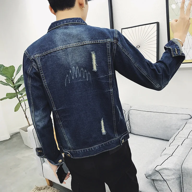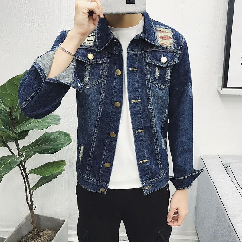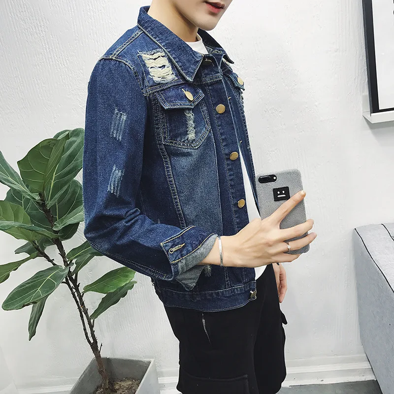 Fashion 2022 Spring Autumn Casual Denim Single Breasted Cardigan Thicken Keep Warm Man Ripped Hole Loose Jacket Men Coat