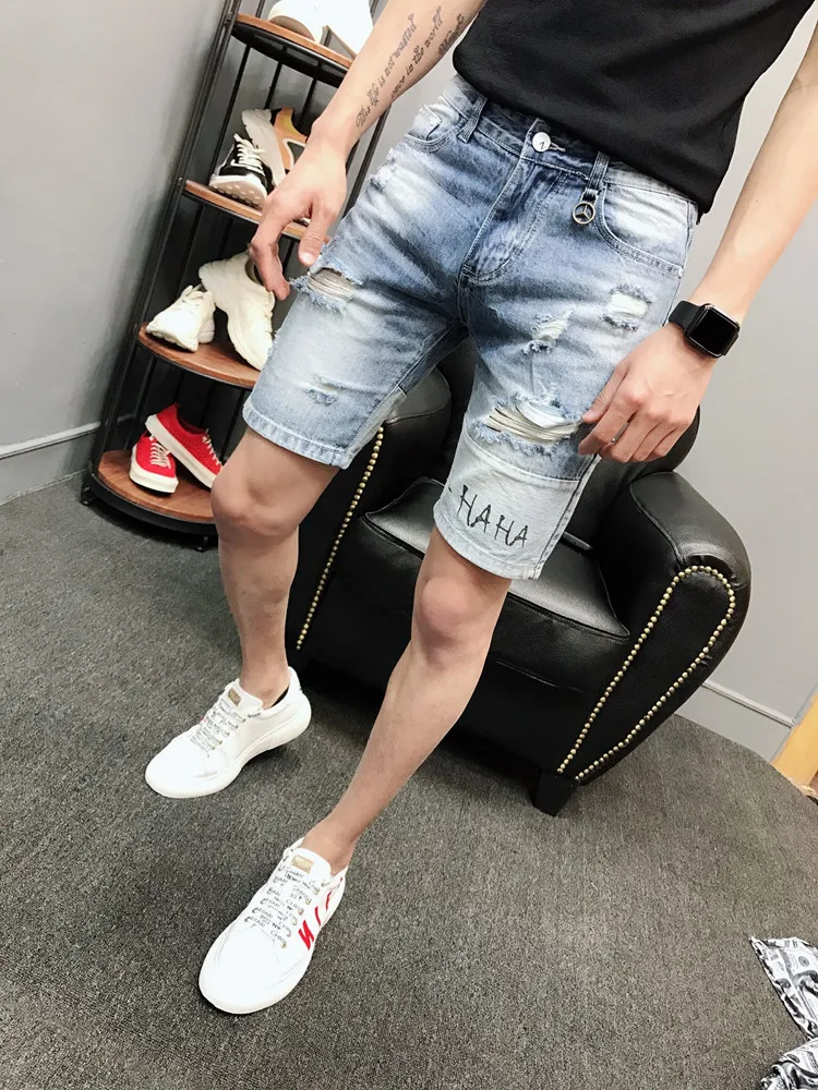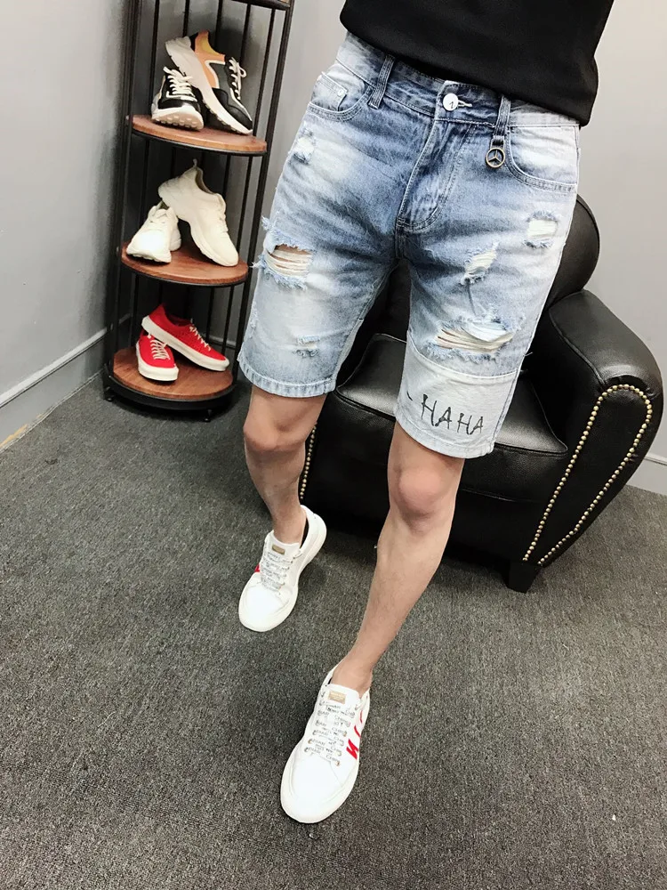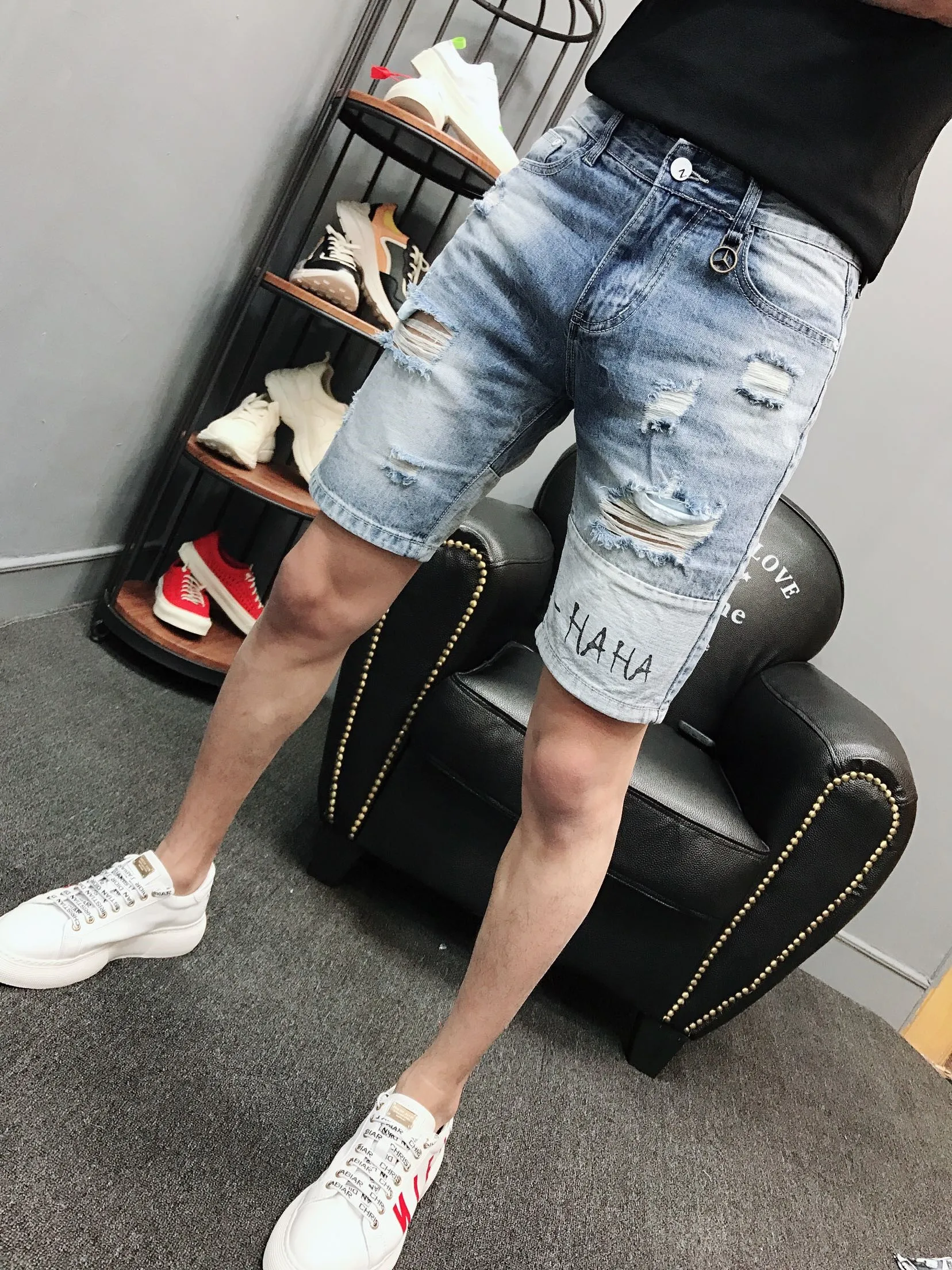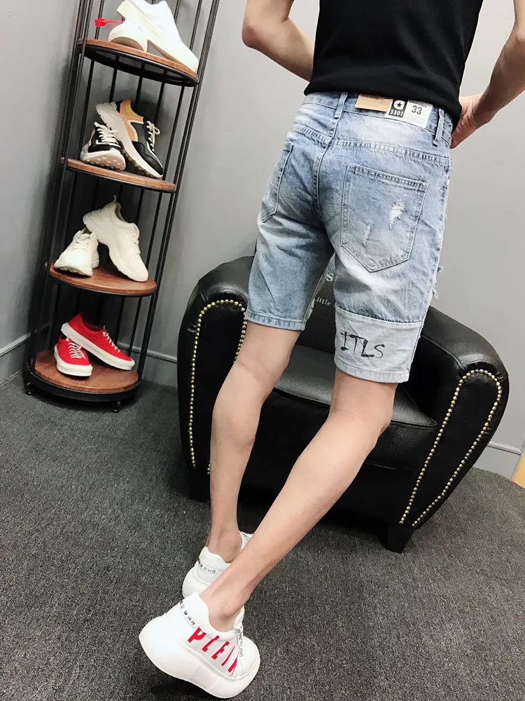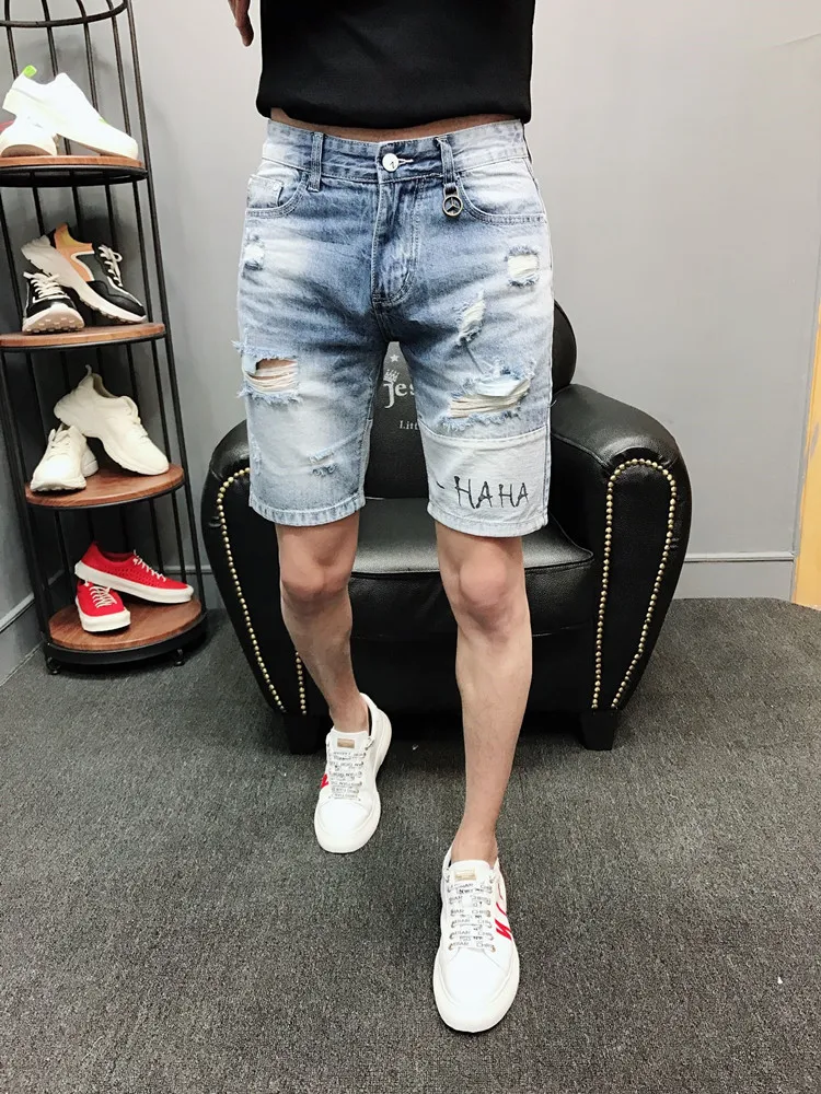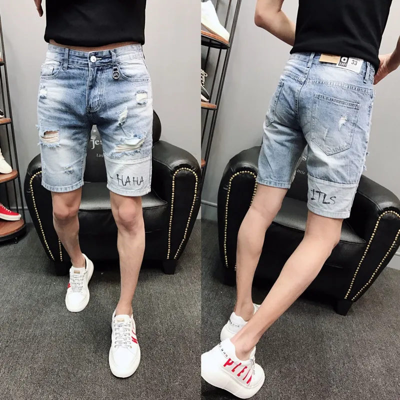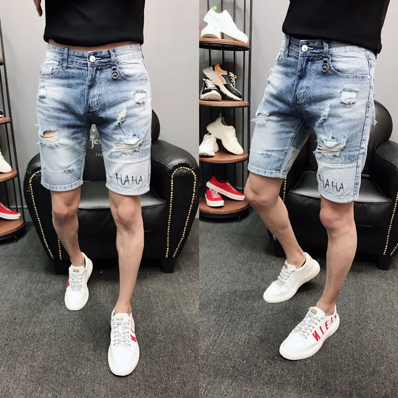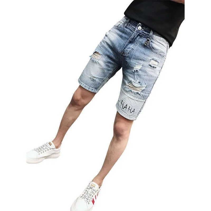 Fashion 2022 Teenagers Casual Denim Shorts Men’s Summer Thin Ripped Short Trousers Man Shorts Ripped Trousers Blue Short Pants