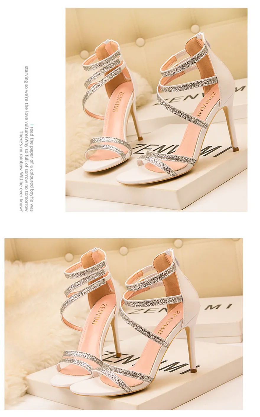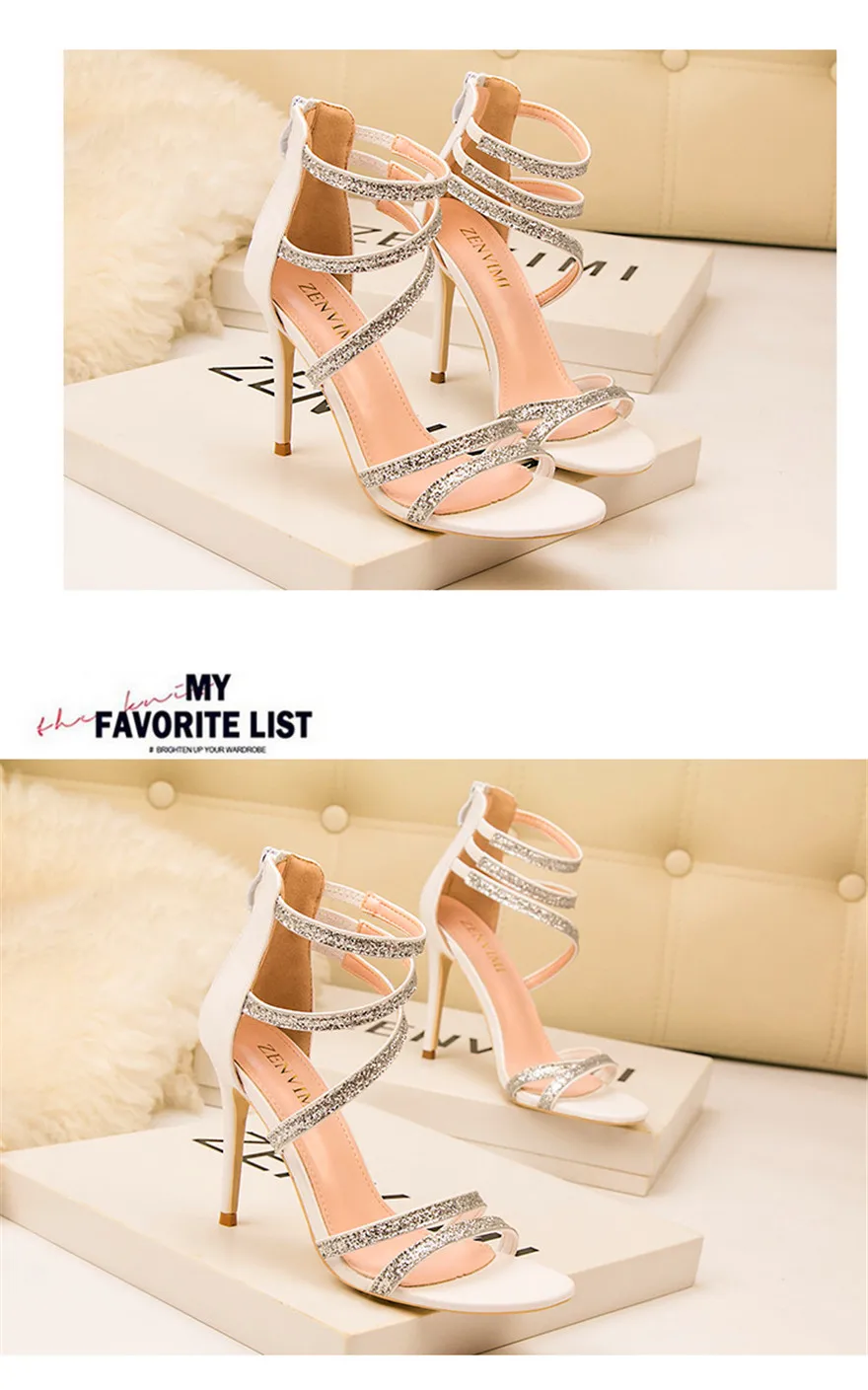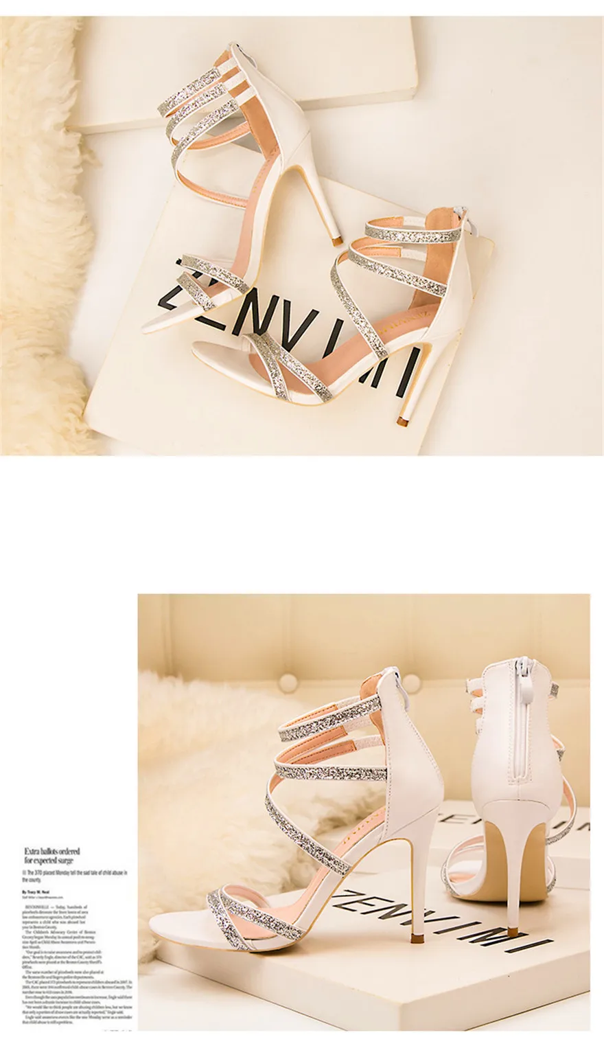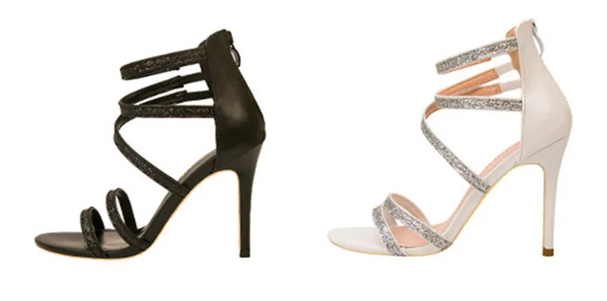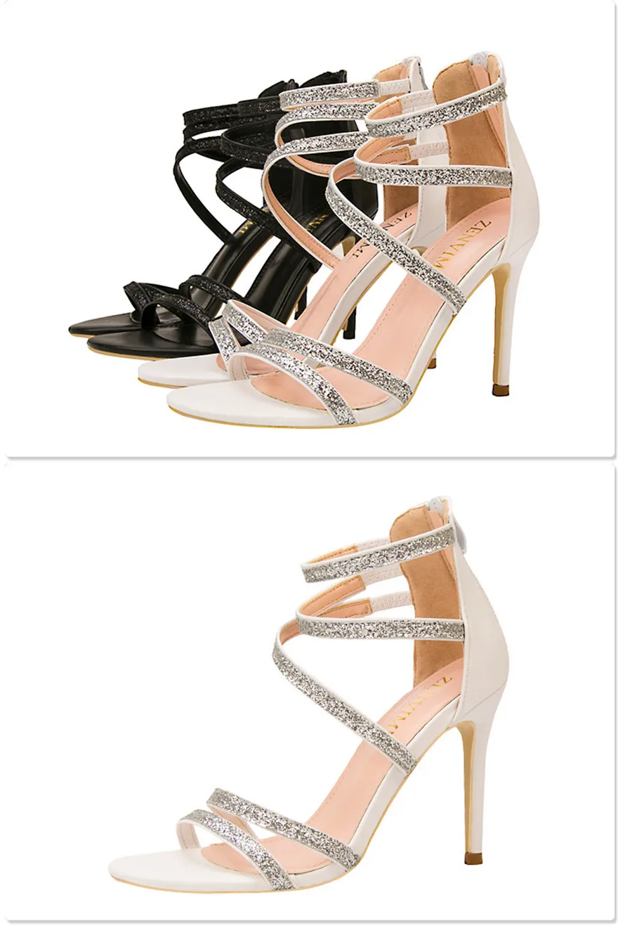 Bling High Heels Summer Black White Open Toe Zip Cover Heel Sandals