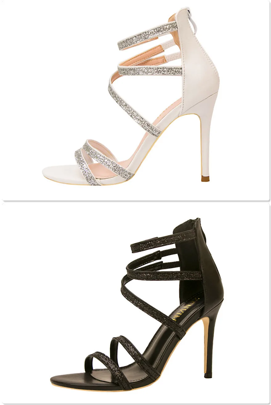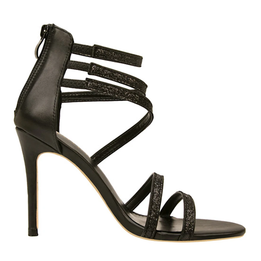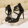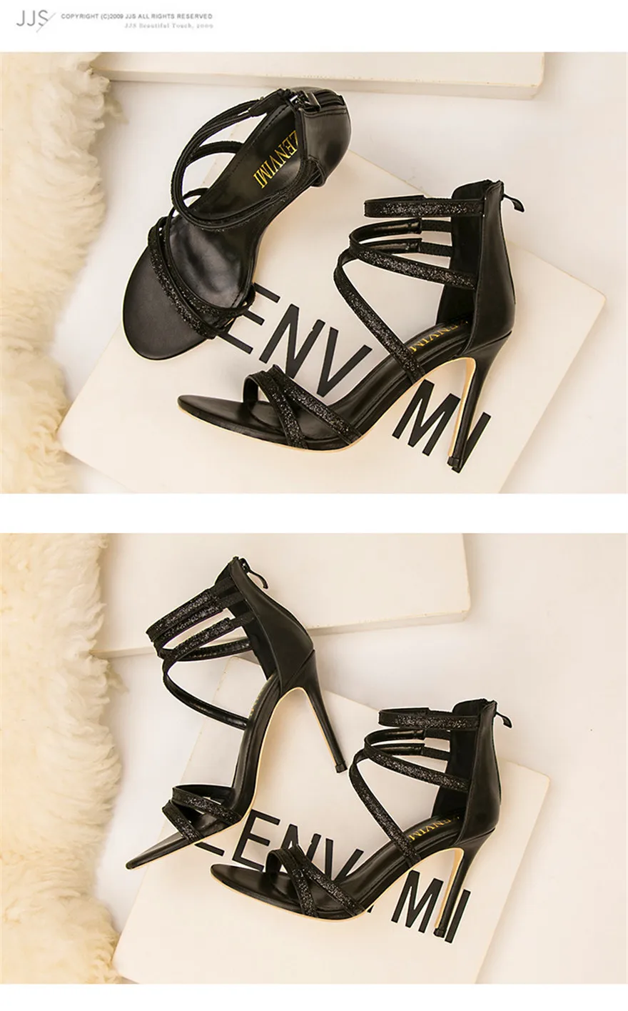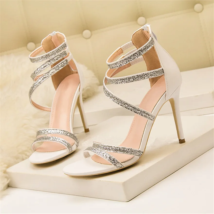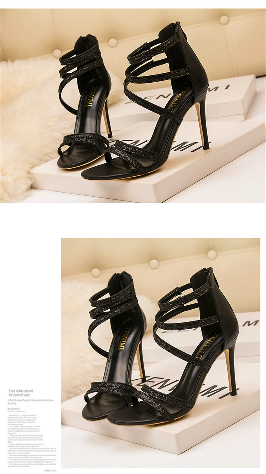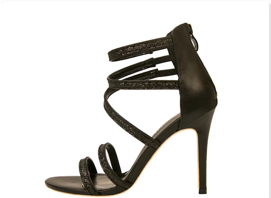 Bling High Heels Summer Black White Open Toe Zip Cover Heel Sandals