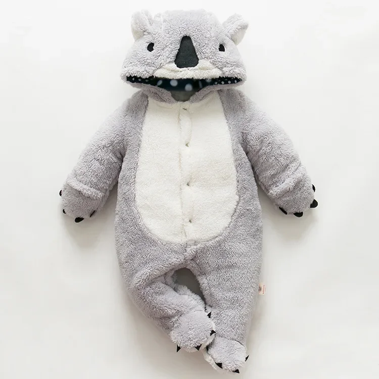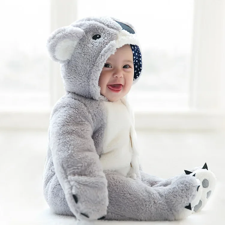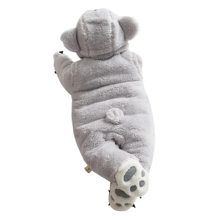 Fashion Baby Costumes Long Sleeve Gray Cartoon Rompers Hooded Cotton Soft Newborns Clothes Thick Winter Jumpsuits Bebe