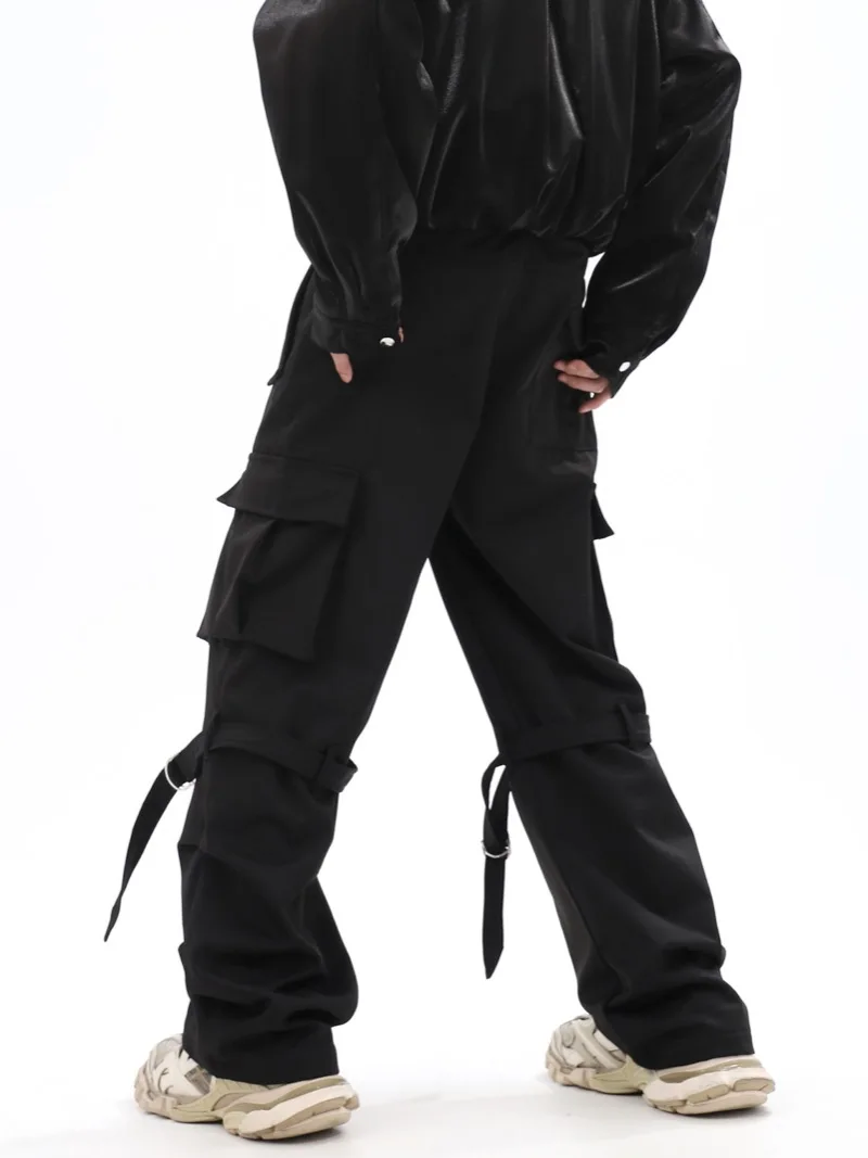 Fashion Cargo Pants Adjustable Belts Waist with Side Pockets Joggers Streetwear Pant Unisex Casual Loose Straight Baggy Trousers
