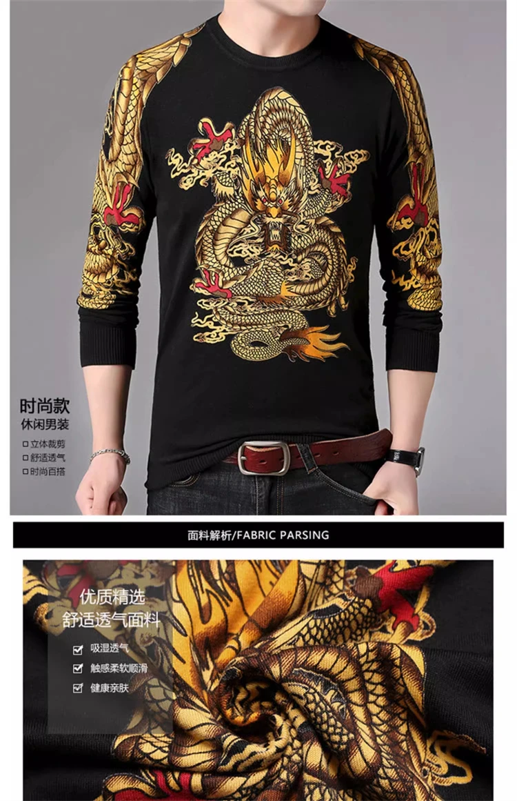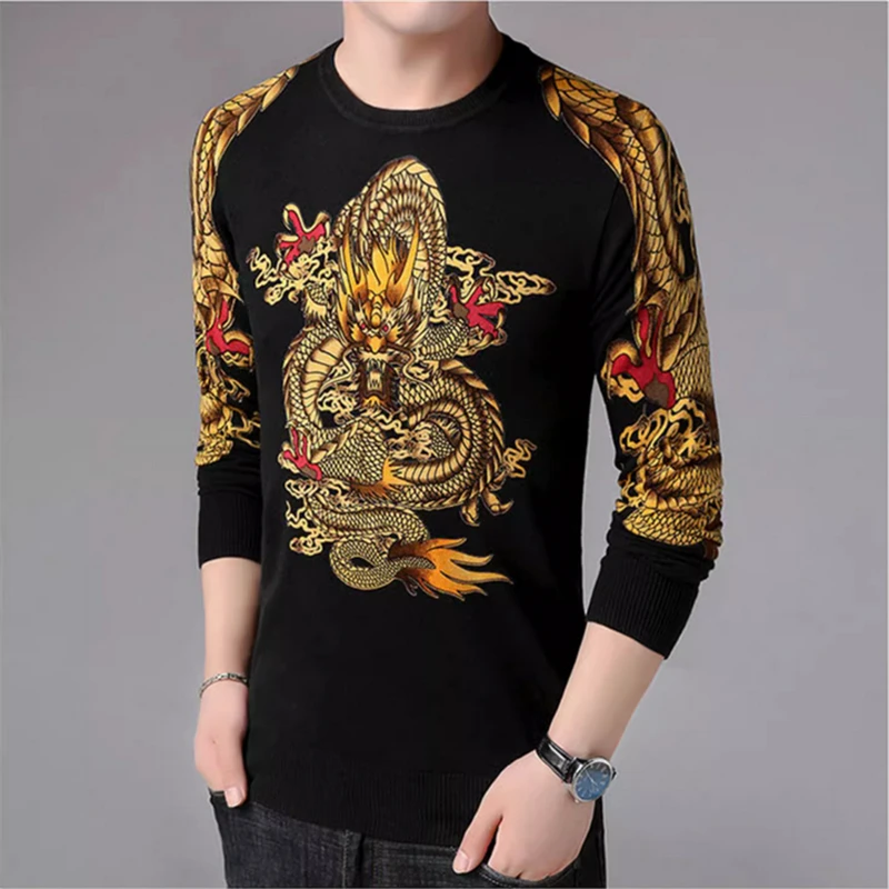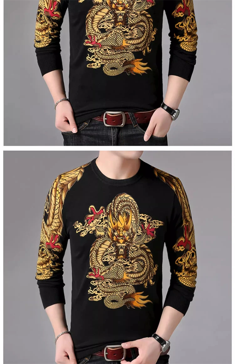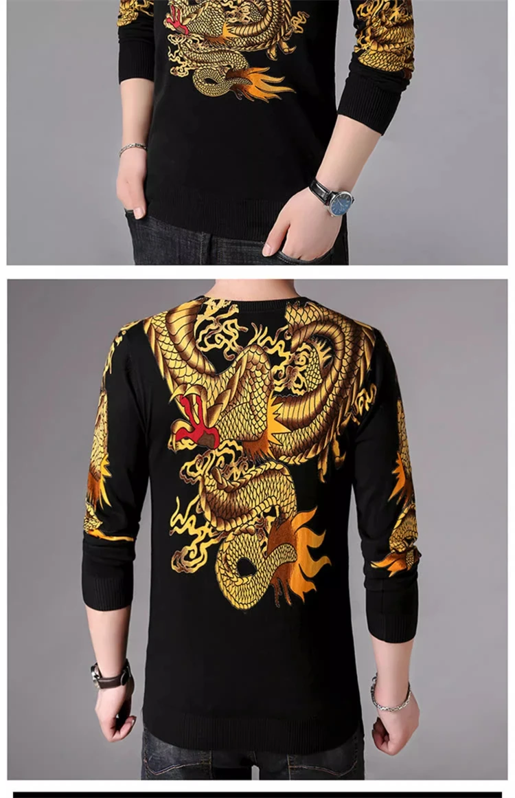 Fashion Chinese Style Knitted Sweaters For Men Dragon 3D Print Autumn Quality Soft Comfortable Casual Pullovers Pull Homme M-3XL
