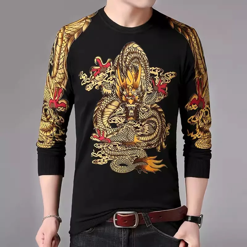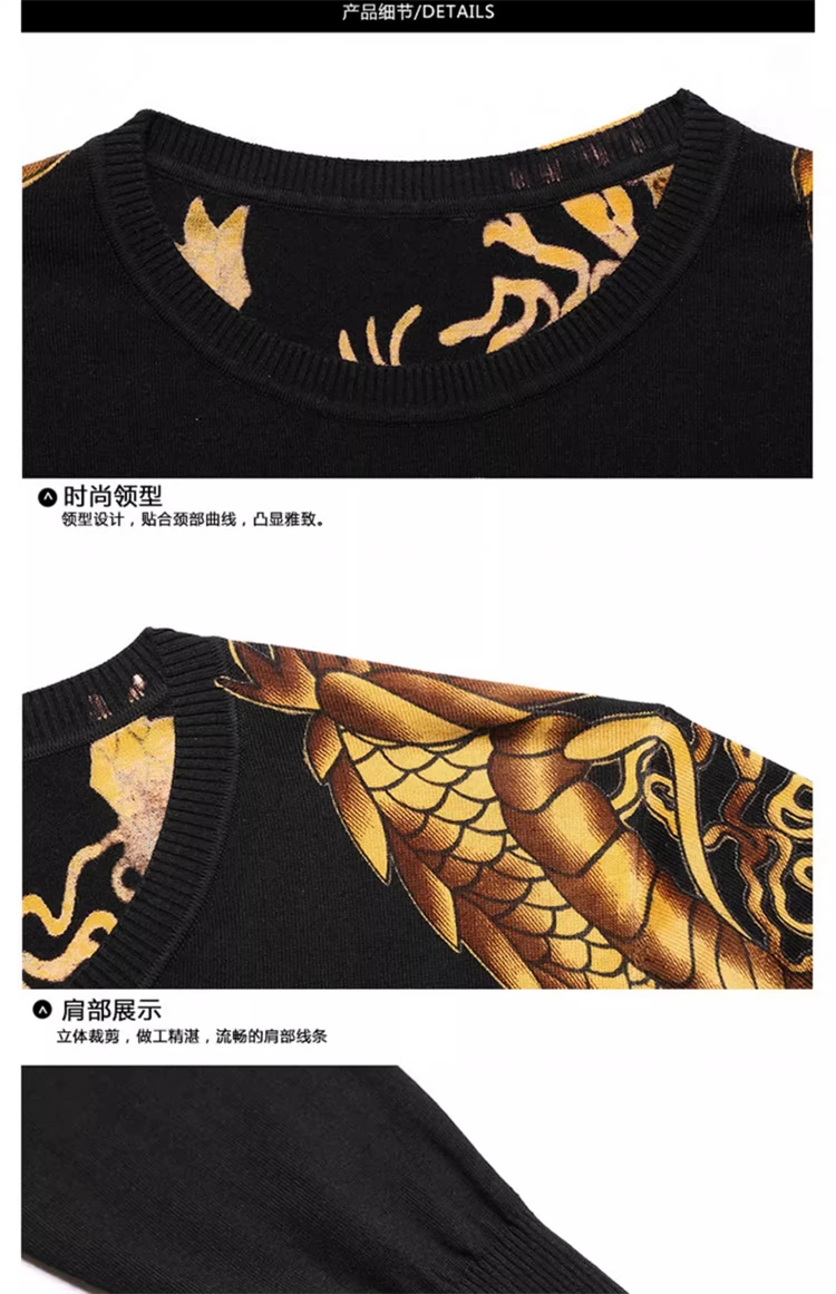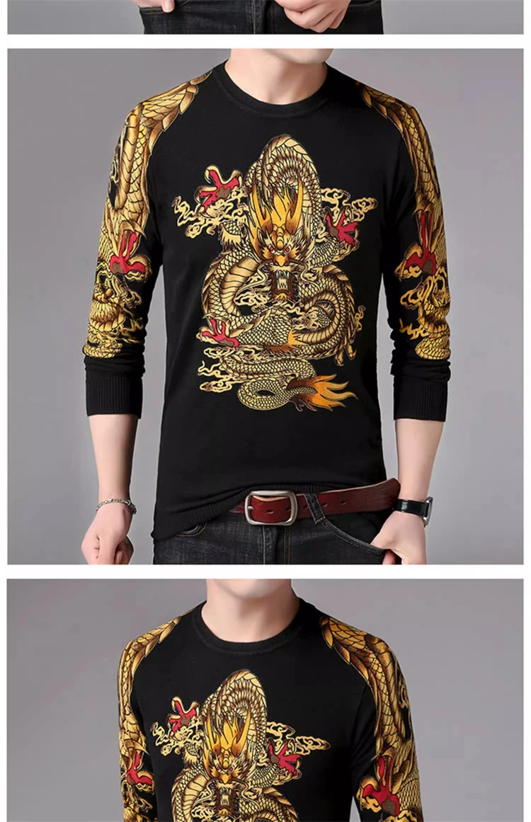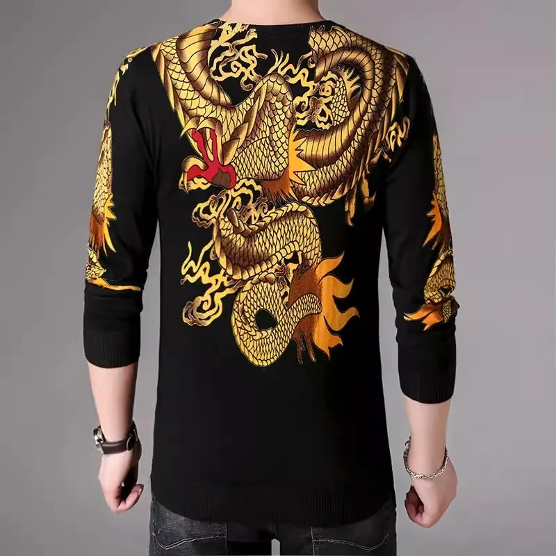 Fashion Chinese Style Knitted Sweaters For Men Dragon 3D Print Autumn Quality Soft Comfortable Casual Pullovers Pull Homme M-3XL