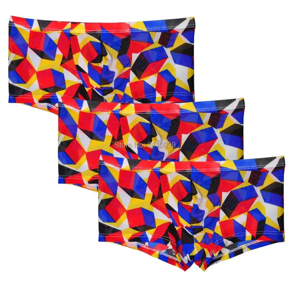 Fashion Cube Print Pattern Sexy Bikini Mens Underwear Boxers Smooth Elastic Nylon Male Underpants Underwear Men Boxer Shorts TS255