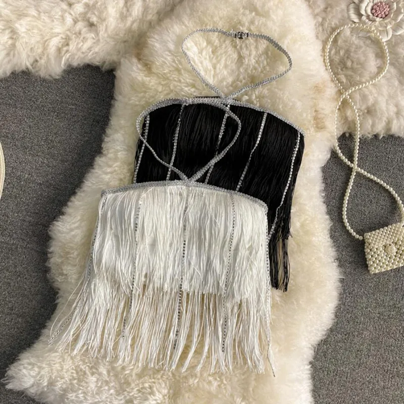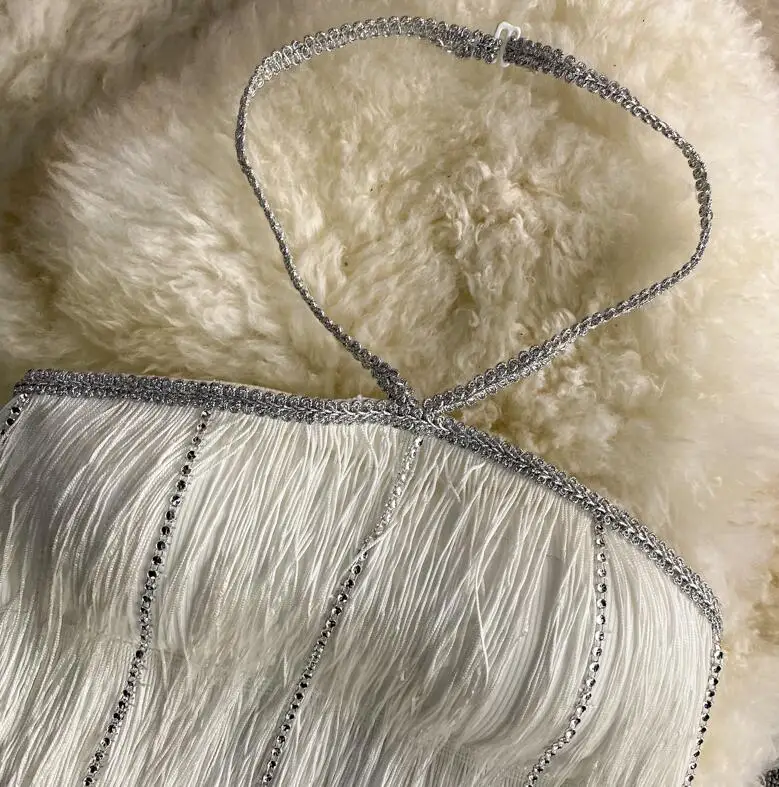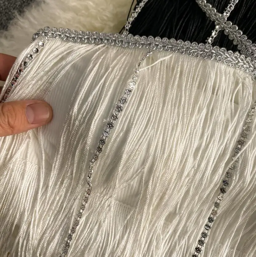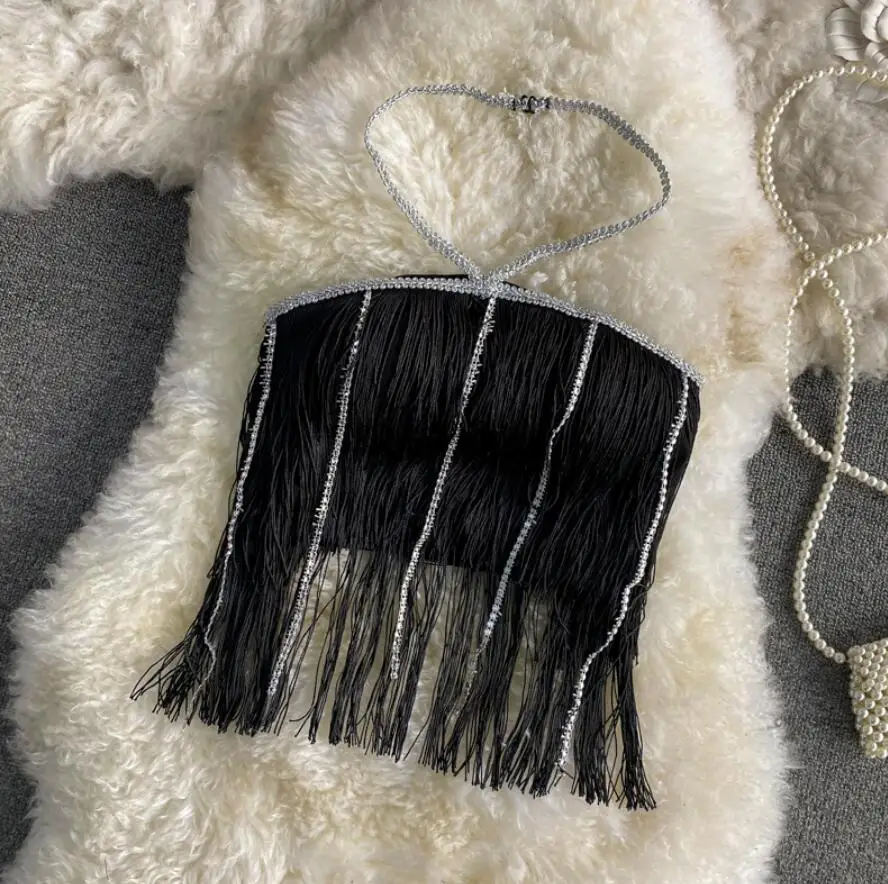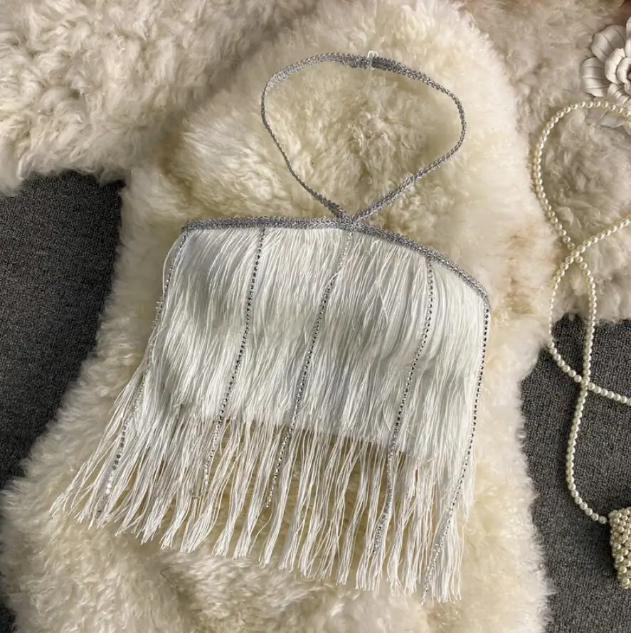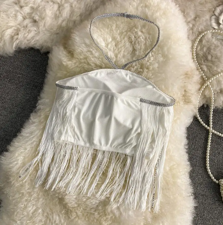 Fashion Diamond Patchwork Camisole Women’s Party Club Sexy Long Tassel Tank Camis Mujer Street Ribbed Crop Top q343