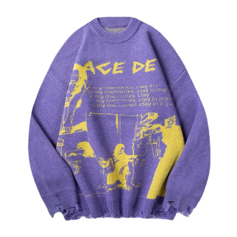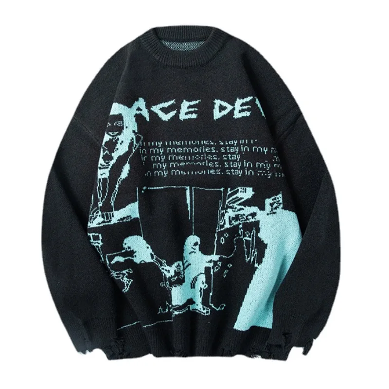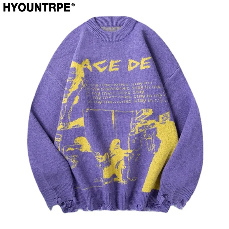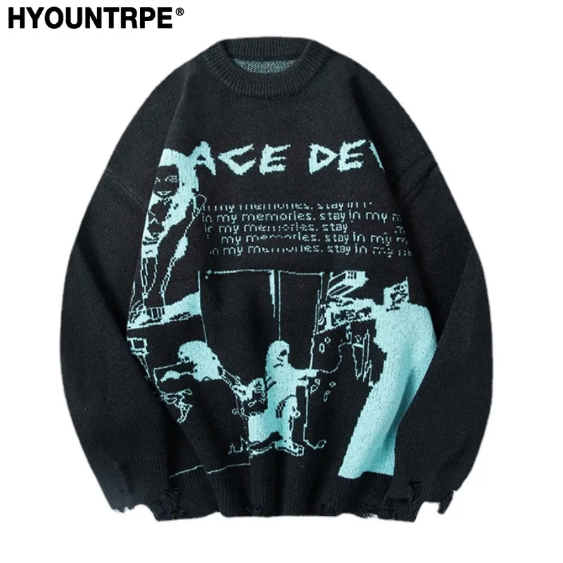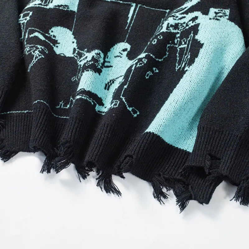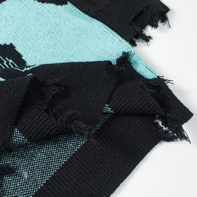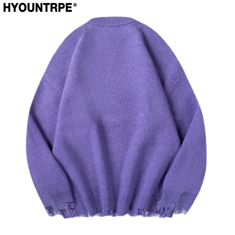 Fashion Harajuku Knitted Loose Sweater Mens Hip Hop Ripped Bottom Pullovers Streetwear Unisex Casual Sweaters Jumpers Knitwear