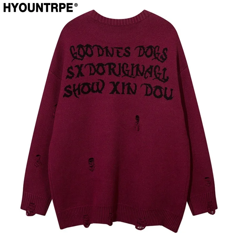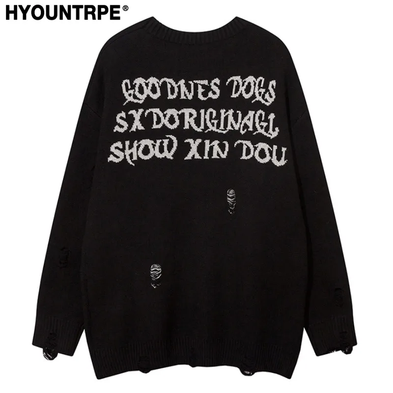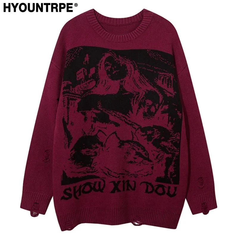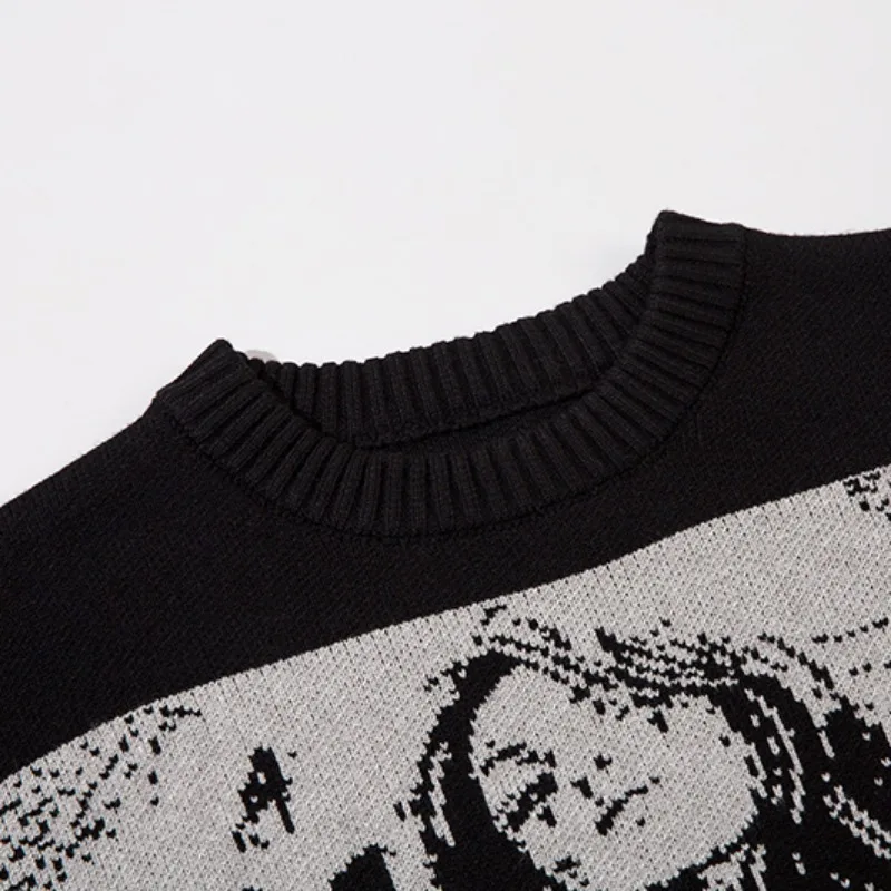 Fashion Hip Hop Knitted Sweater Men Autumn Winter O-neck Anime Pattern Pullover Streetwear Casual Loose Sweaters Jumper Knitwear