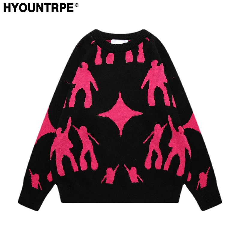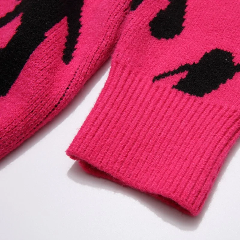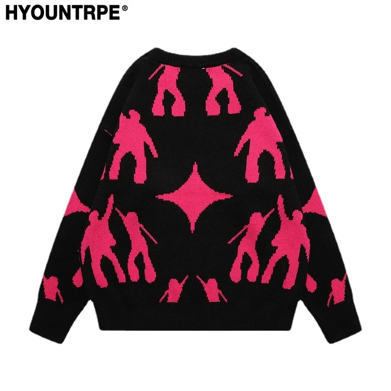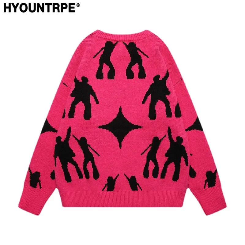 Fashion Knitted Sweater Unisex Harajuku Anime Pattern Sweaters Casual Pink Color Pullover Streetwear Sweaters Jumpers Knitwear
