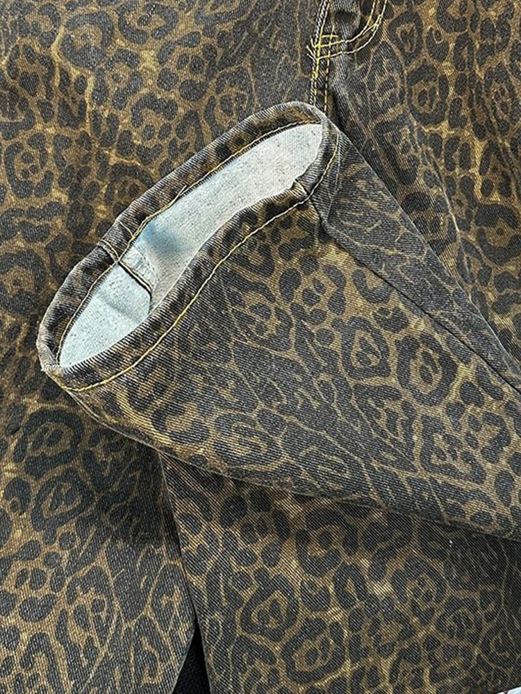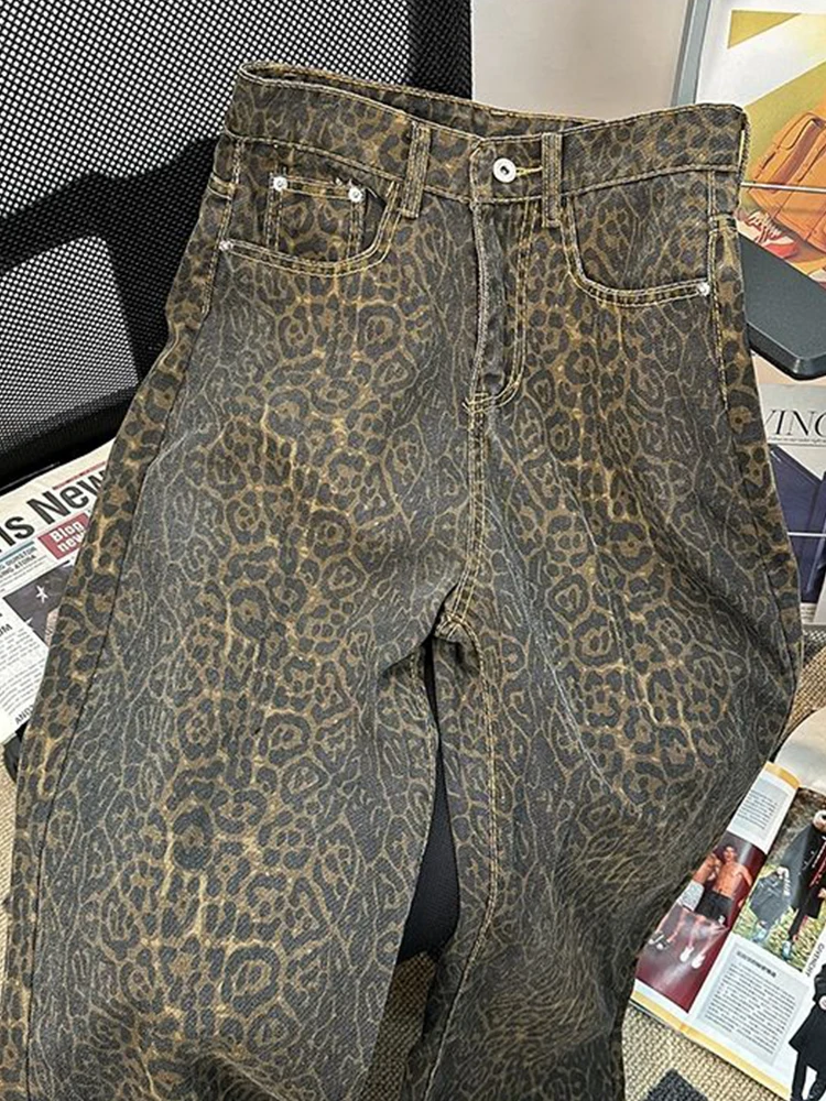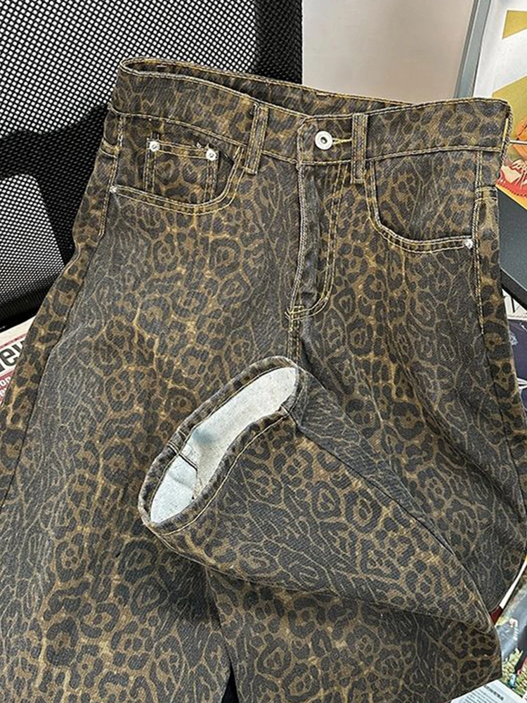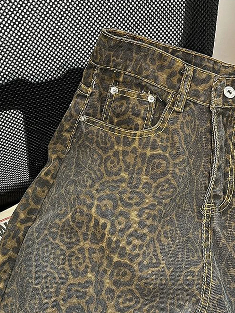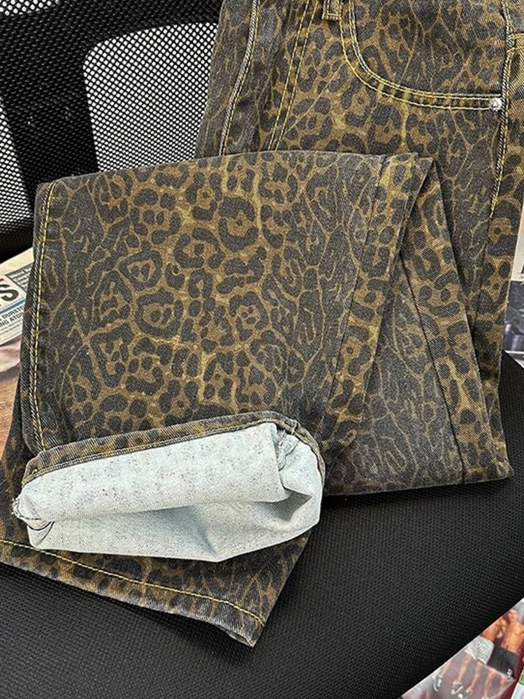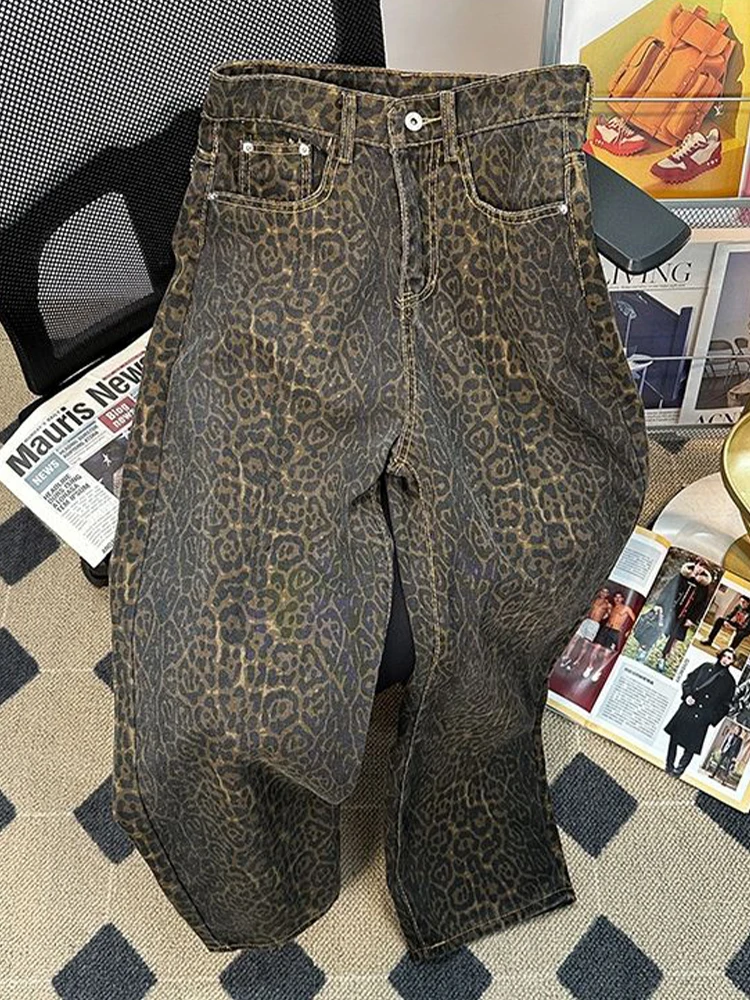 Fashion Leopard Print Jeans Women High Waisted Vintage Wide Leg Denim Trousers 2024 New Streetwear Retro Casual Y2k Baggy Jeans