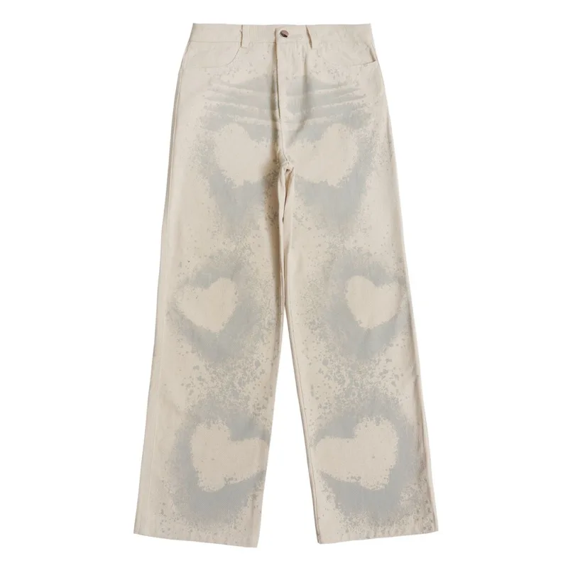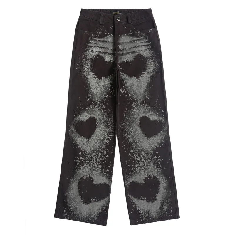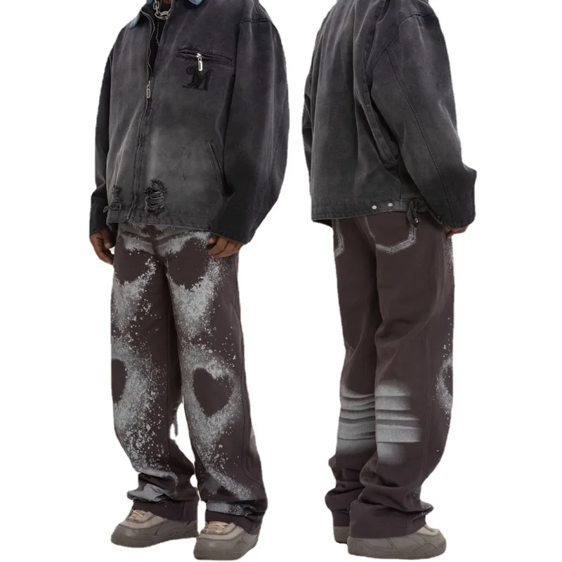 Fashion Loose Streetwear Denim Pants Unisex Casual Graffiti Print Wide Legs Jean Pants Hip Hop Trousers Joggers Mens Baggy Jeans