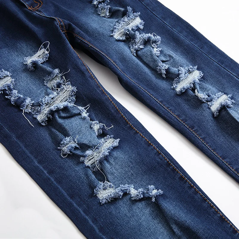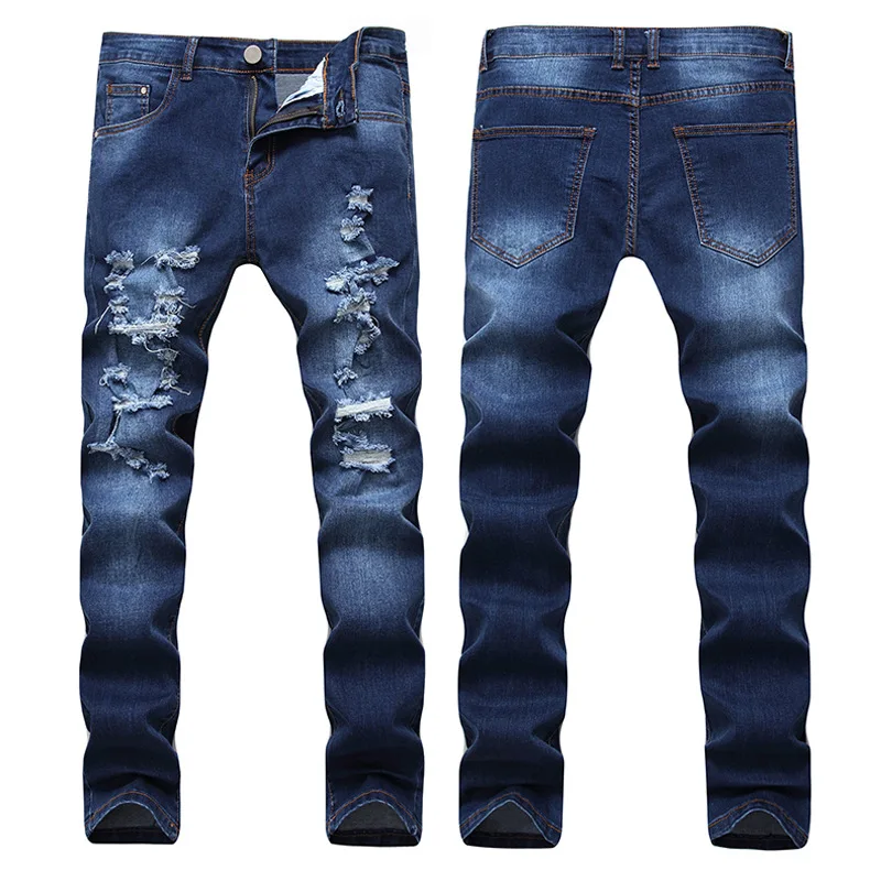Fashion Men’s Jeans Broken Hole Pants Thin Torn Men’s Straight Loose Vintage Washed Ripped Denim Trousers Streetwear
