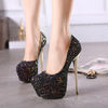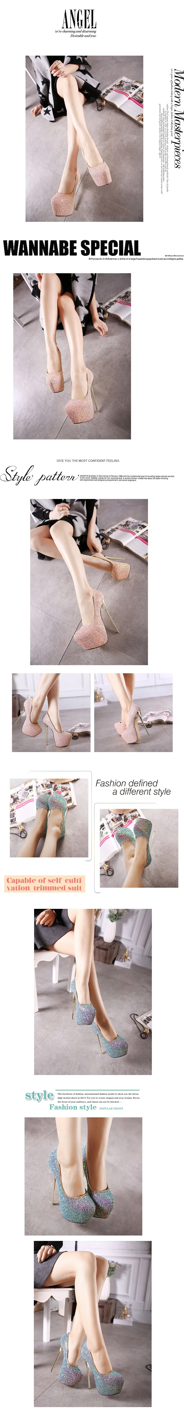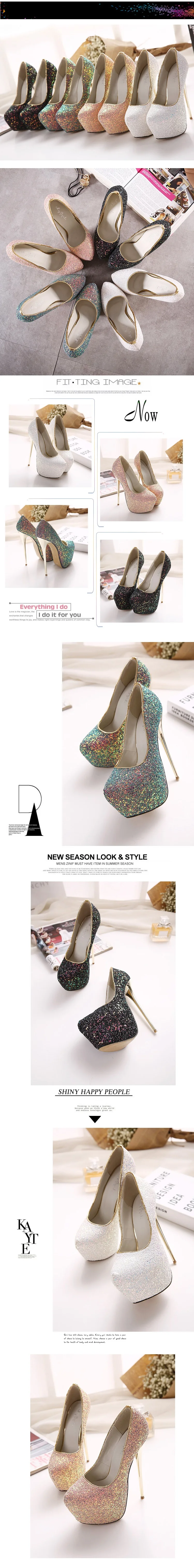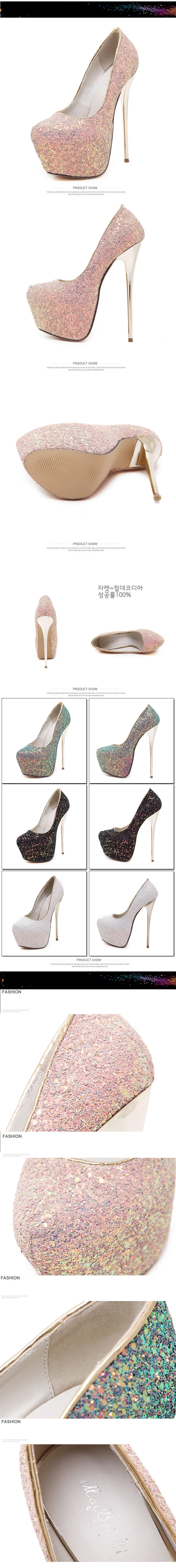 Fashion Nightclub Bling Women’s Shoes Sexy Sequins High Heel(16cm) Female Pumps Platform Glitter Party Shoes 34–45 OULYYYOGO