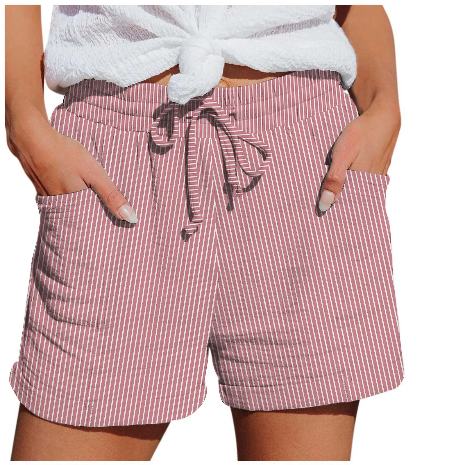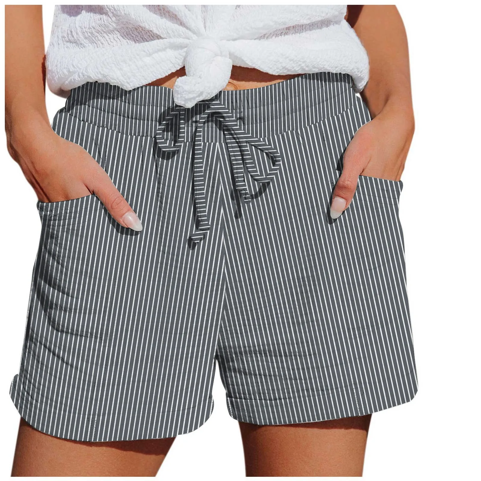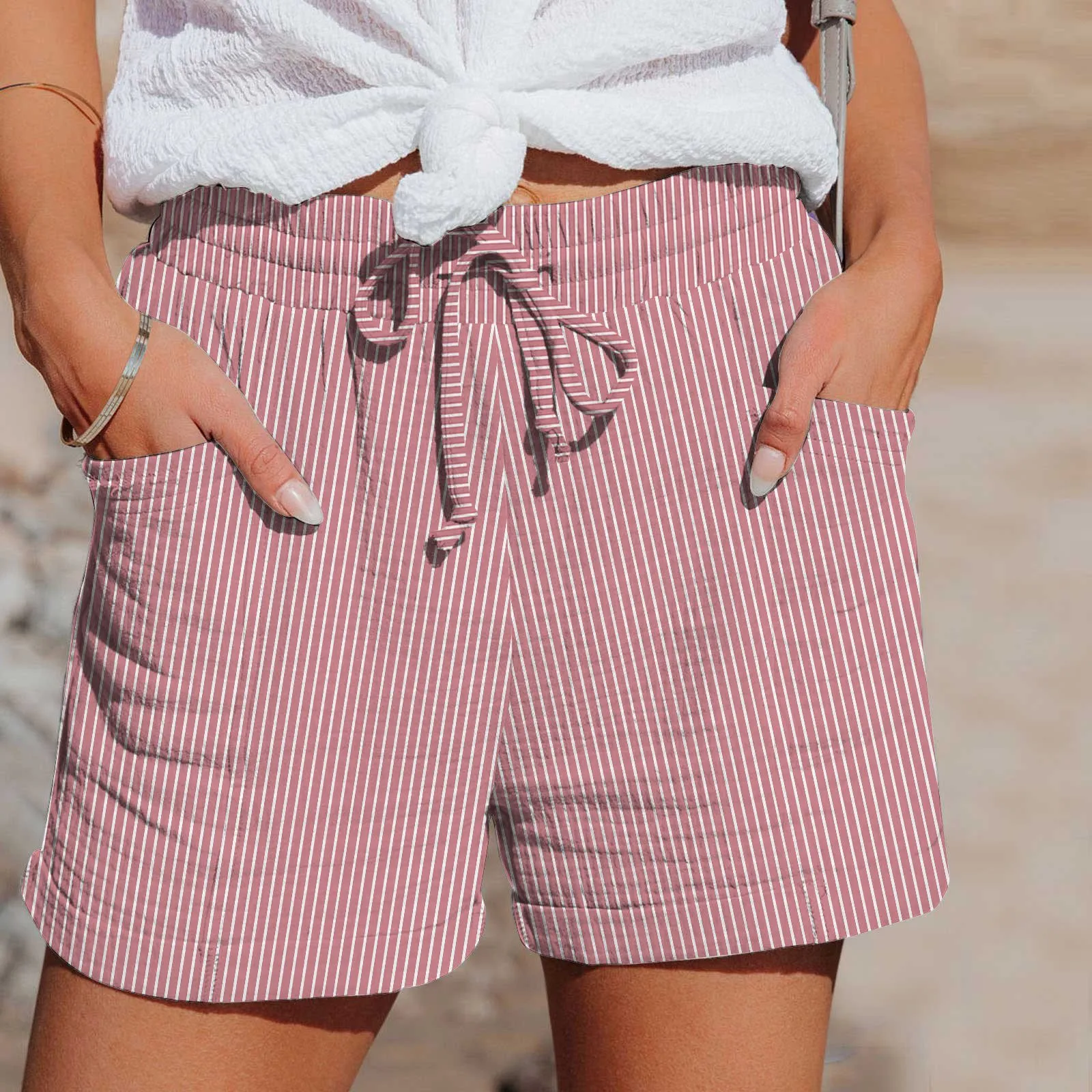 Women’s Fashion Spring And Summer Striped Drawstring Side Pockets Casual Shorts