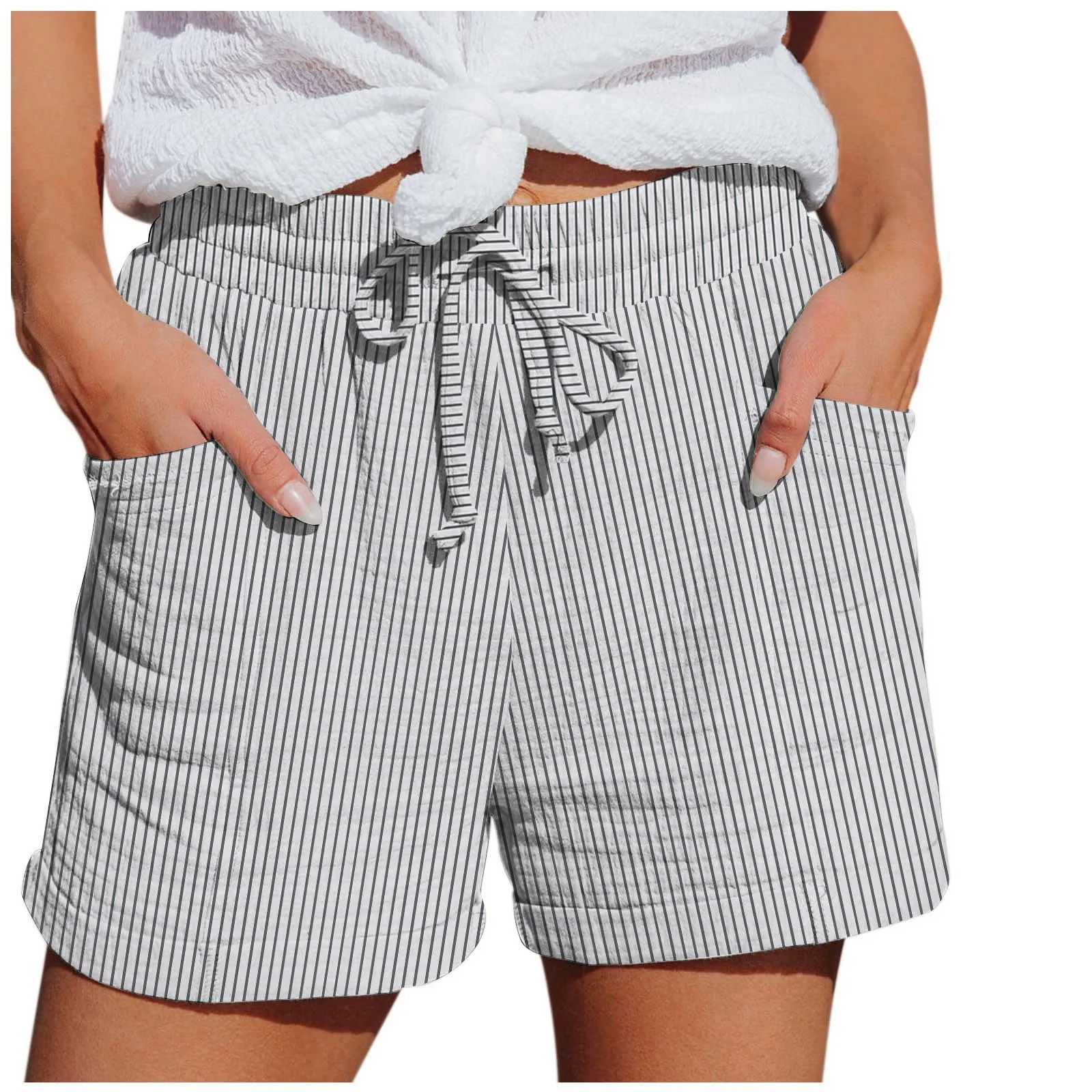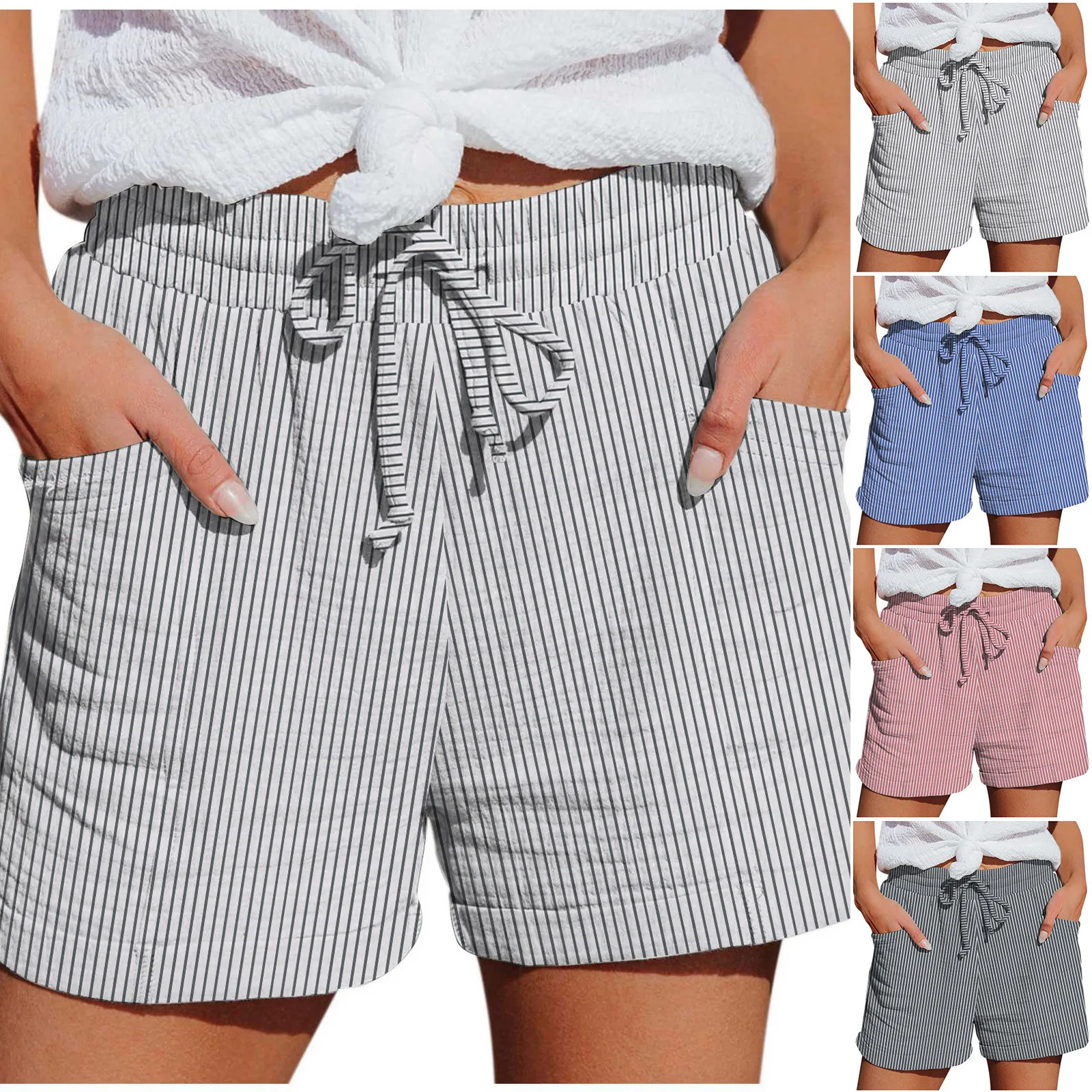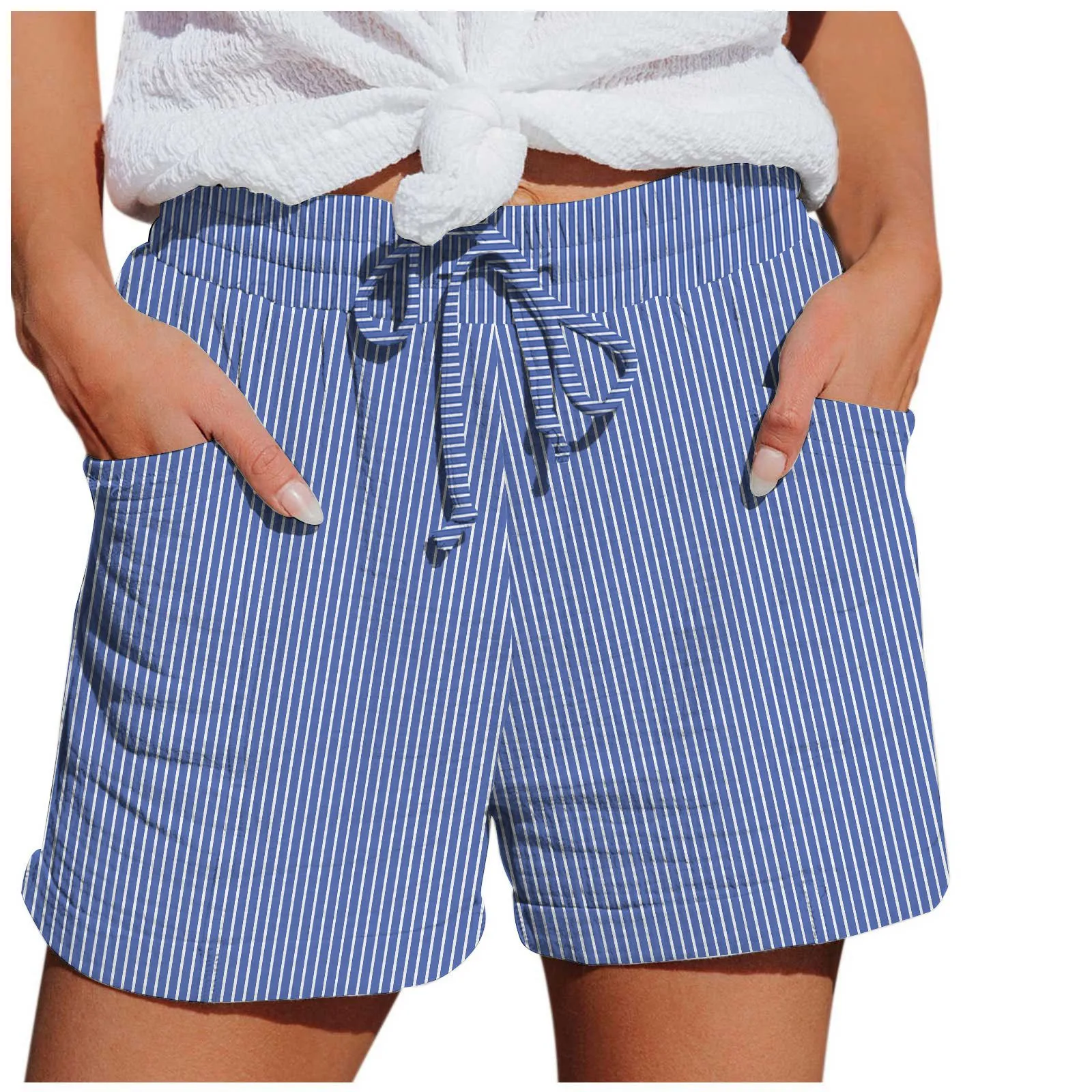 Women’s Fashion Spring And Summer Striped Drawstring Side Pockets Casual Shorts