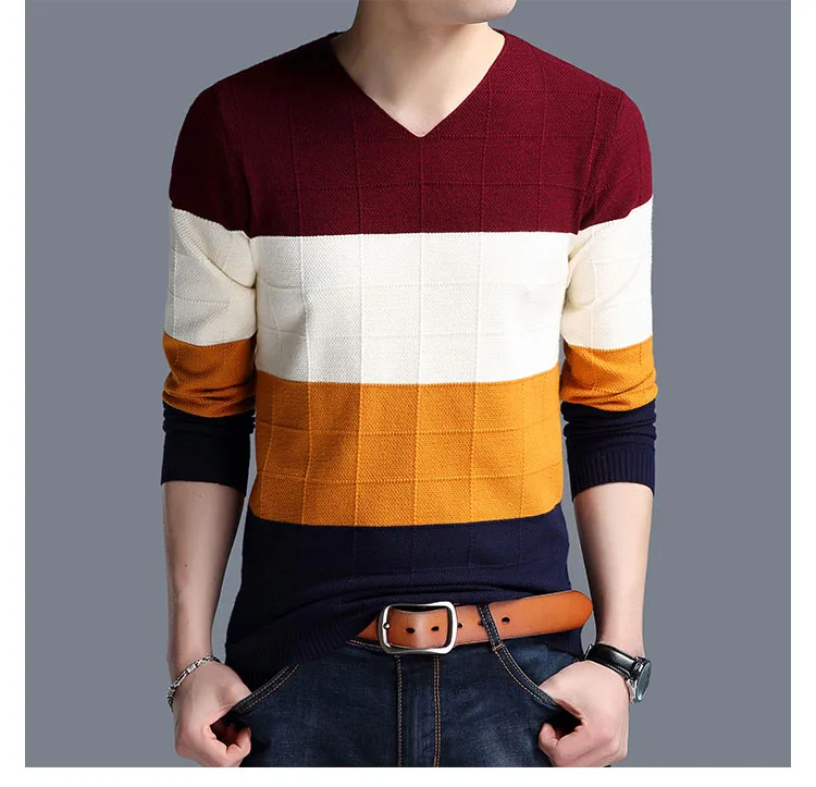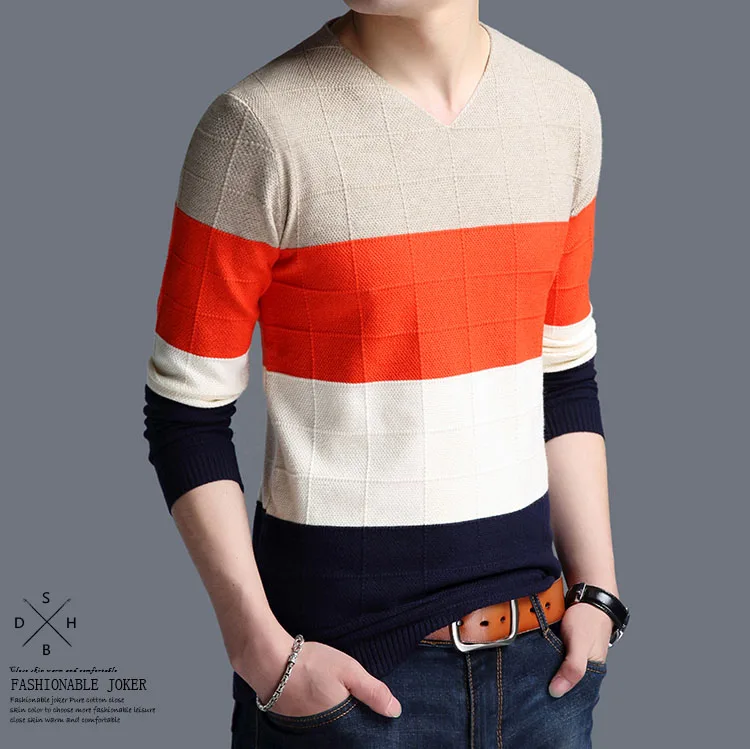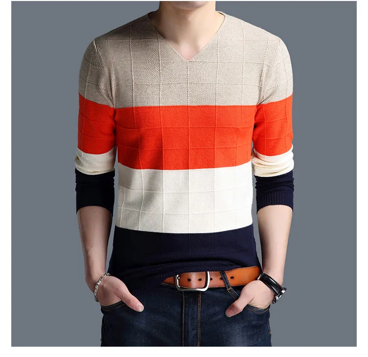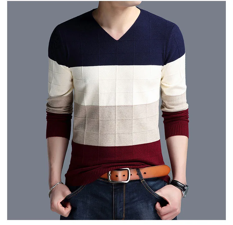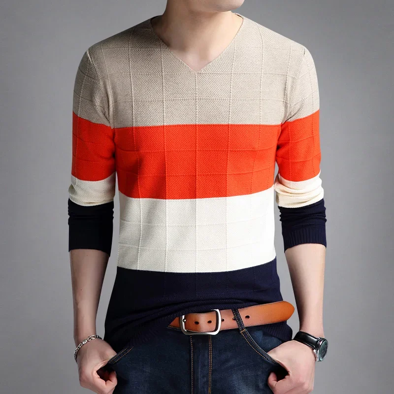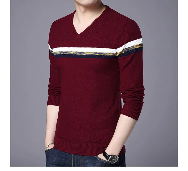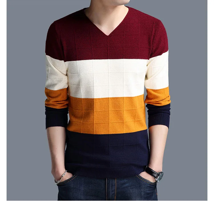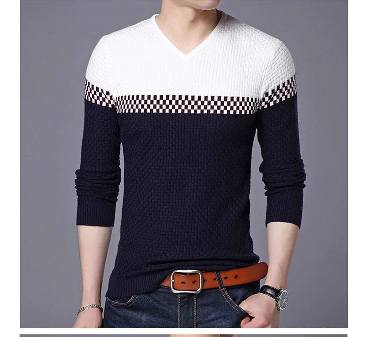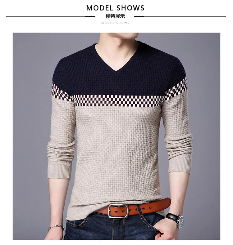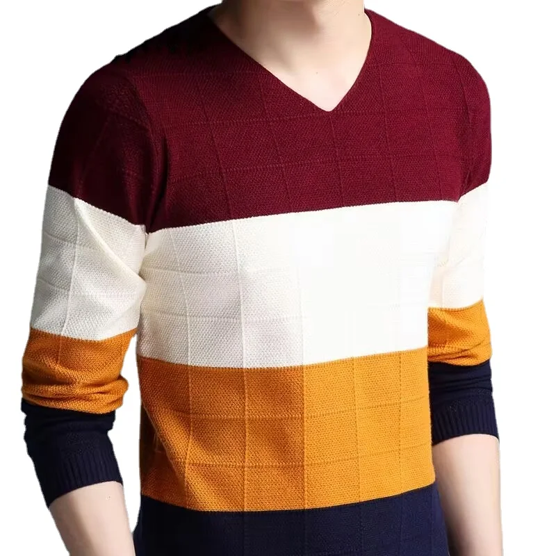Fashion V-Neck Long Sleeve Spliced Loose Knitted Sweater Men’s Clothing 2023 Autumn New Casual Pullovers All-match Korean Tops