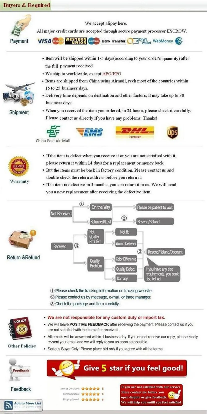 • If you did not receive the product within the guaranteed time( 45 days not including 2-5 day processing) you can request a refund or a reshipment.