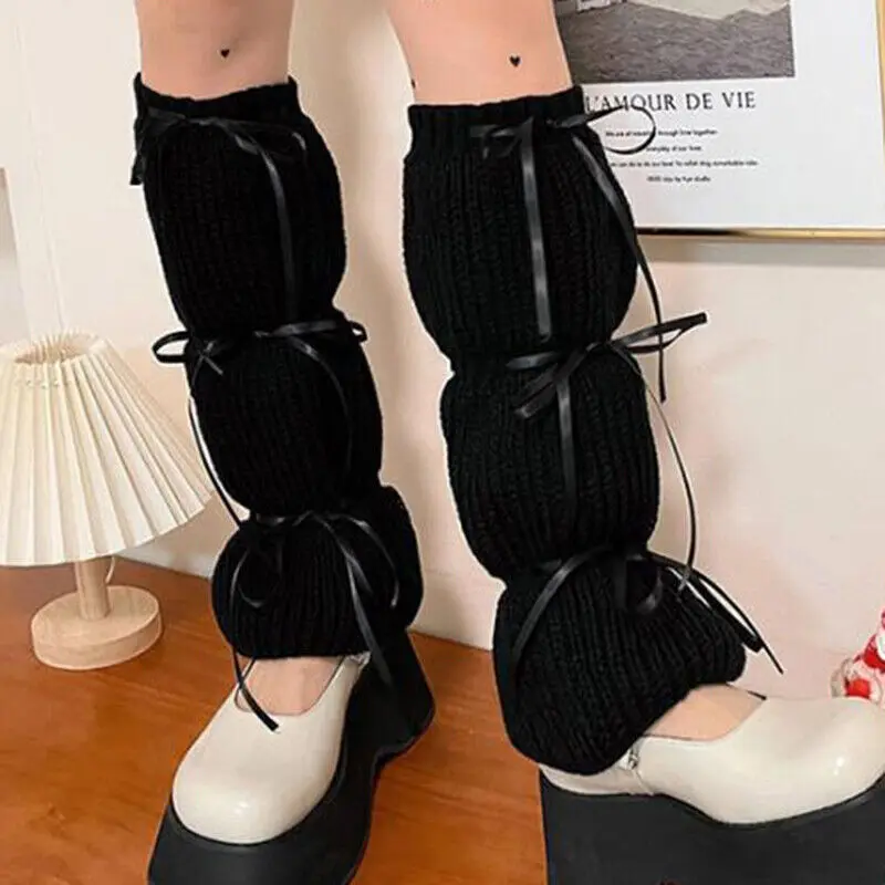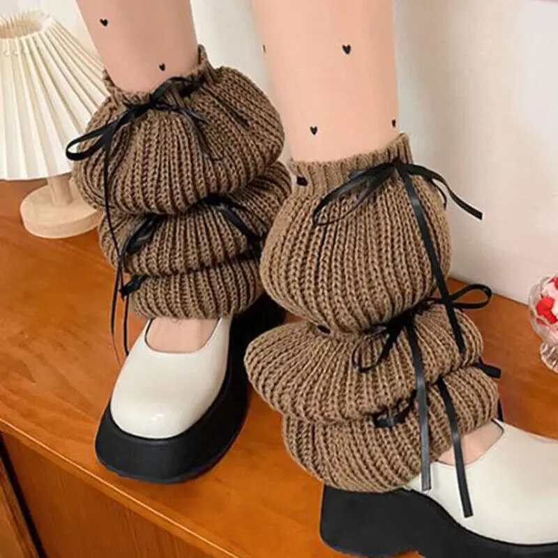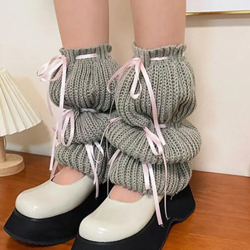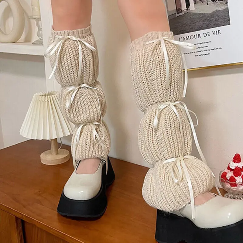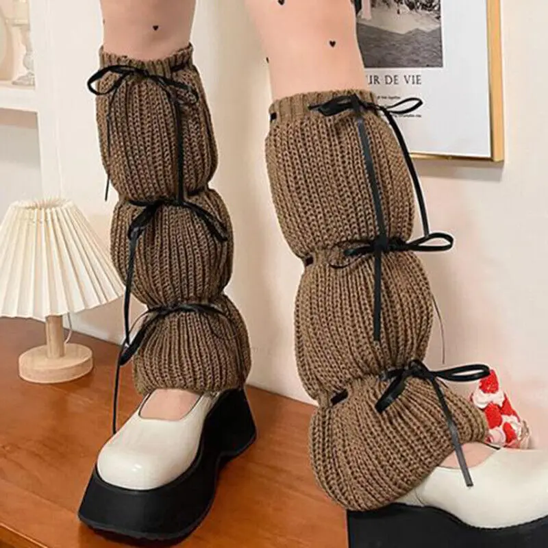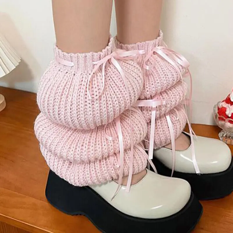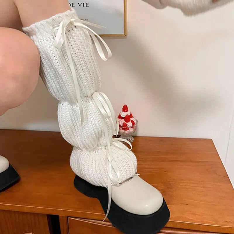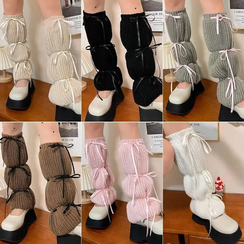 Fashion Warm Y2K Bubble Lantern Strap Leg Covers Ballet Knitted Socks Pink Girl Harajuku Boot Cuffs Japanese Jk Lolita Socks